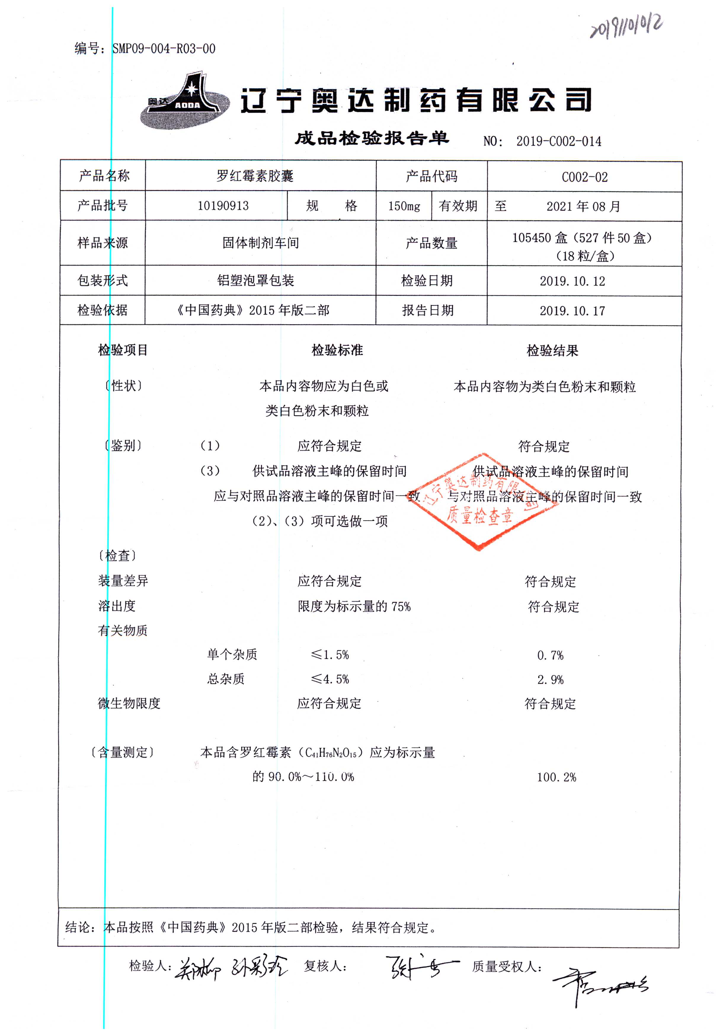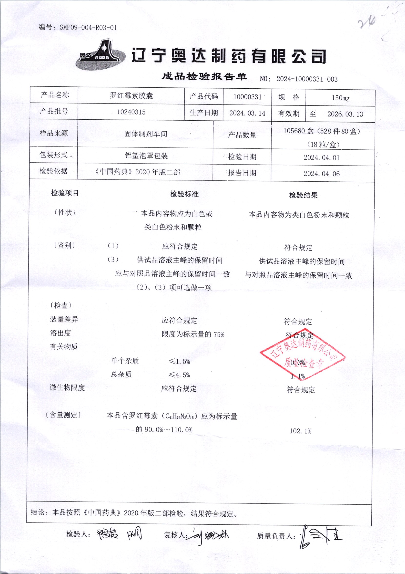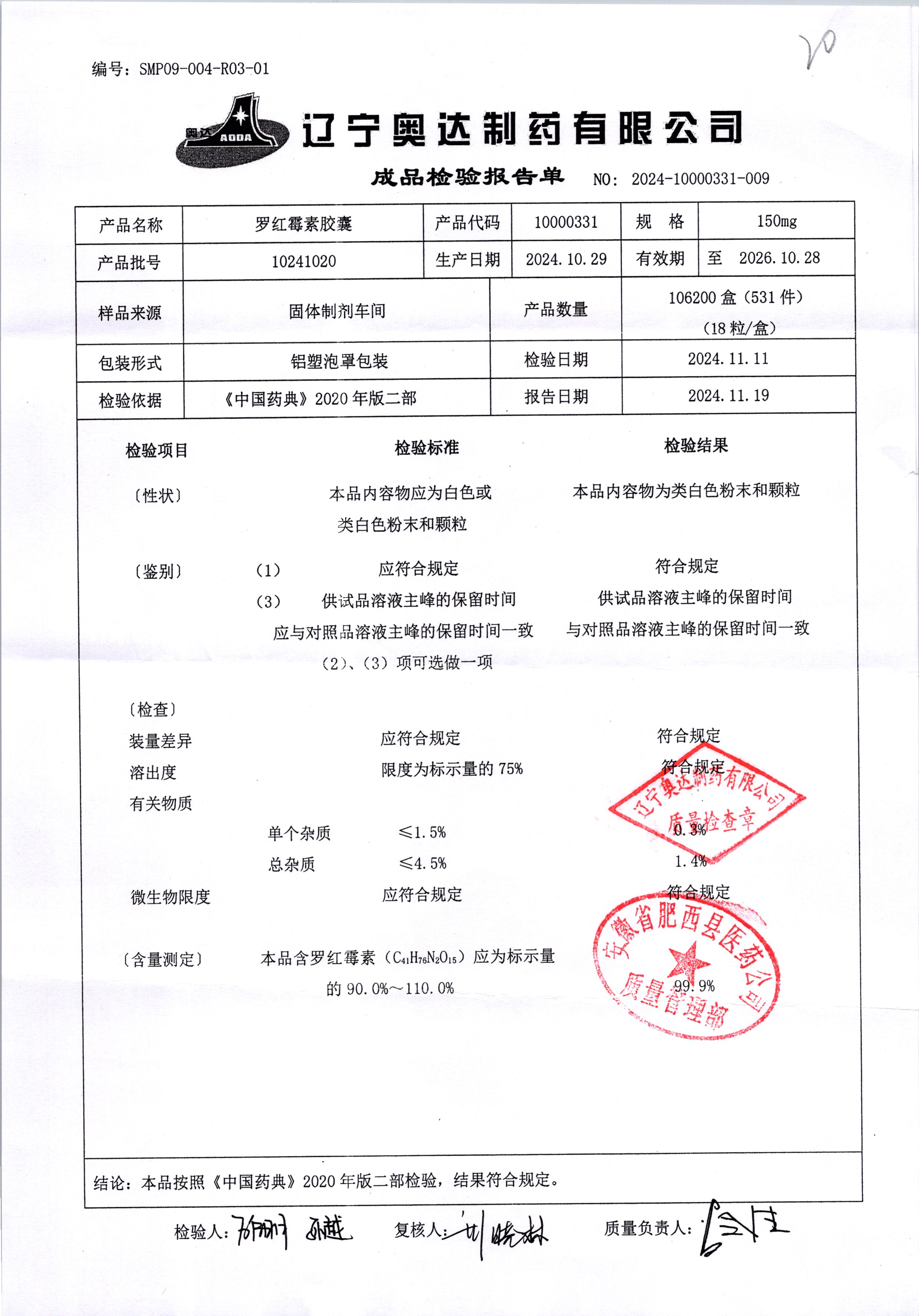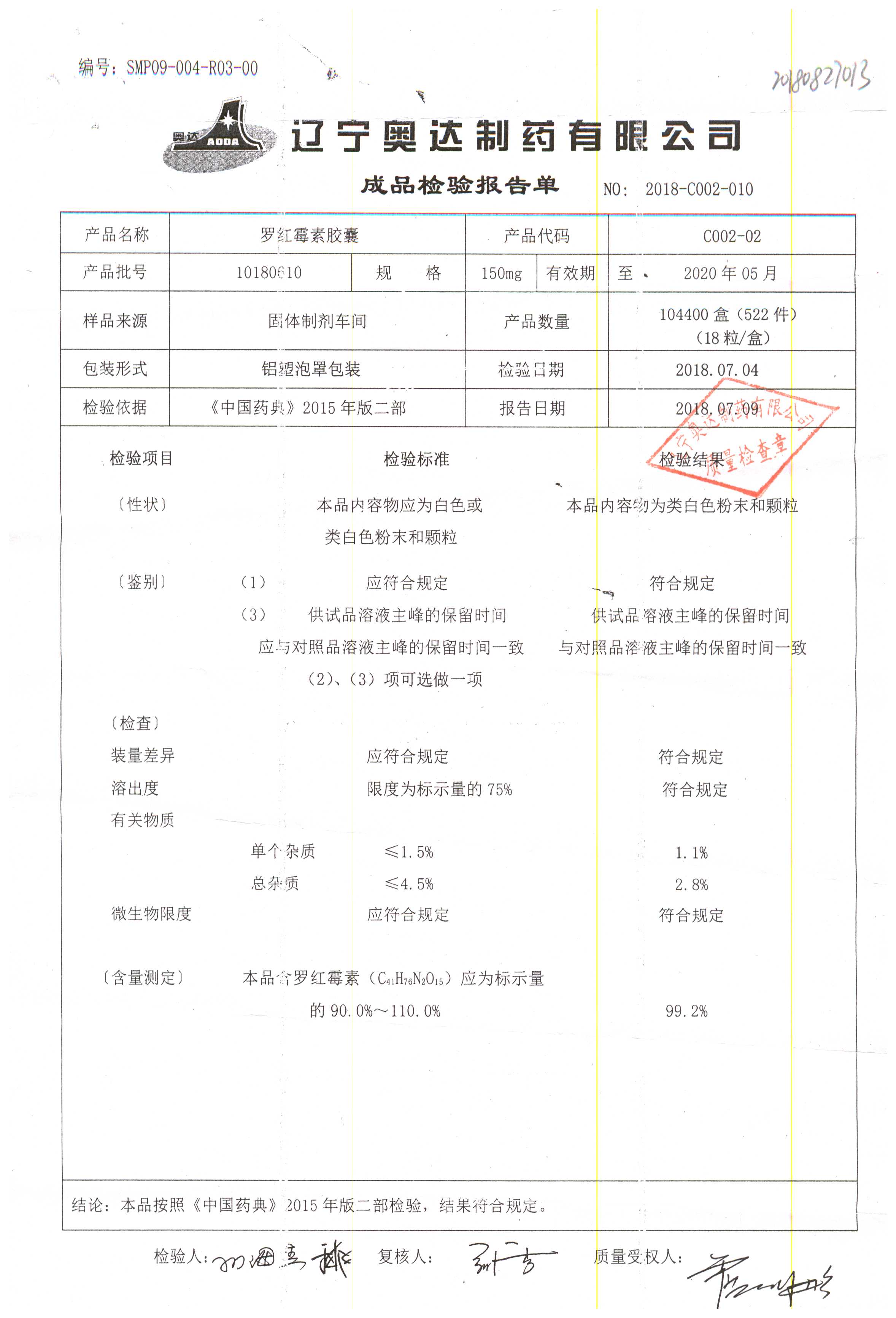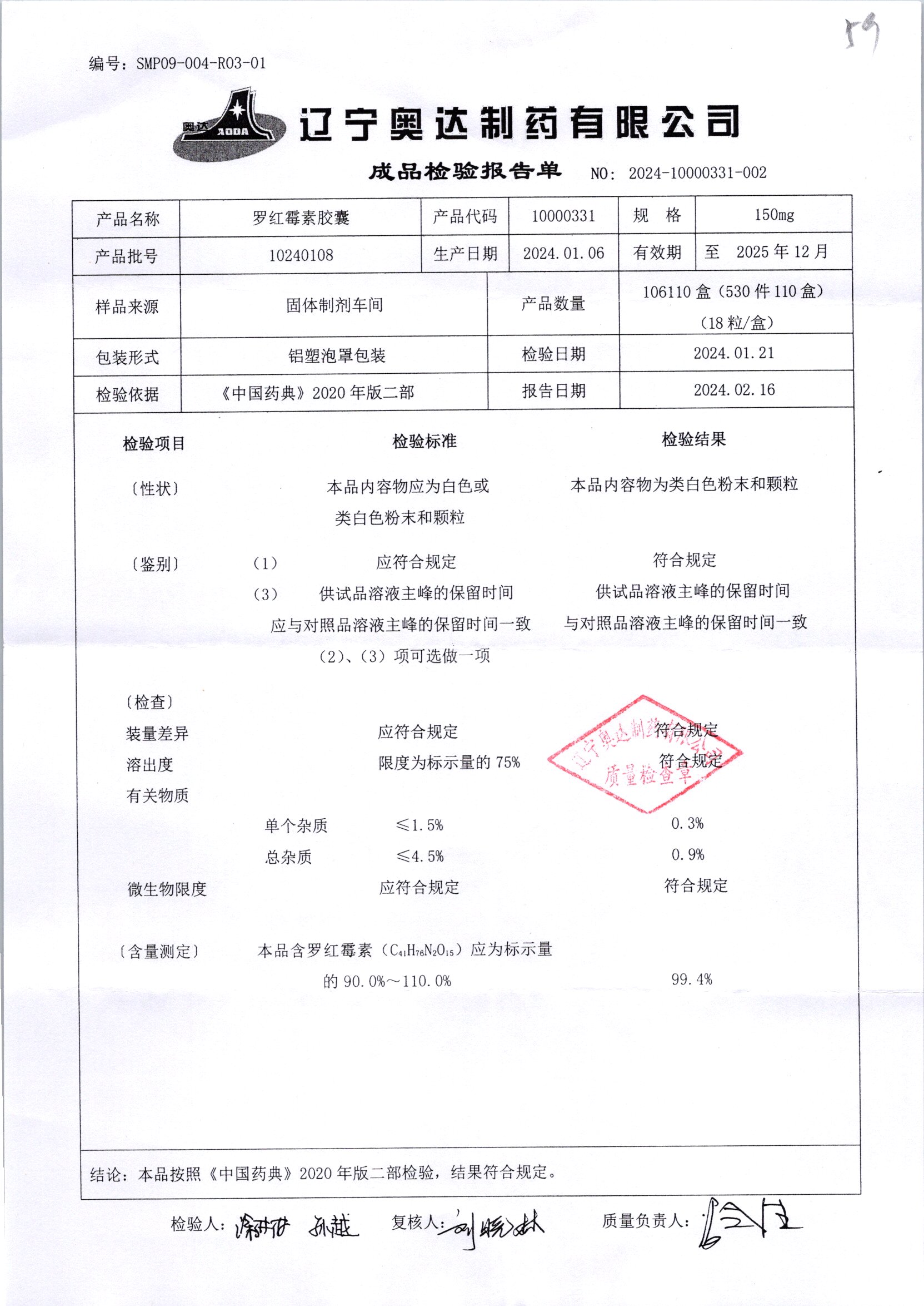 罗红霉素胶囊 | 150mg*18粒 | 10240704 | 查看详情 |