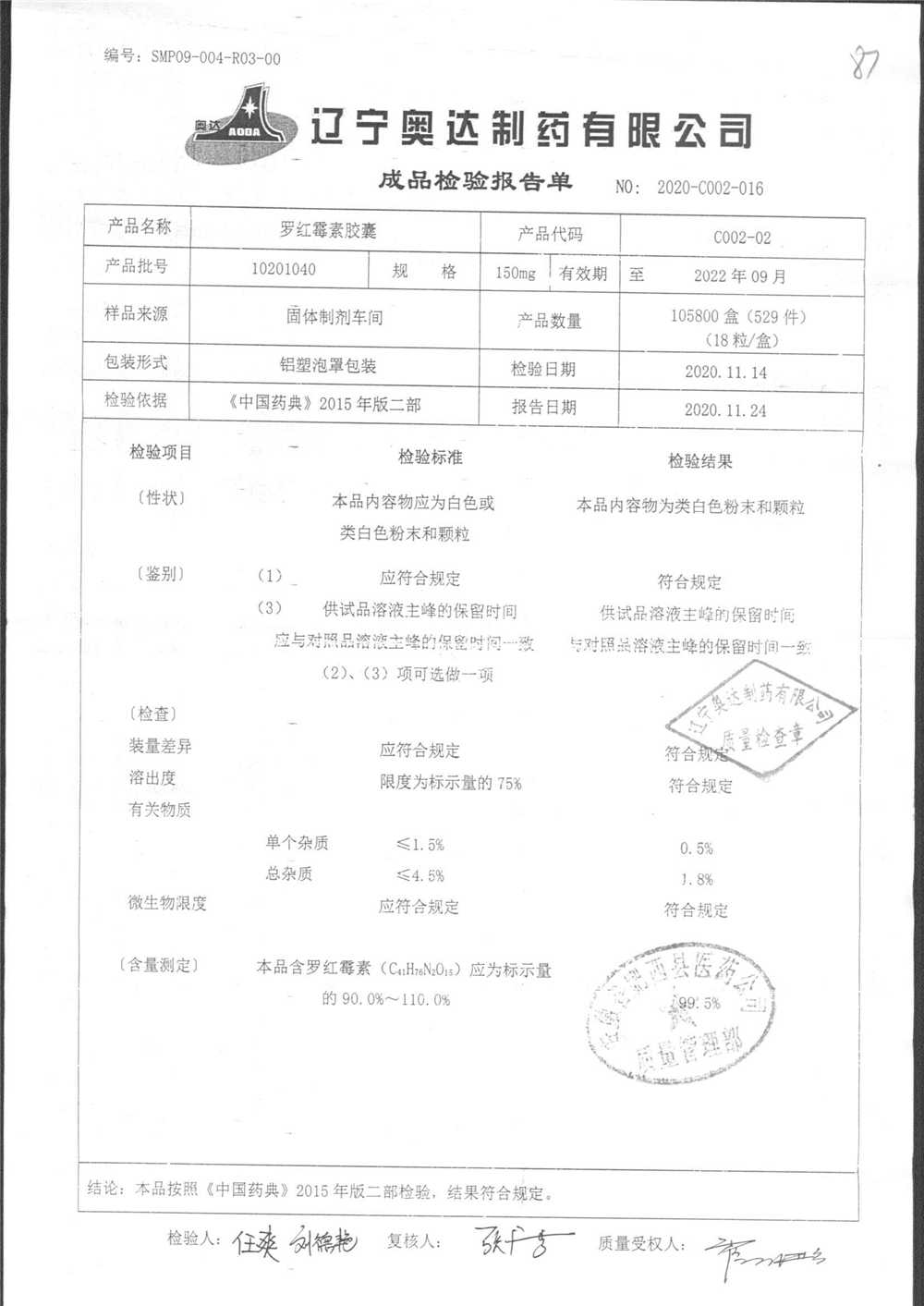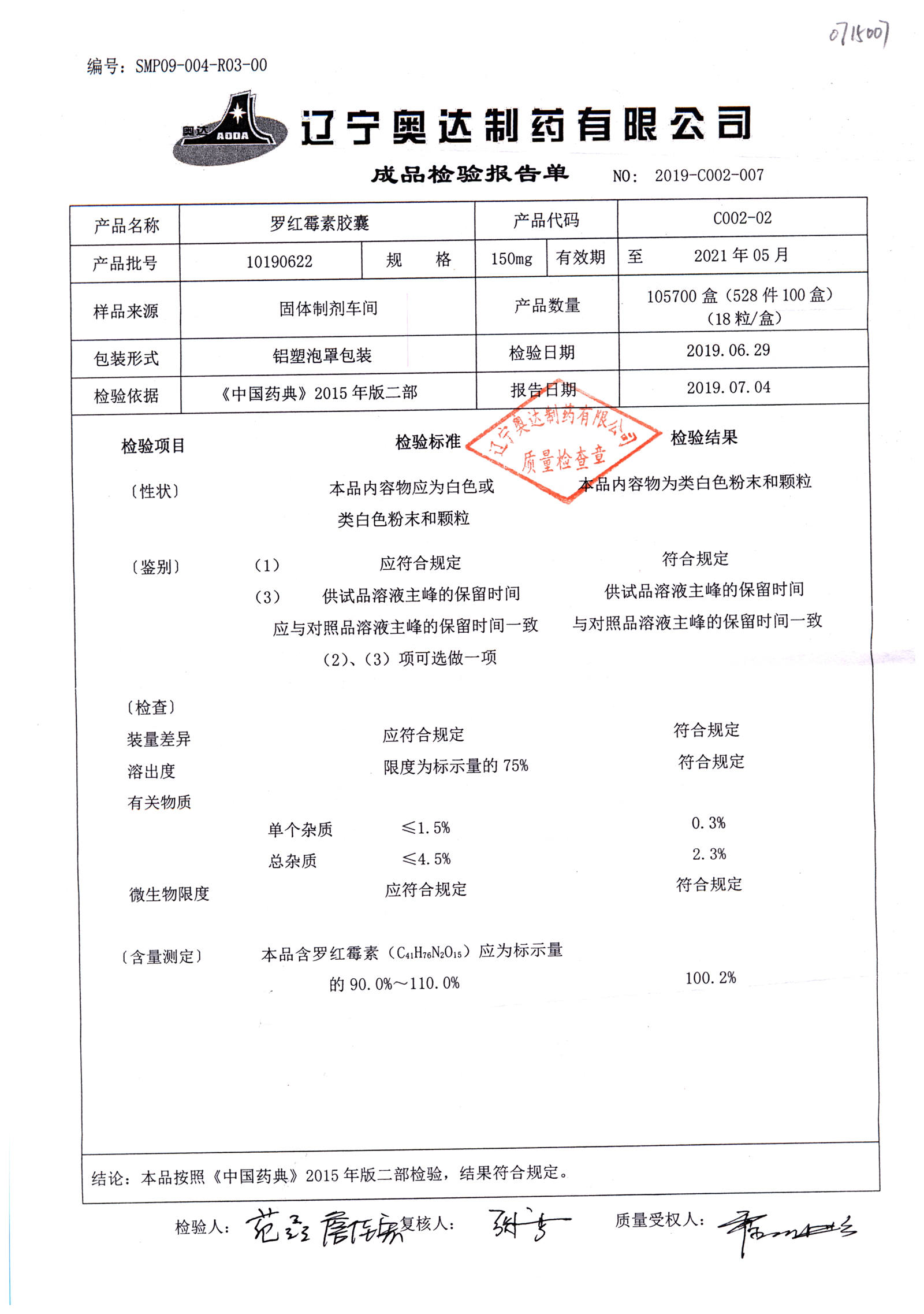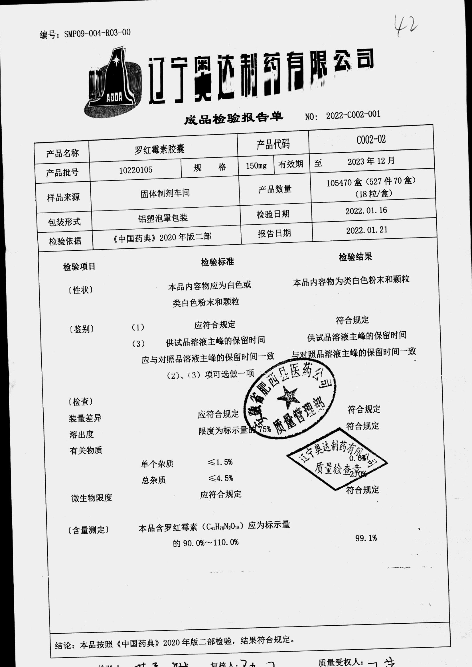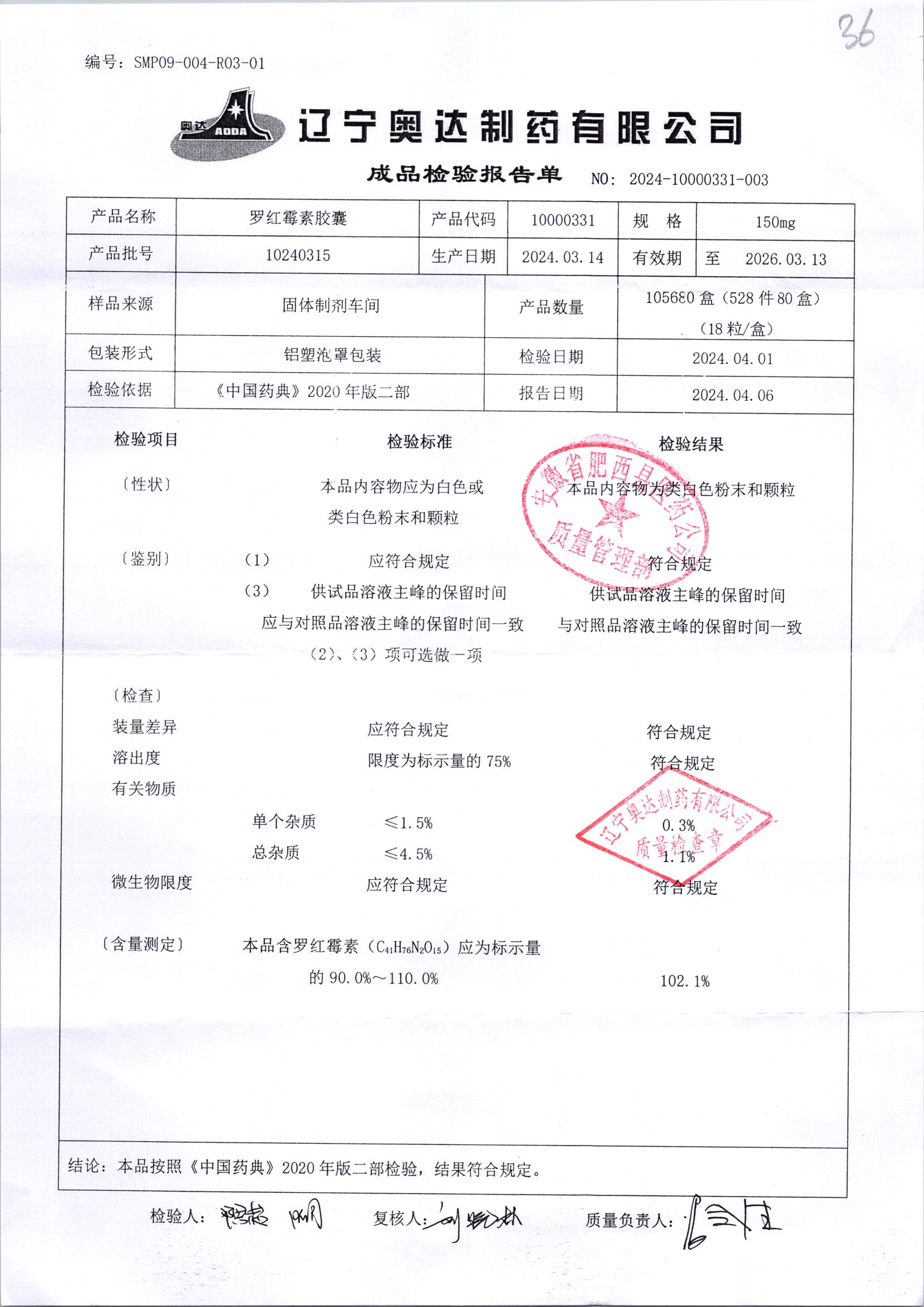 罗红霉素胶囊 | 150mg*18粒 | 10240704 | 查看详情 |