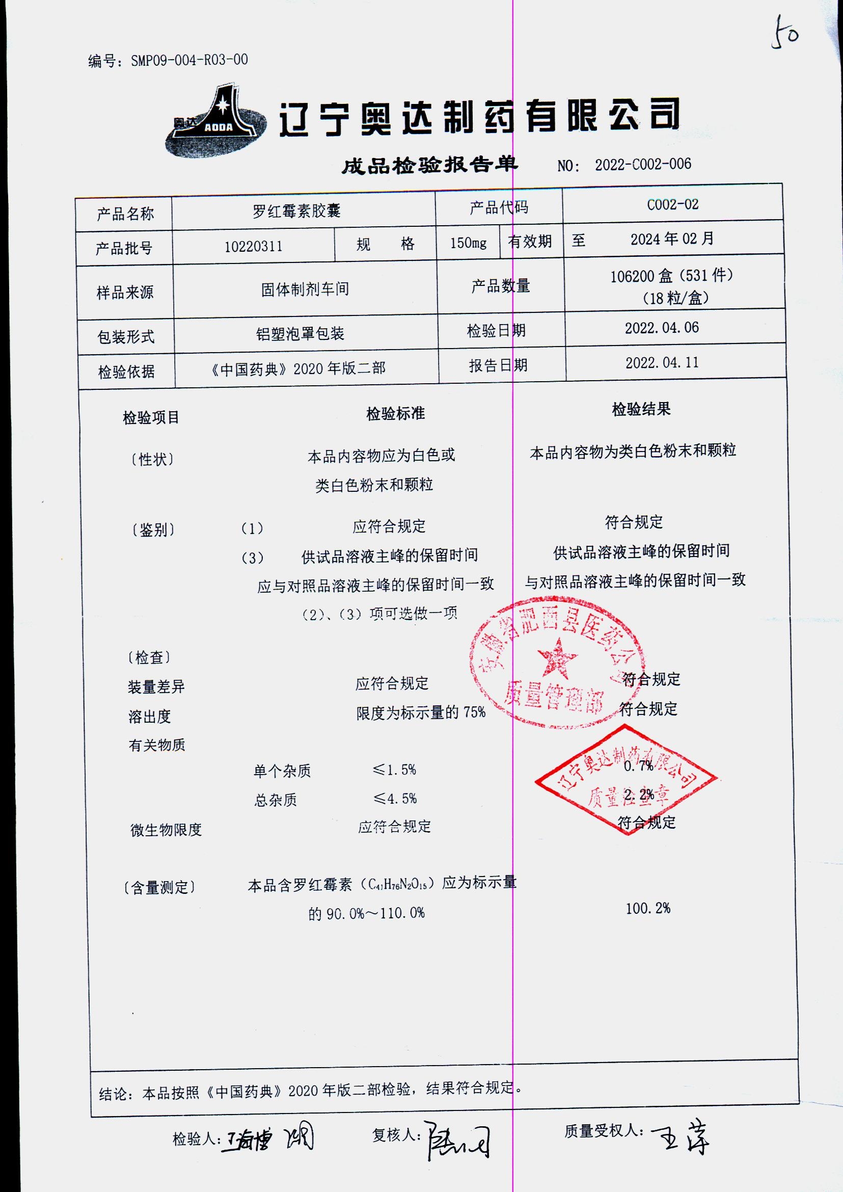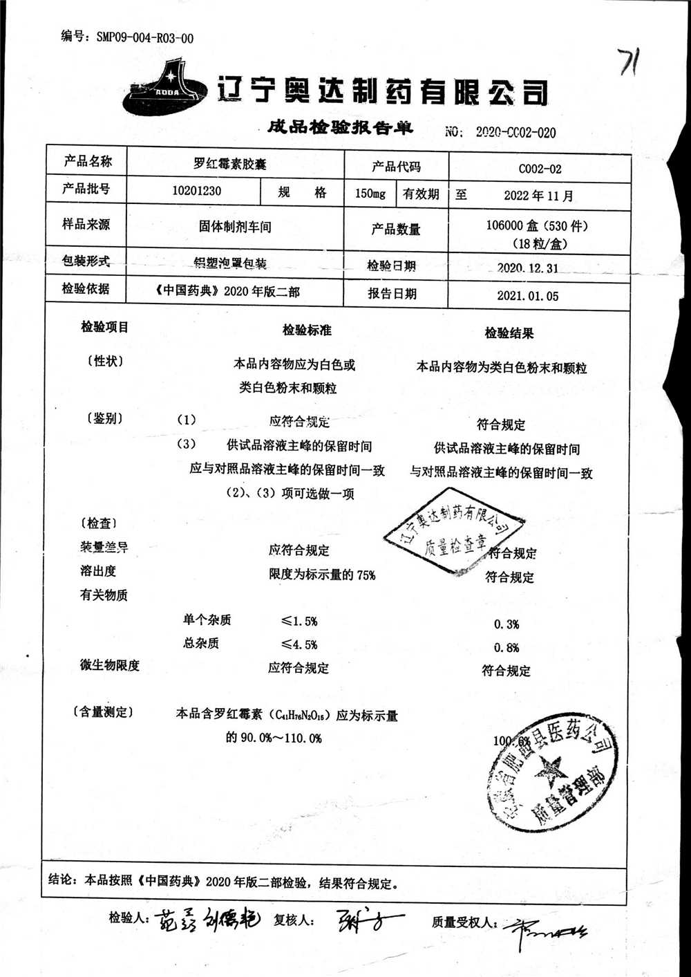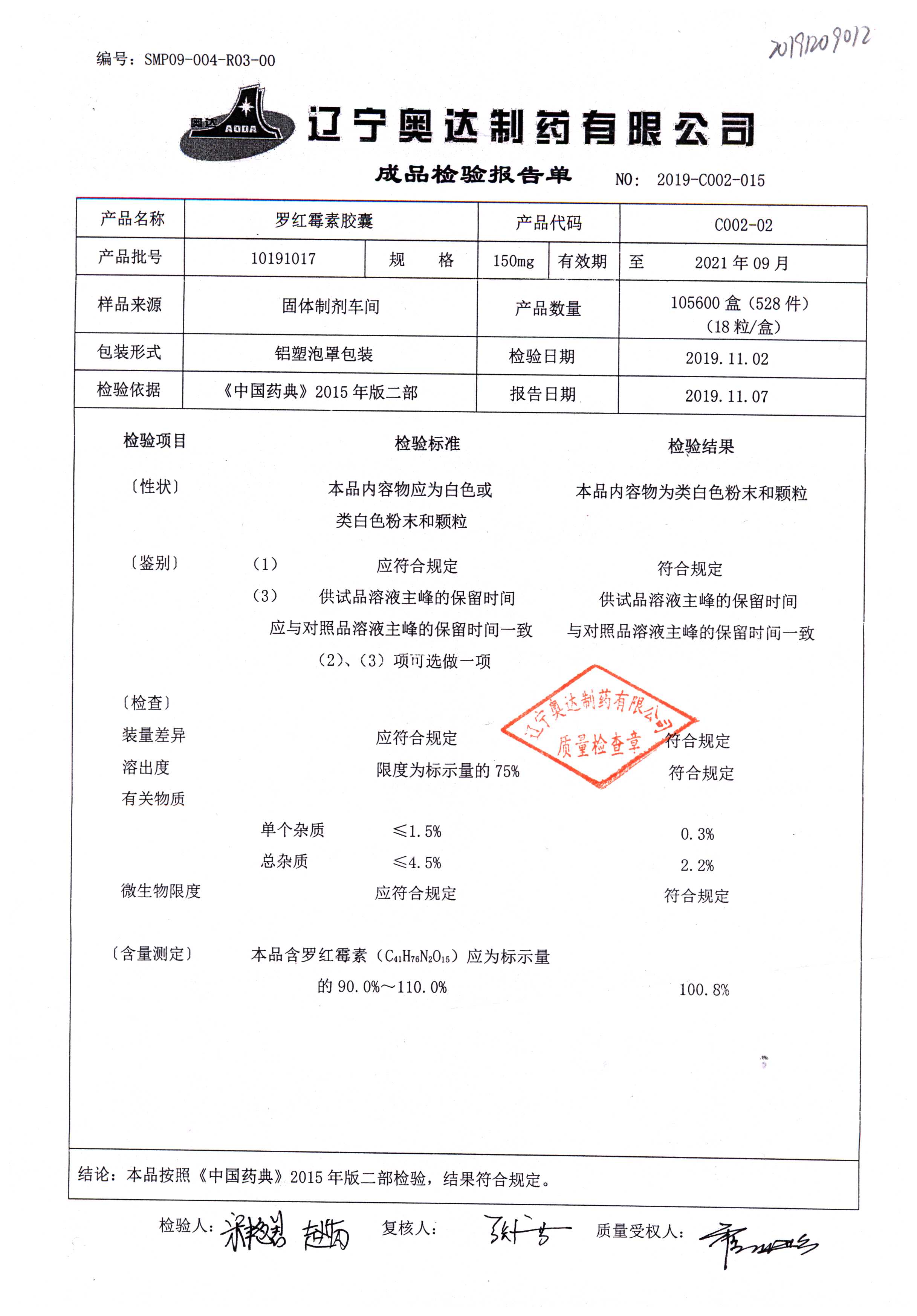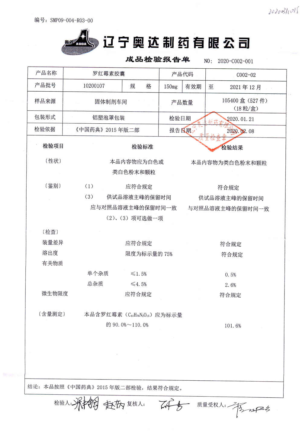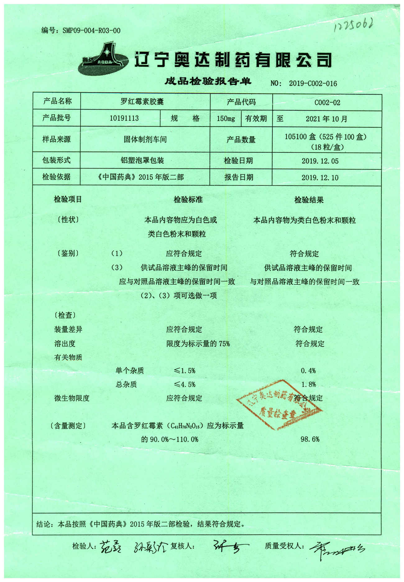 罗红霉素胶囊 | 150mg*18粒 | 10200202 | 查看详情 |