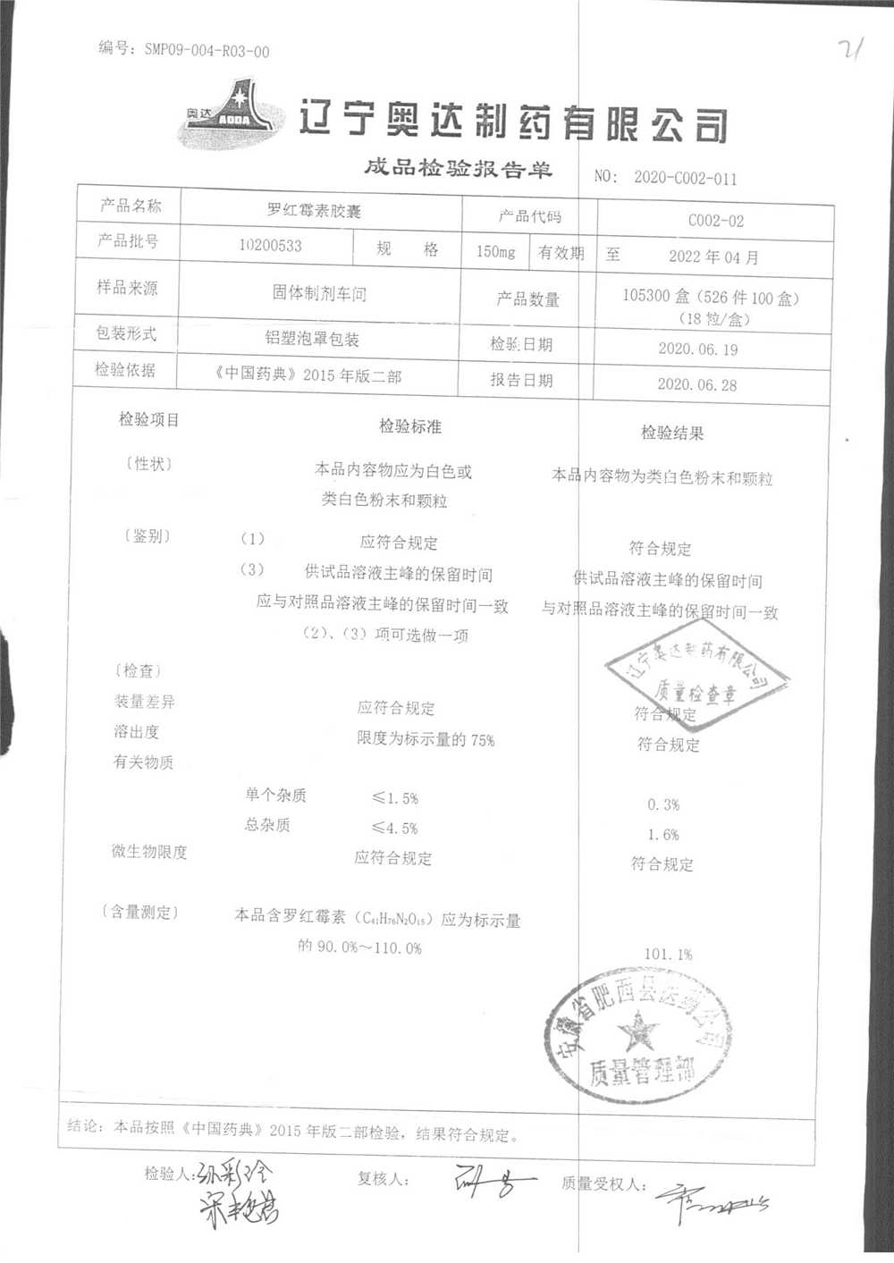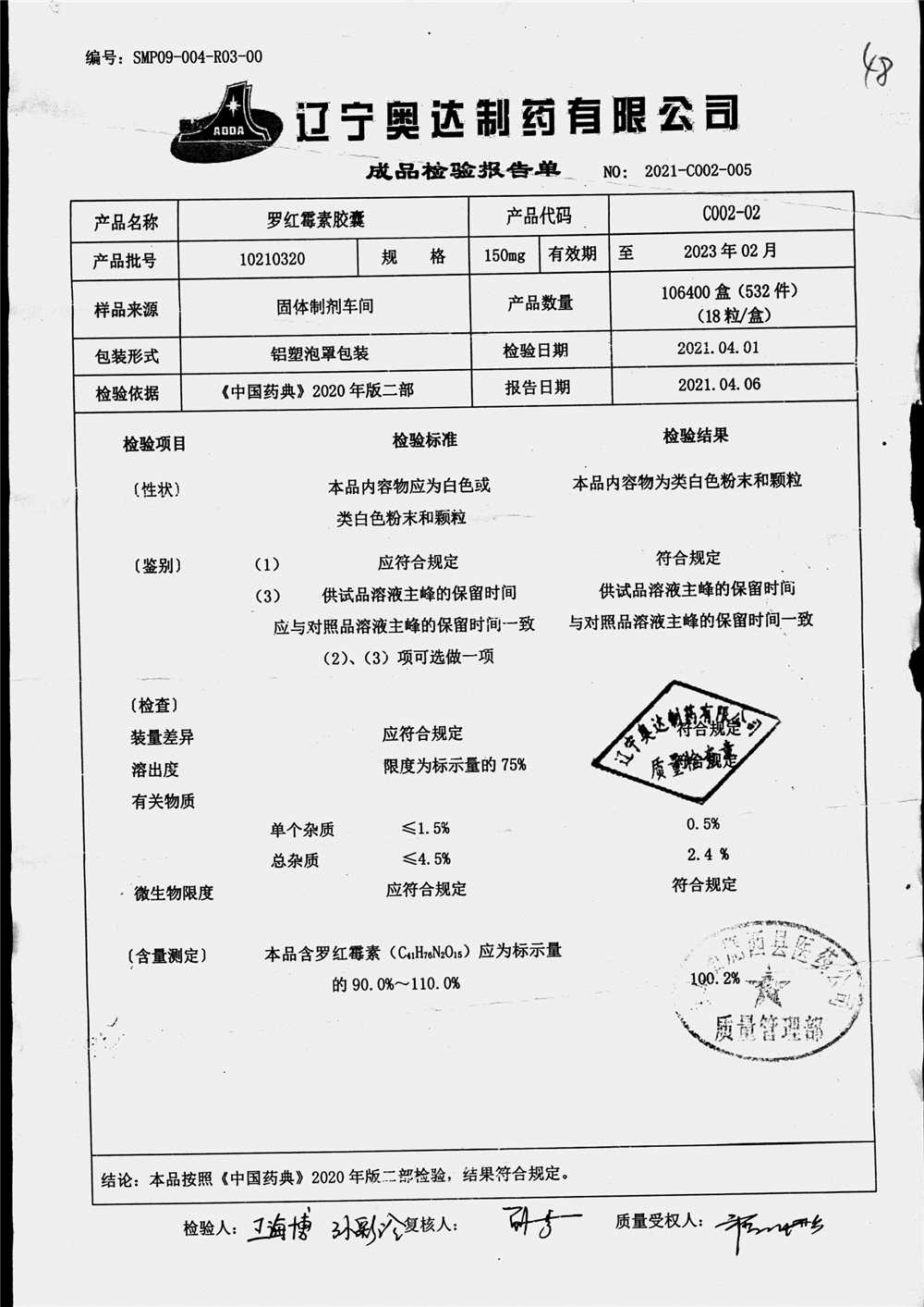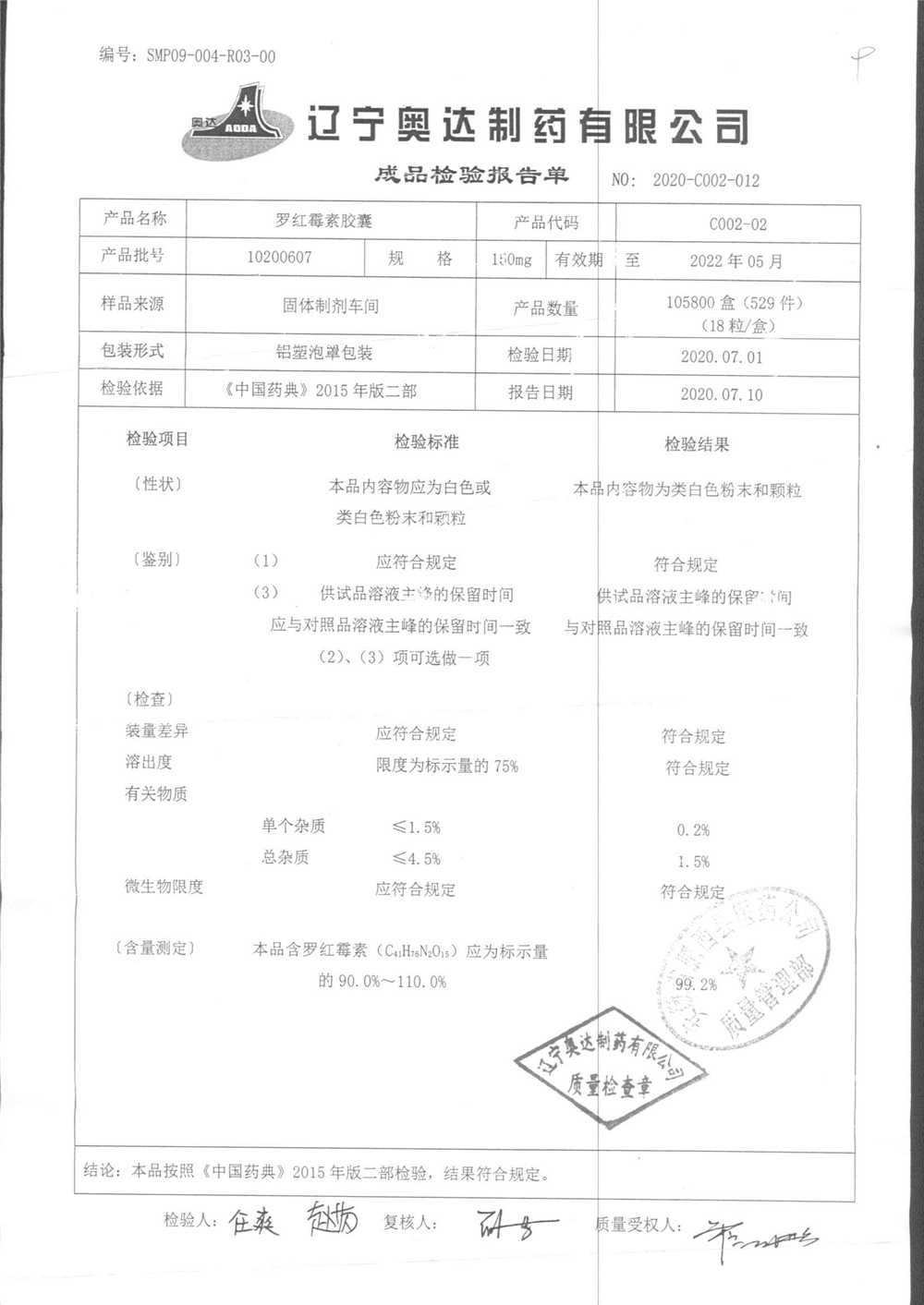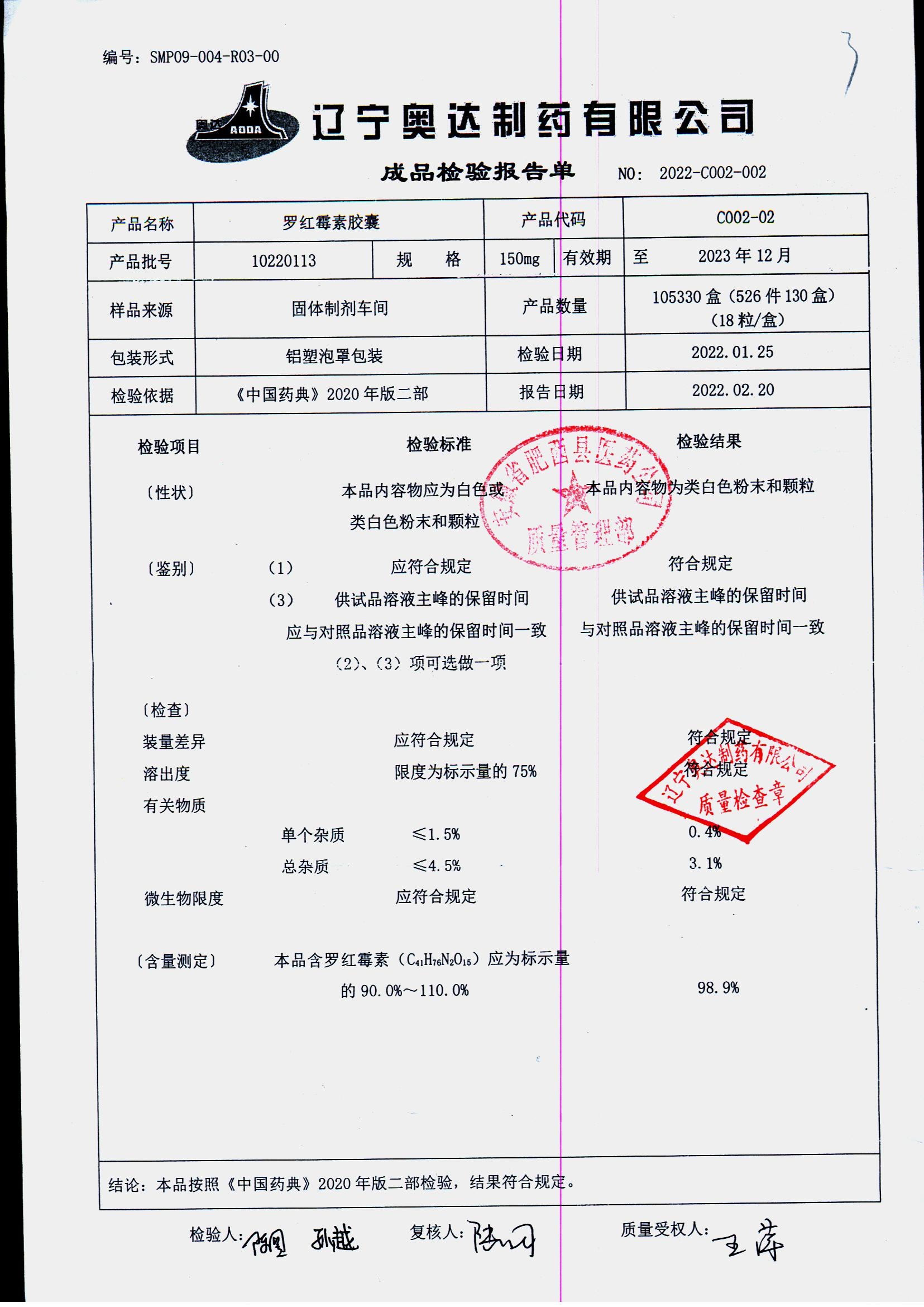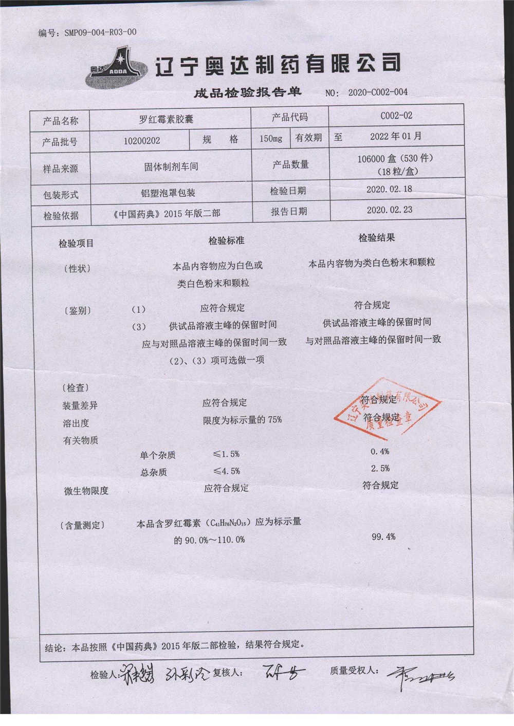 罗红霉素胶囊 | 150mg*18粒 | 10200202 | 查看详情 |