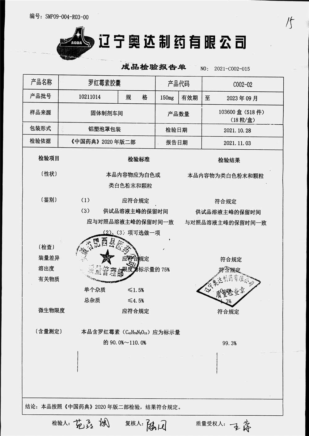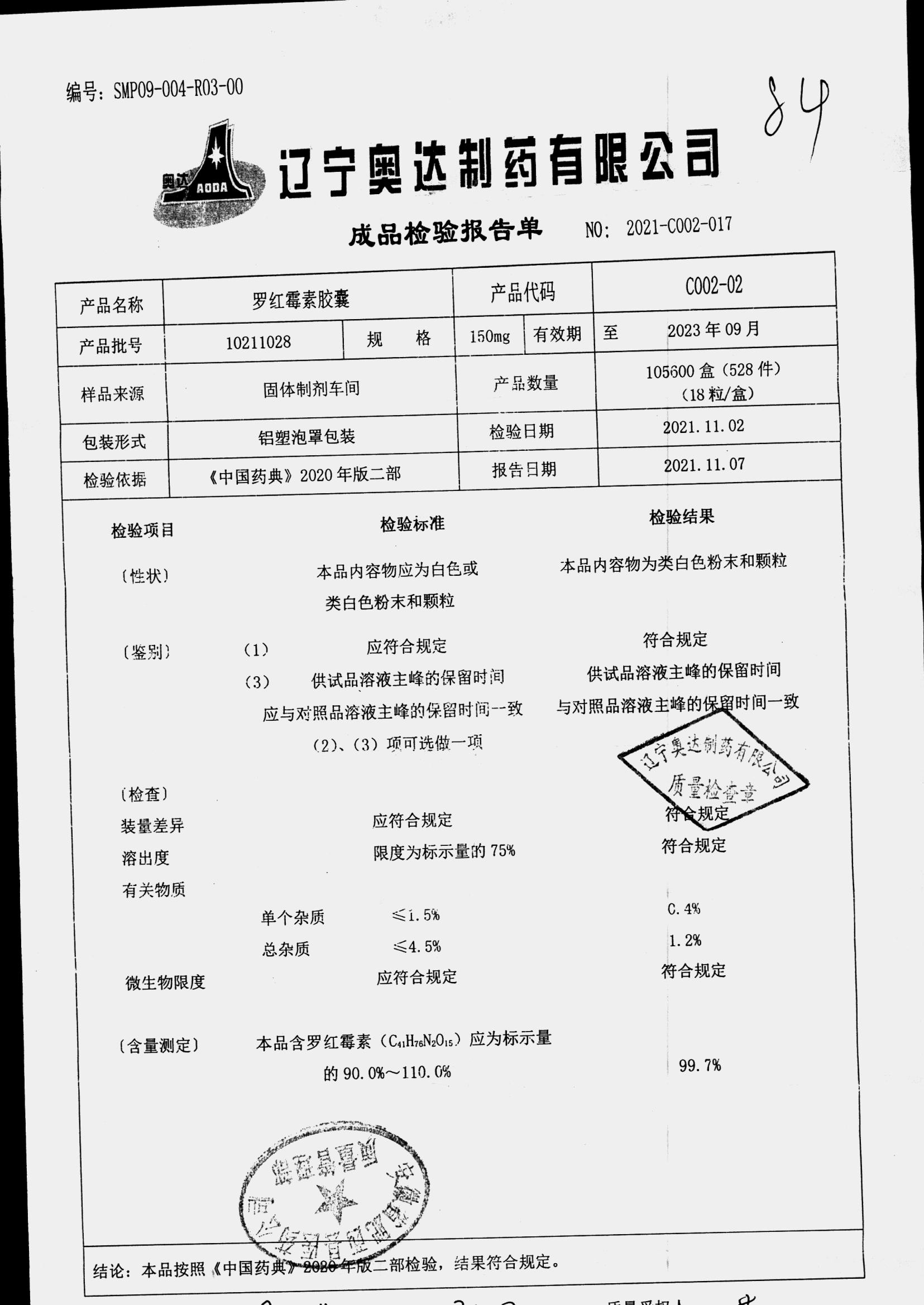 罗红霉素胶囊 | 150mg*18粒 | 10211015 | 查看详情 |