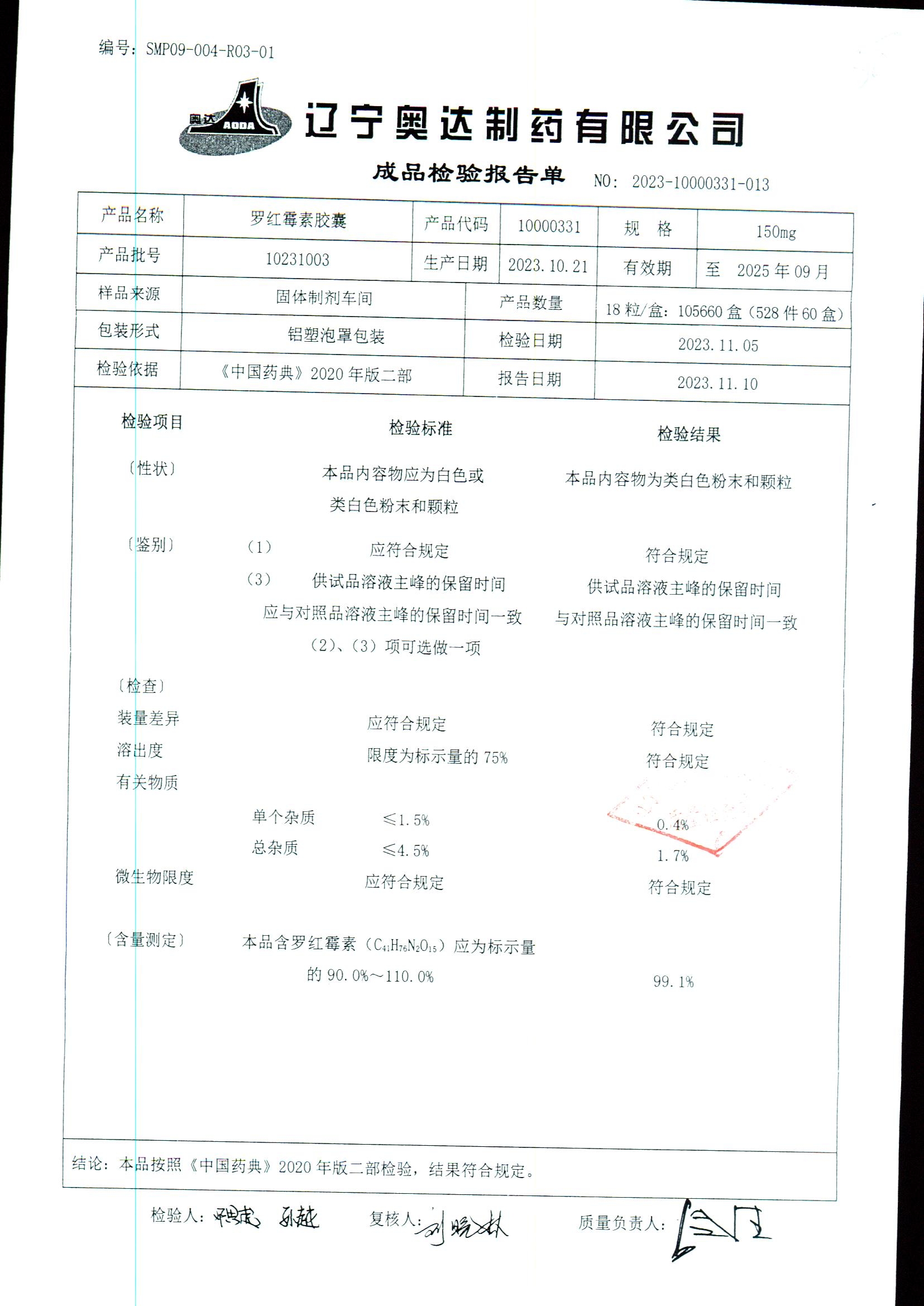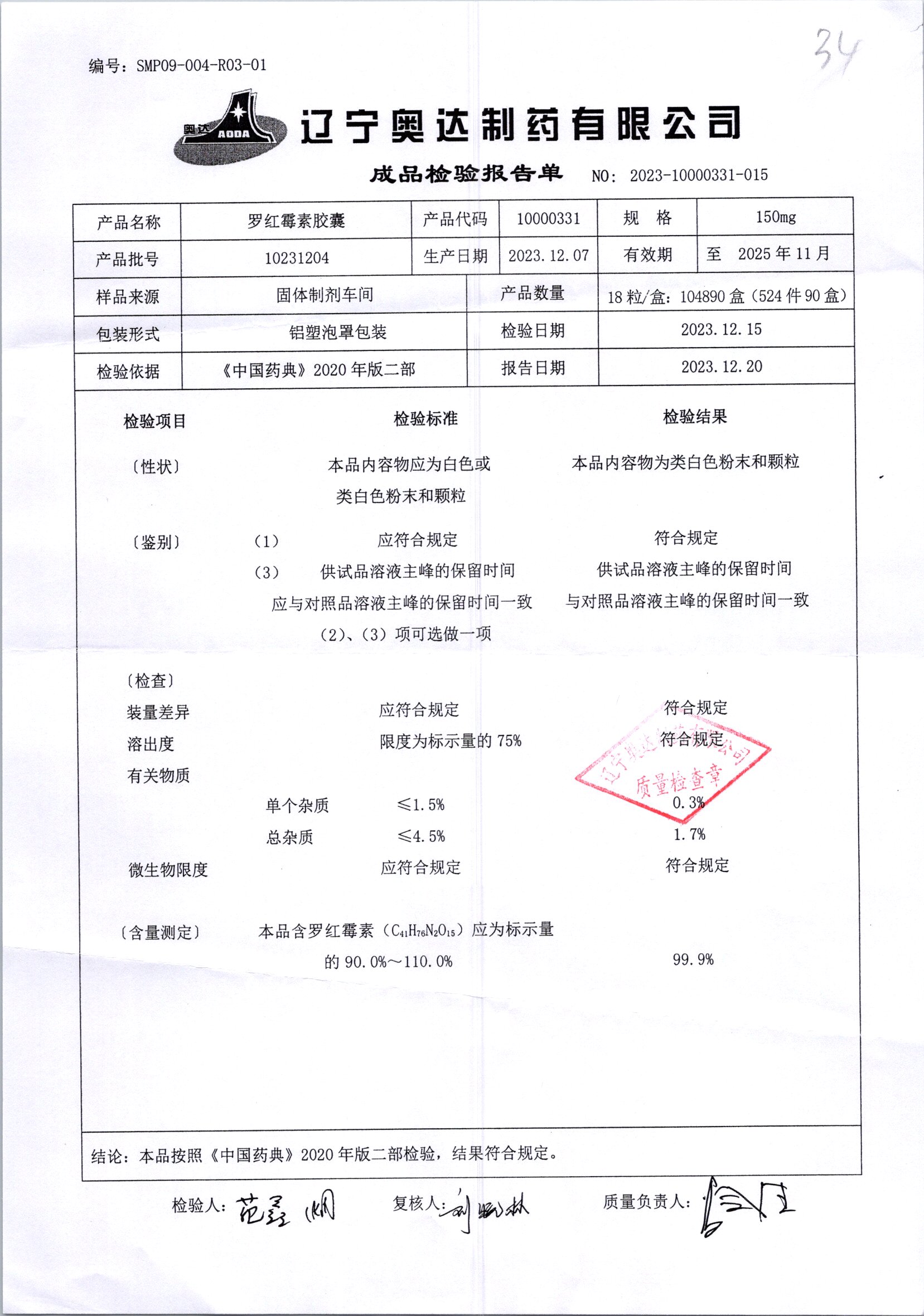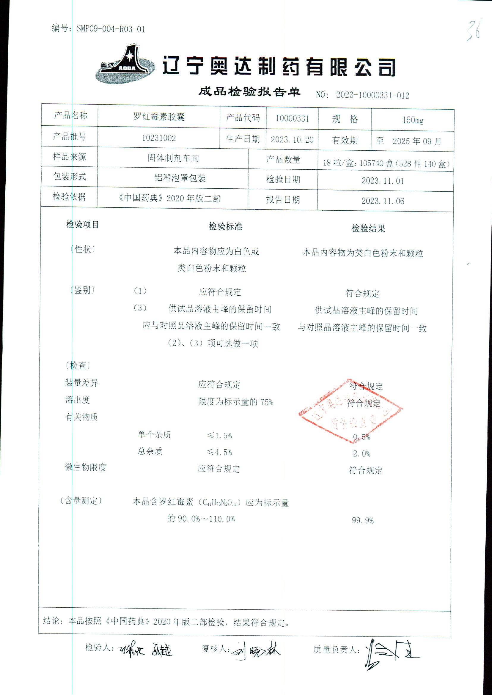 罗红霉素胶囊 | 150mg*18粒 | 10231003 | 查看详情 |