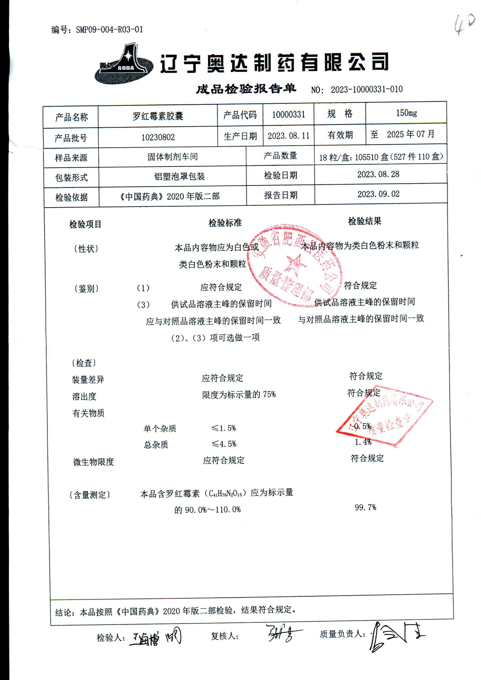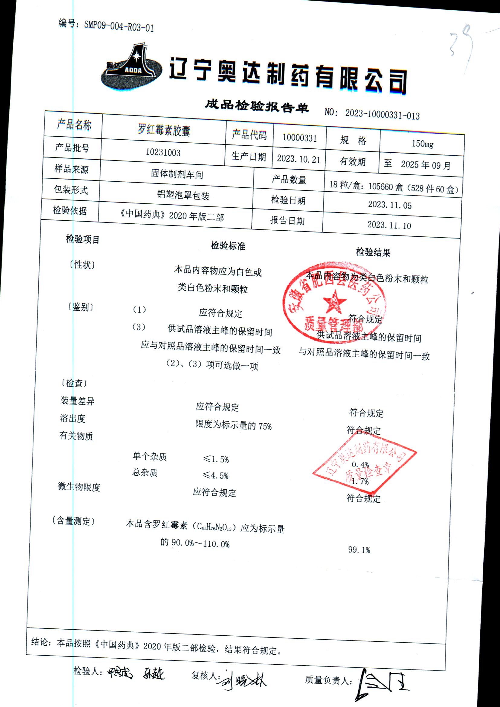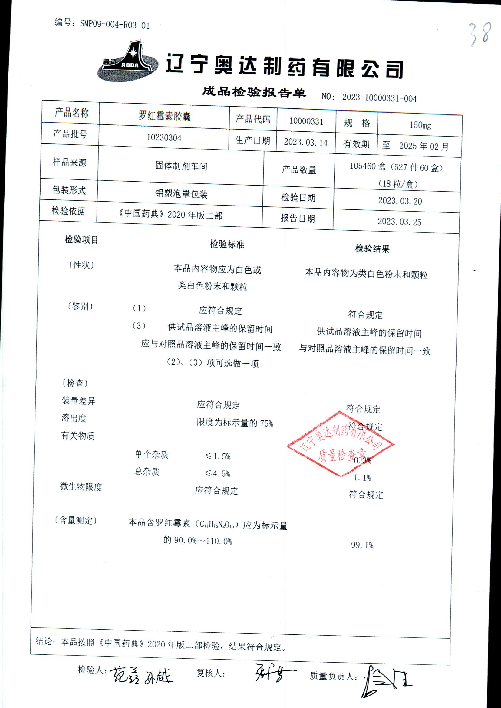 罗红霉素胶囊 | 150mg*18粒 | 10231003 | 查看详情 |