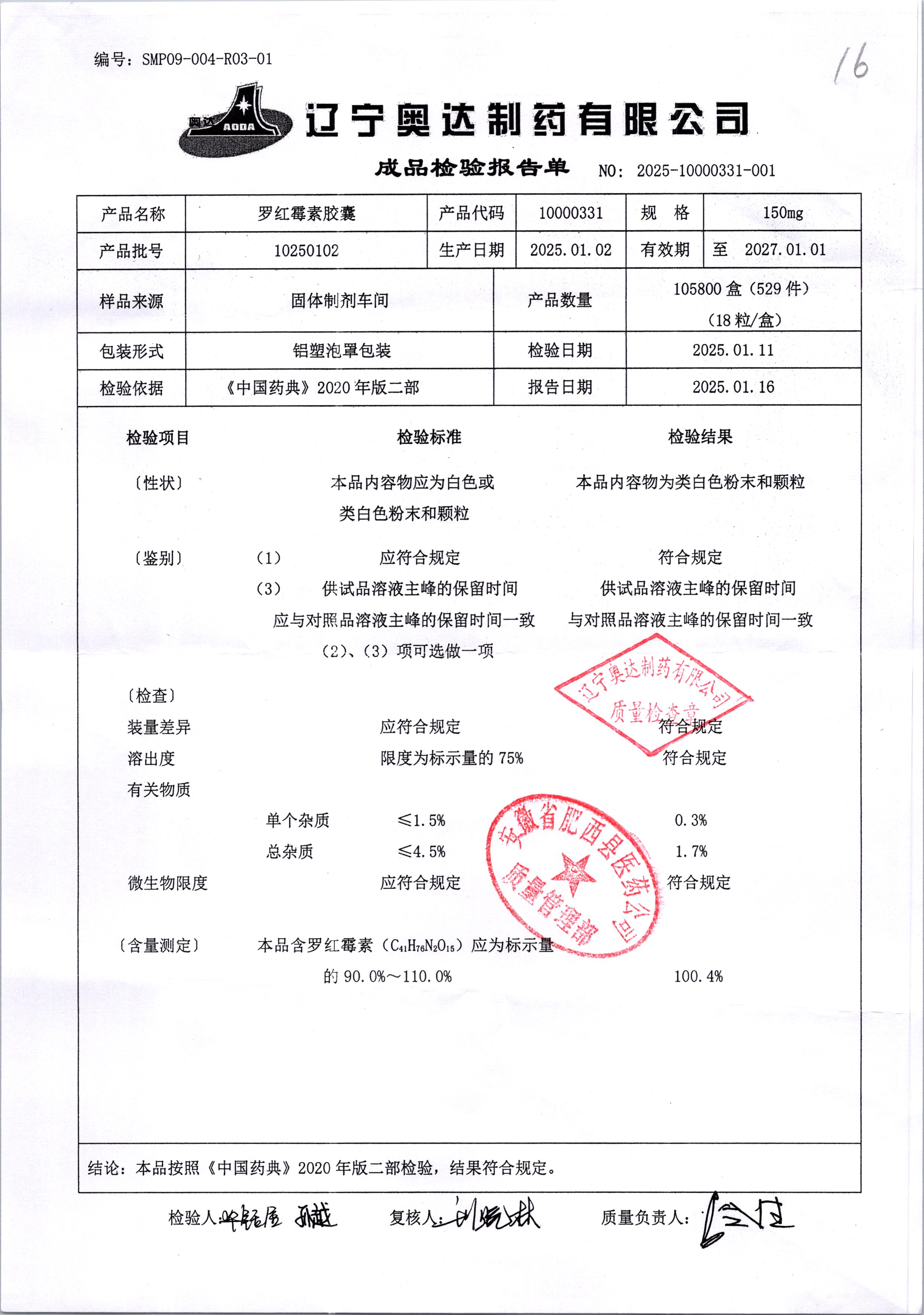 罗红霉素胶囊 | 150mg*18粒 | 10231002 | 查看详情 |