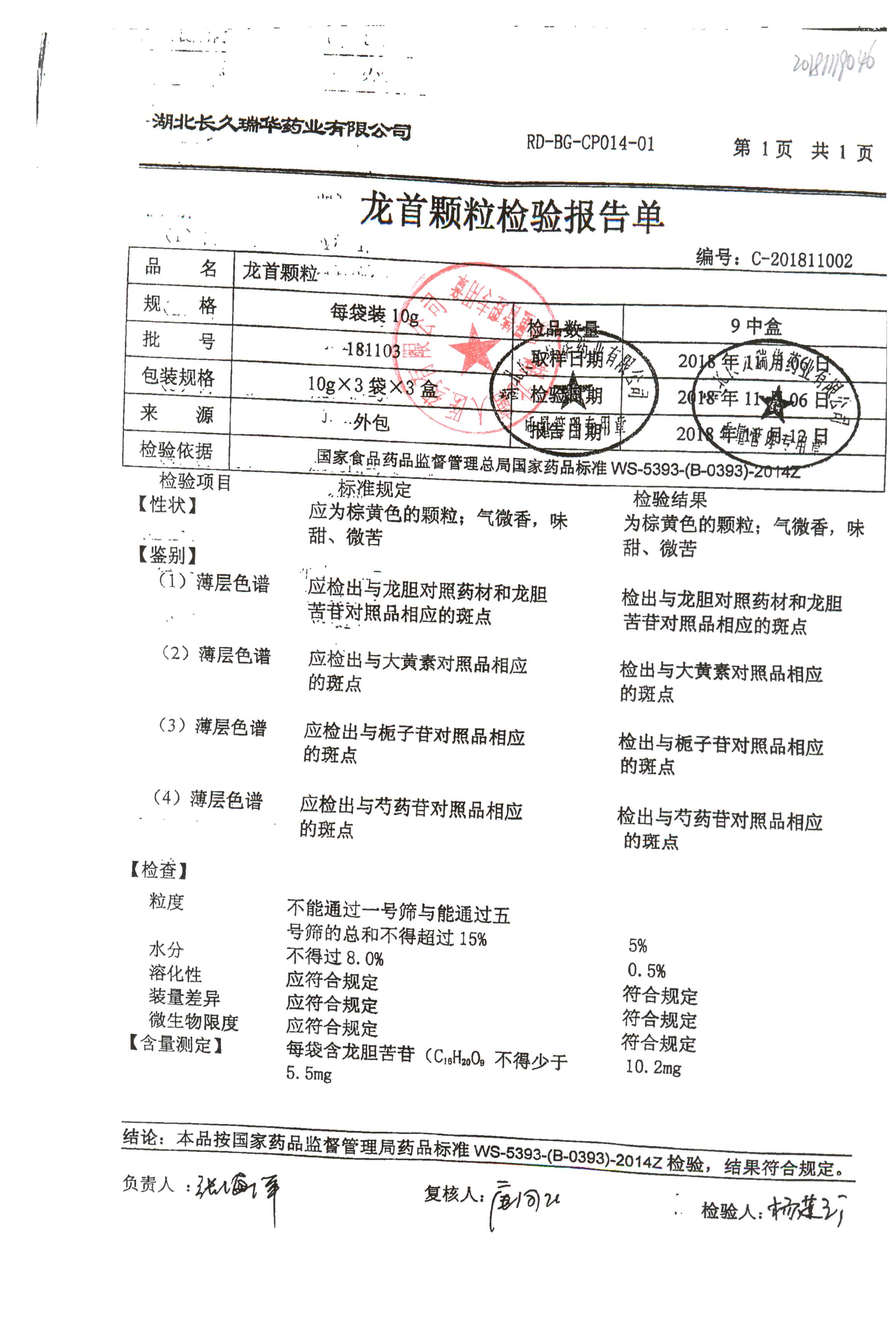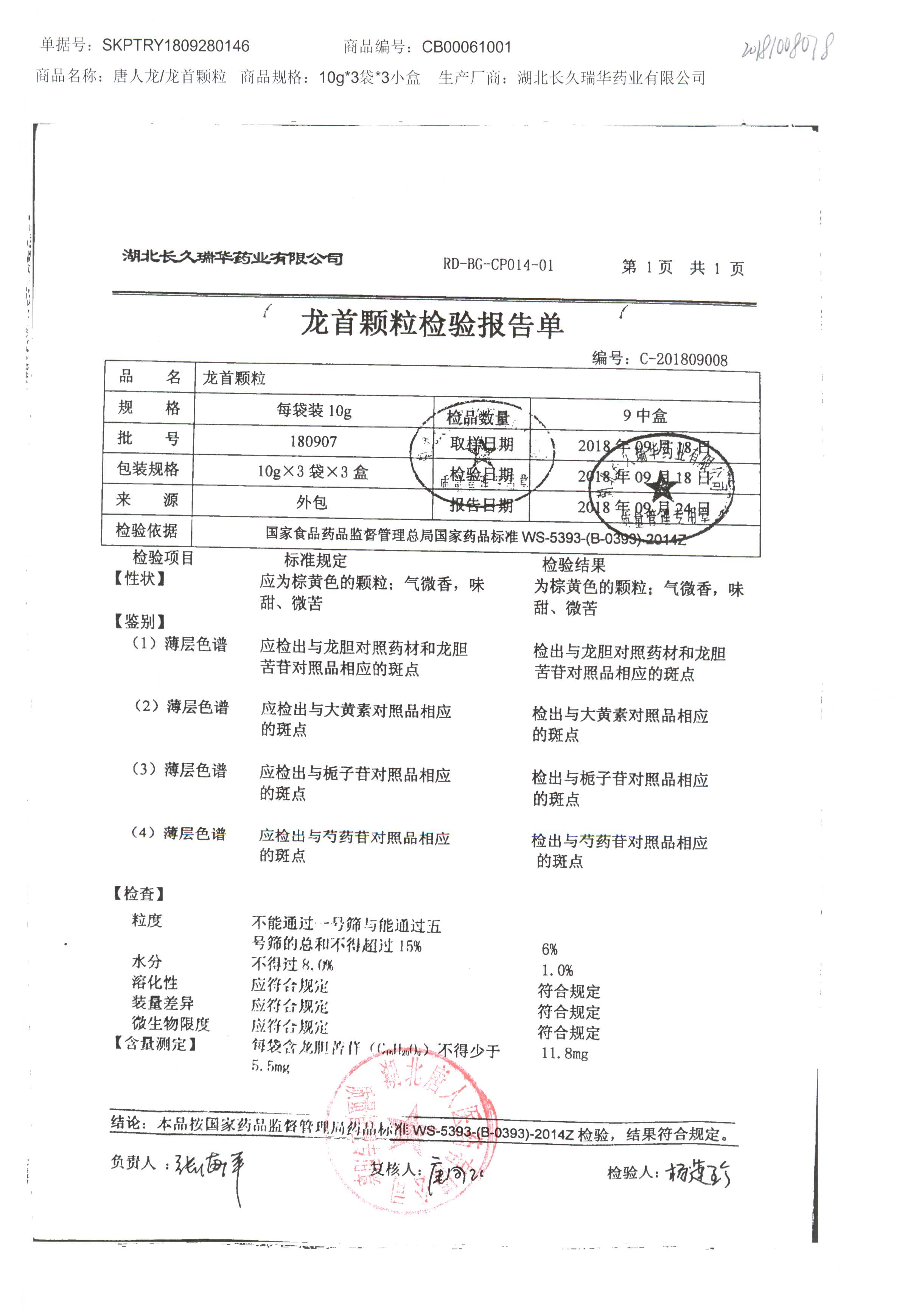 药检报告
