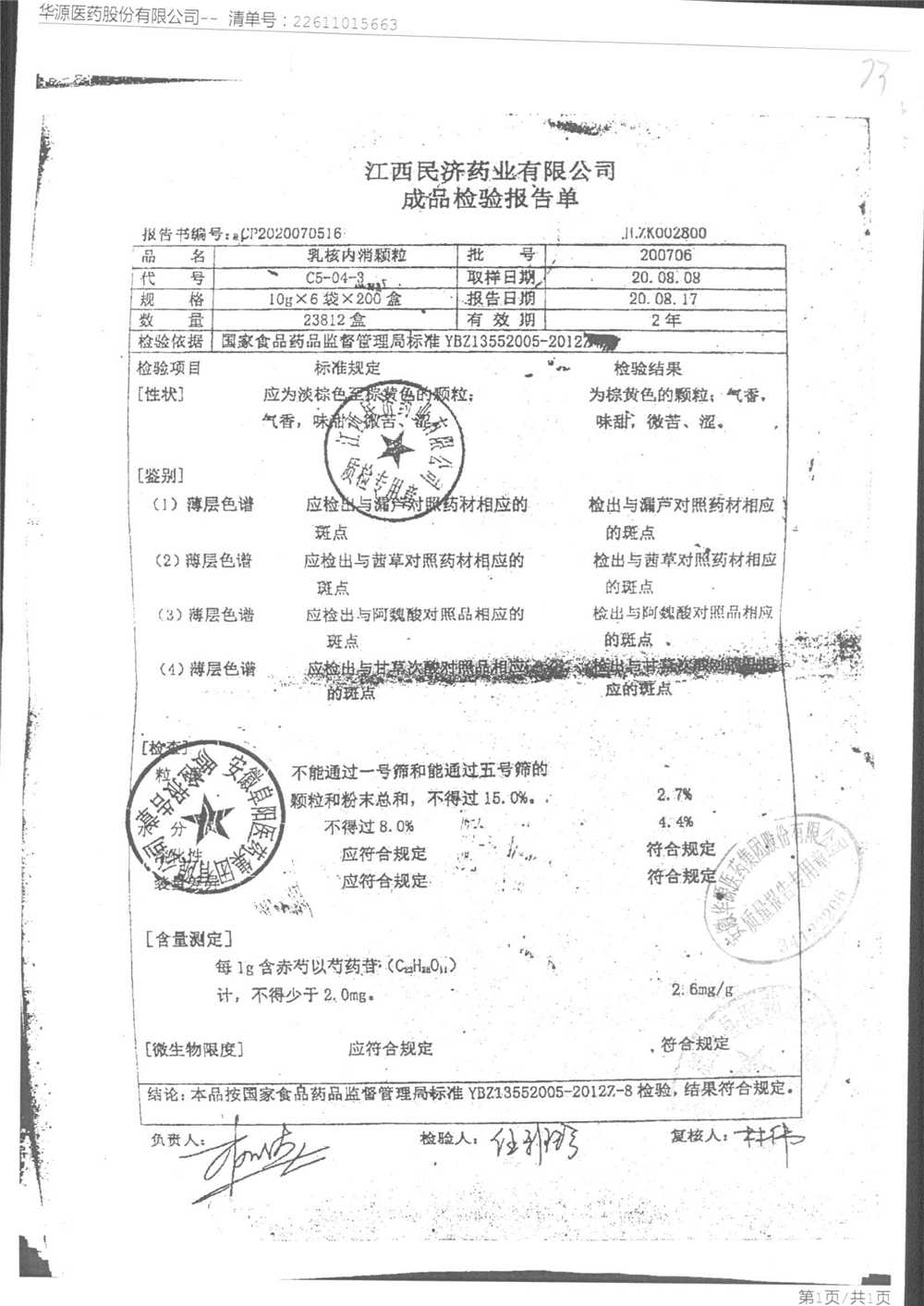 乳核内消颗粒 | 10g*6袋 | 200706 | 查看详情 |