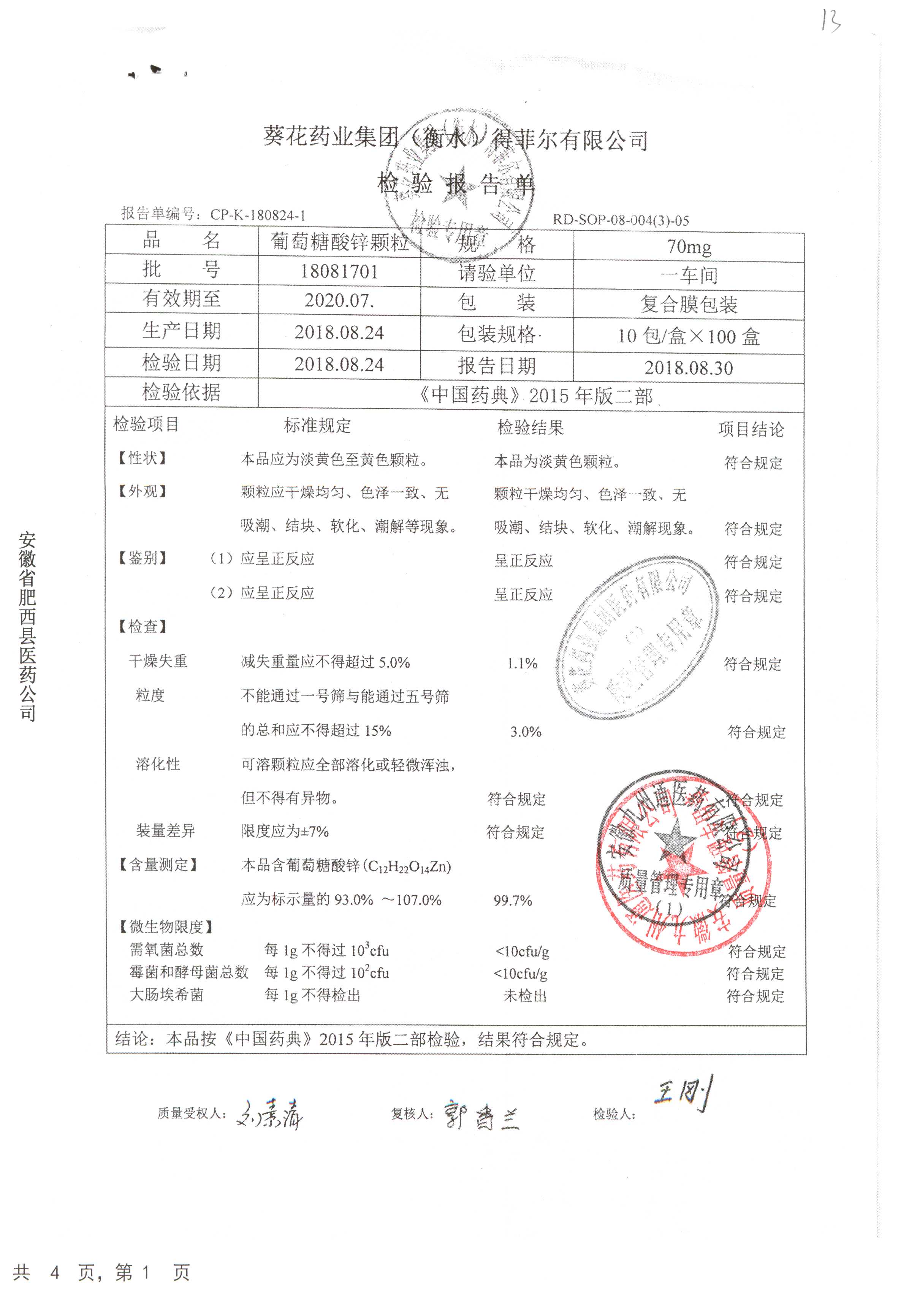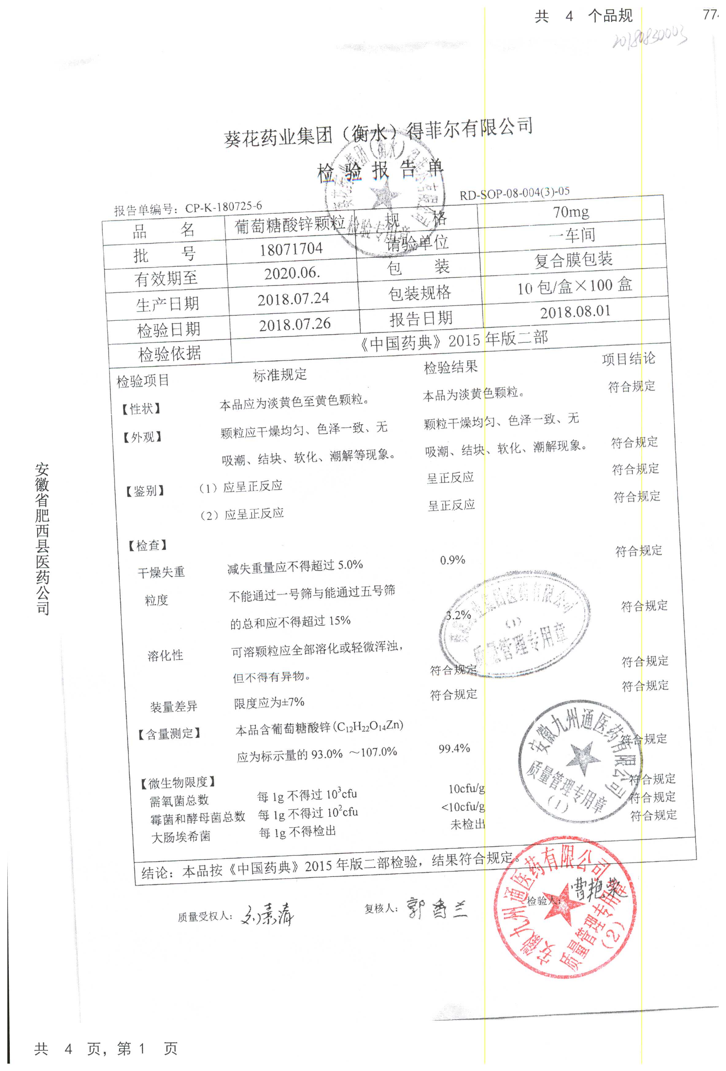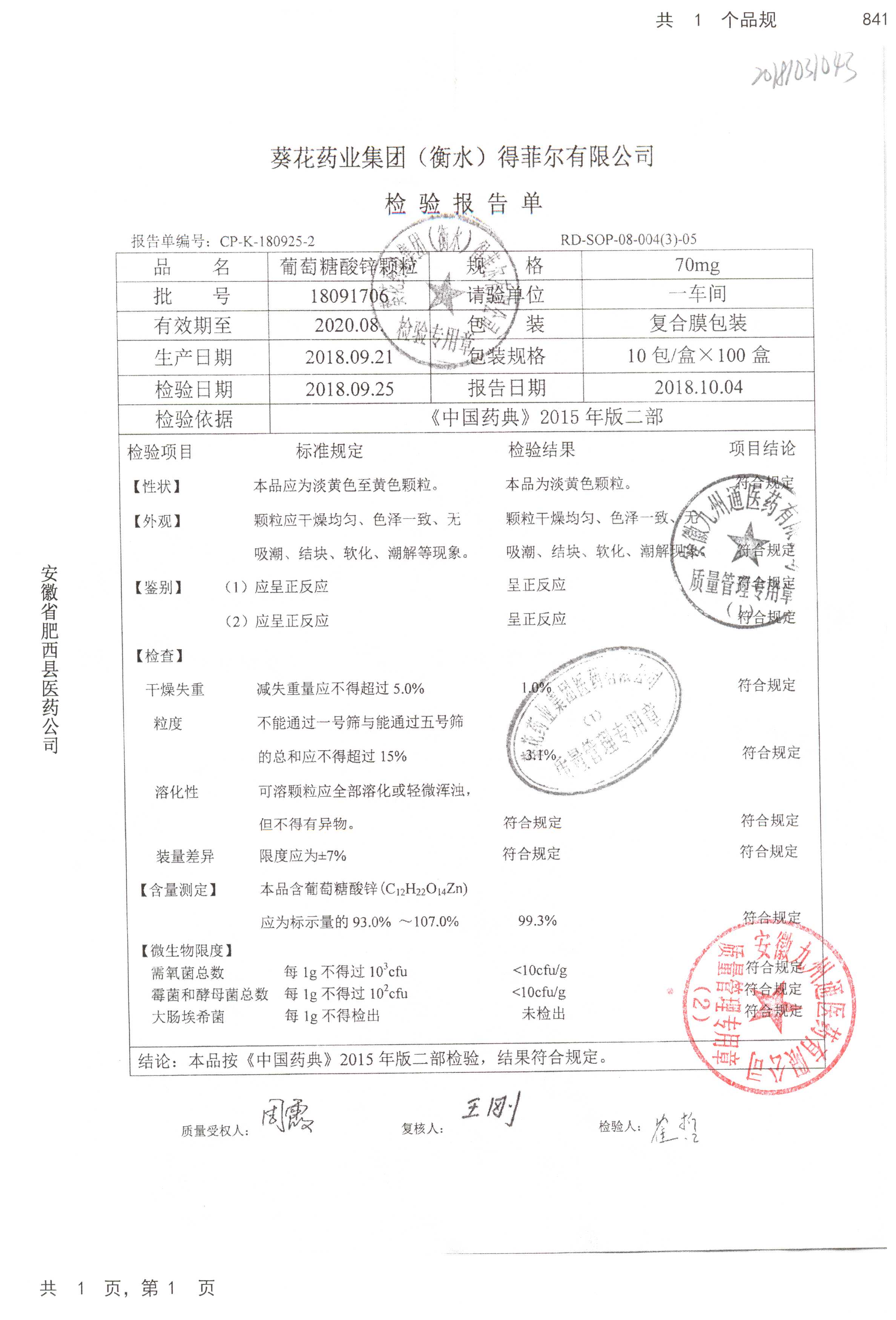 葡萄糖酸锌颗粒 | 70mg*10包 | 18081701 | 查看详情 |
