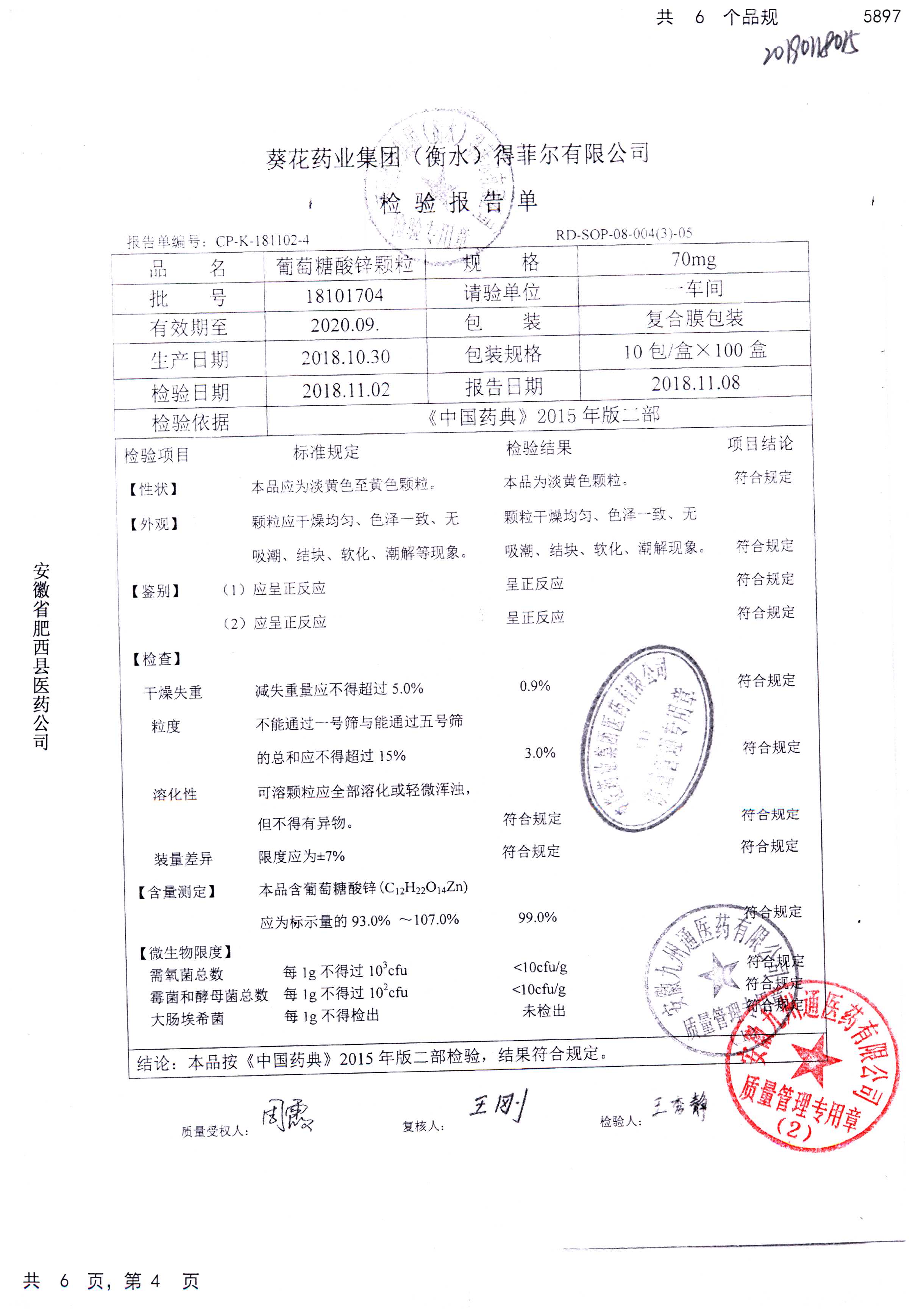 葡萄糖酸锌颗粒 | 70mg*10包 | 20041702 | 查看详情 |