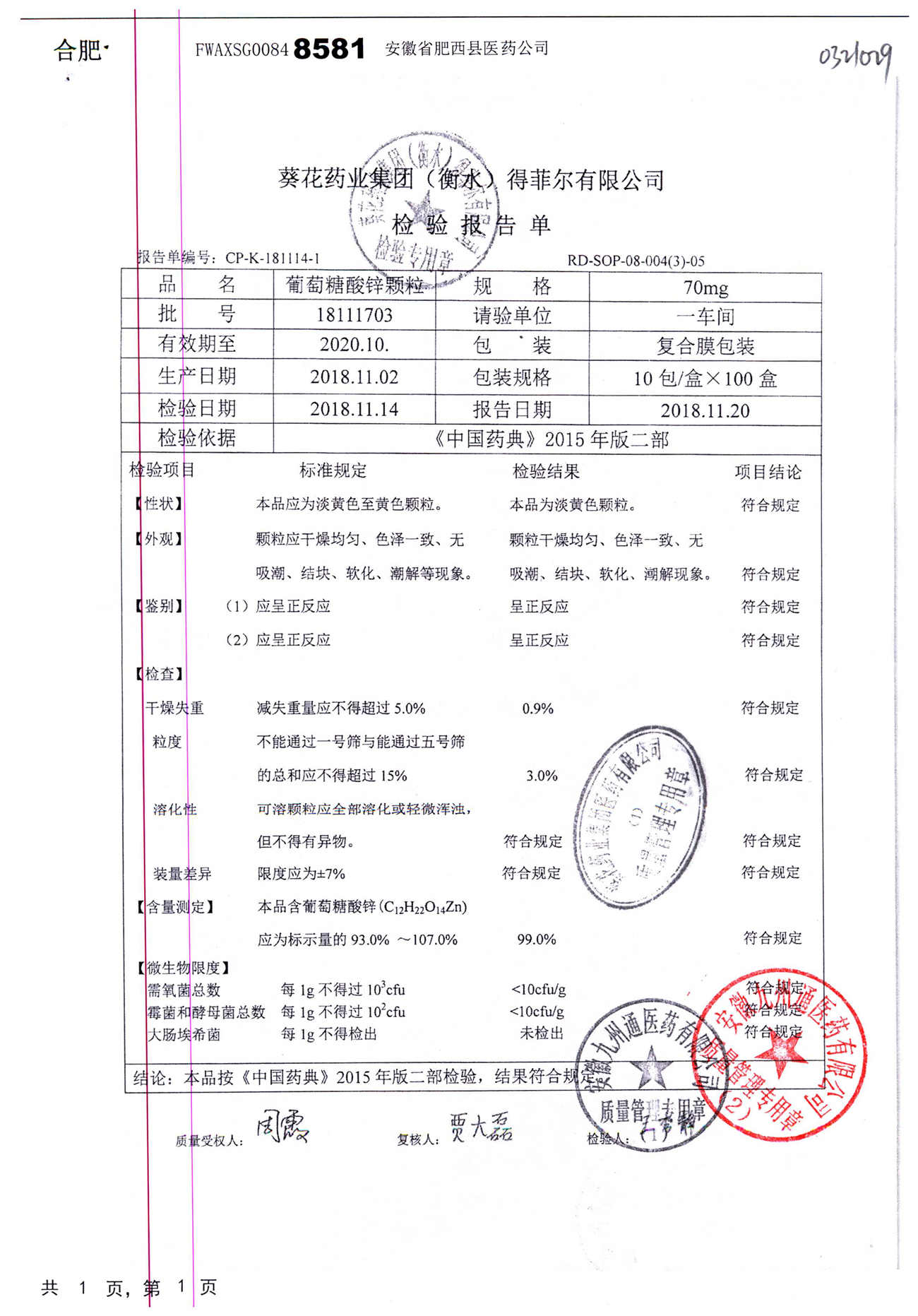 葡萄糖酸锌颗粒 | 70mg*10包 | 18111703 | 查看详情 |