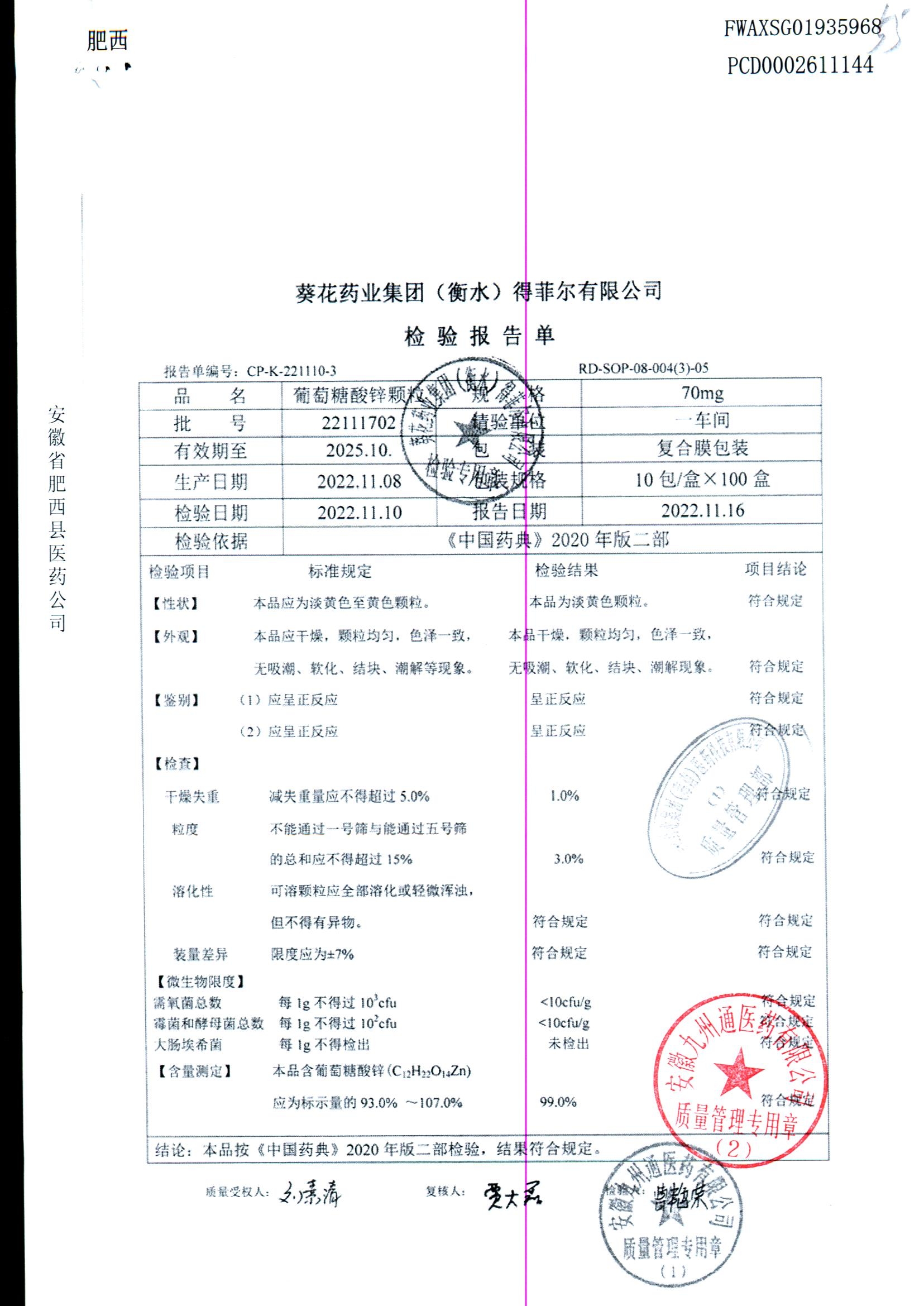 葡萄糖酸锌颗粒 | 70mg*10包 | 22111702 | 查看详情 |
