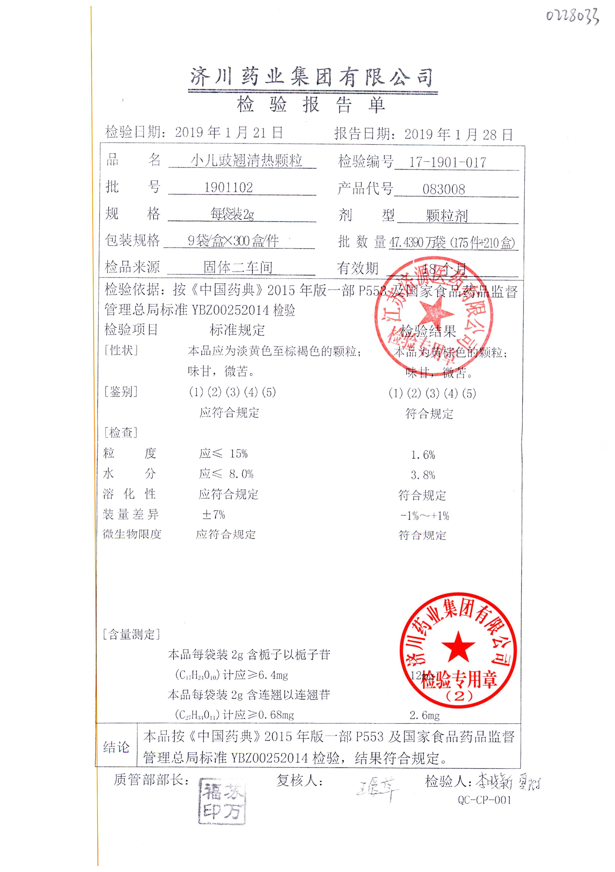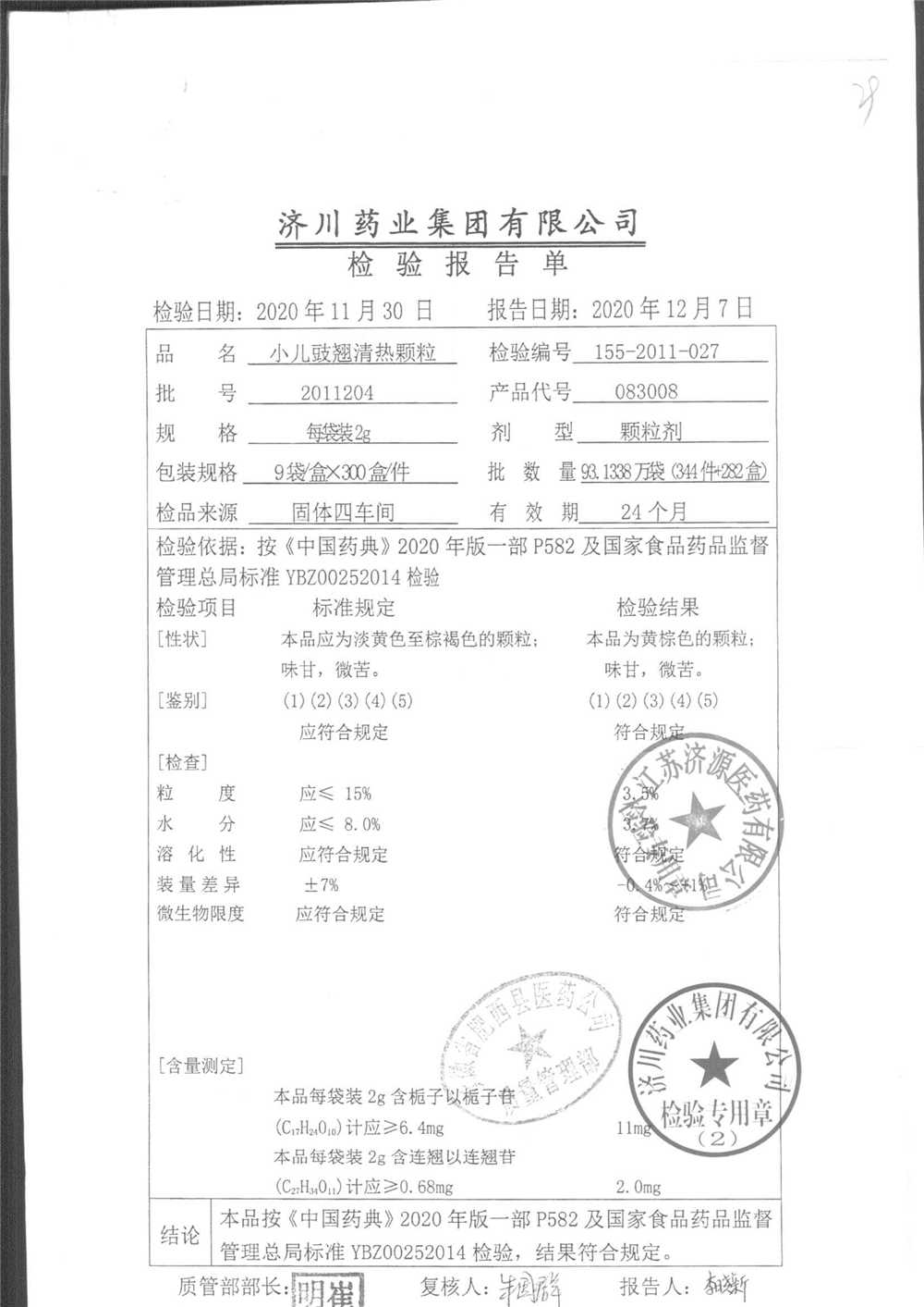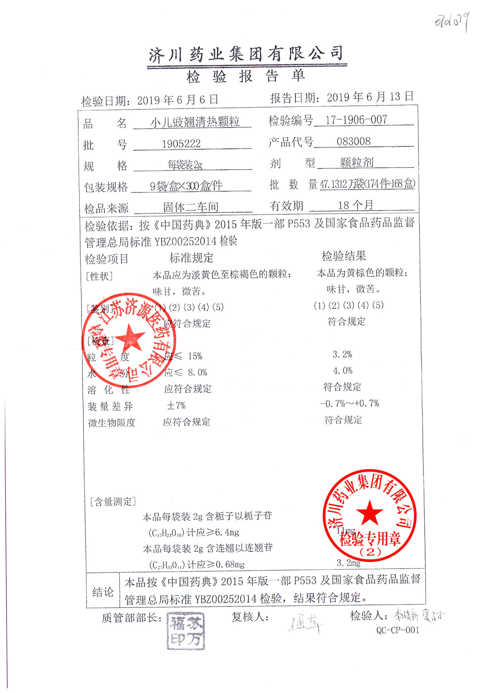小儿豉翘清热颗粒 | 2g*9袋 | 1905222 | 查看详情 |
