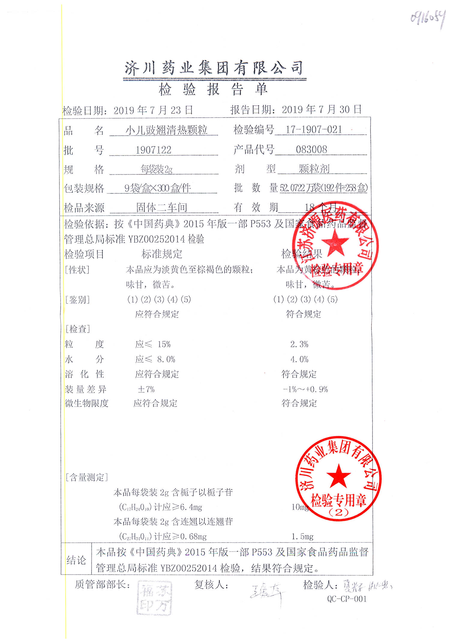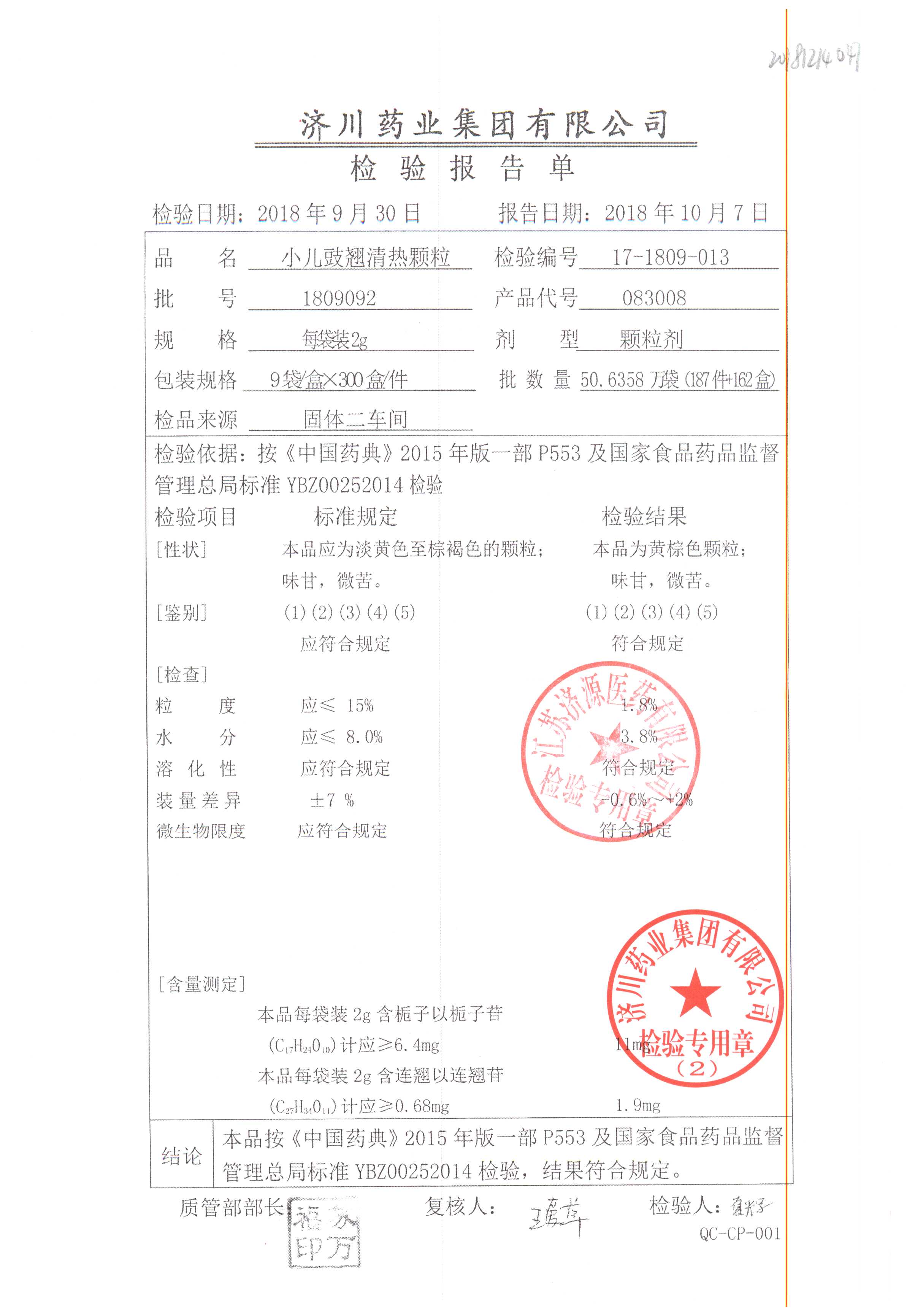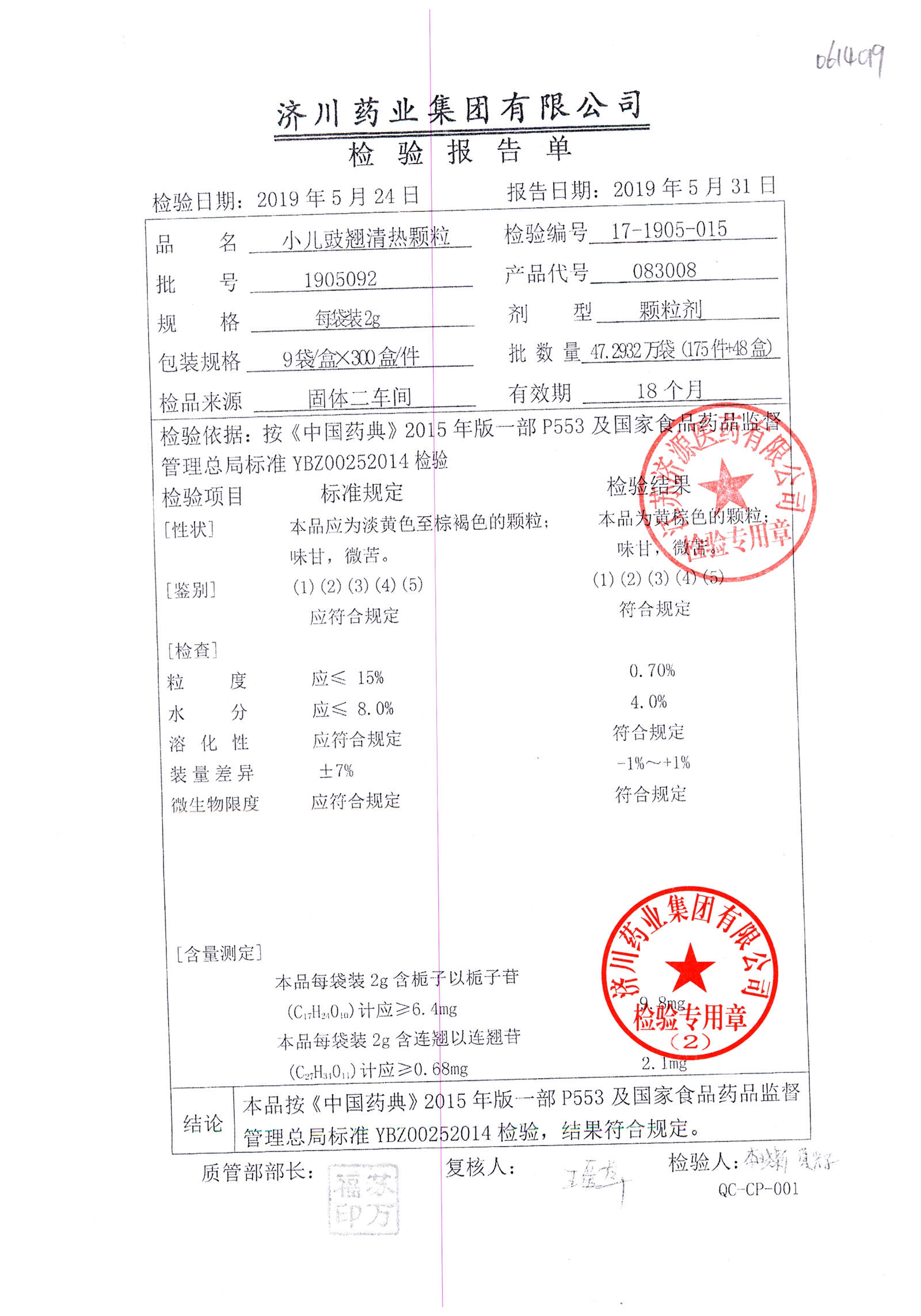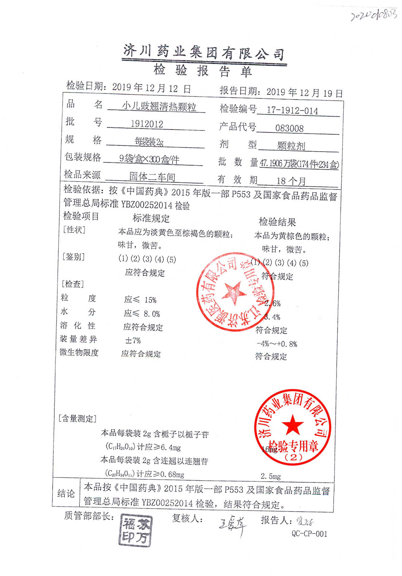 小儿豉翘清热颗粒 | 2g*9袋 | 1905222 | 查看详情 |
