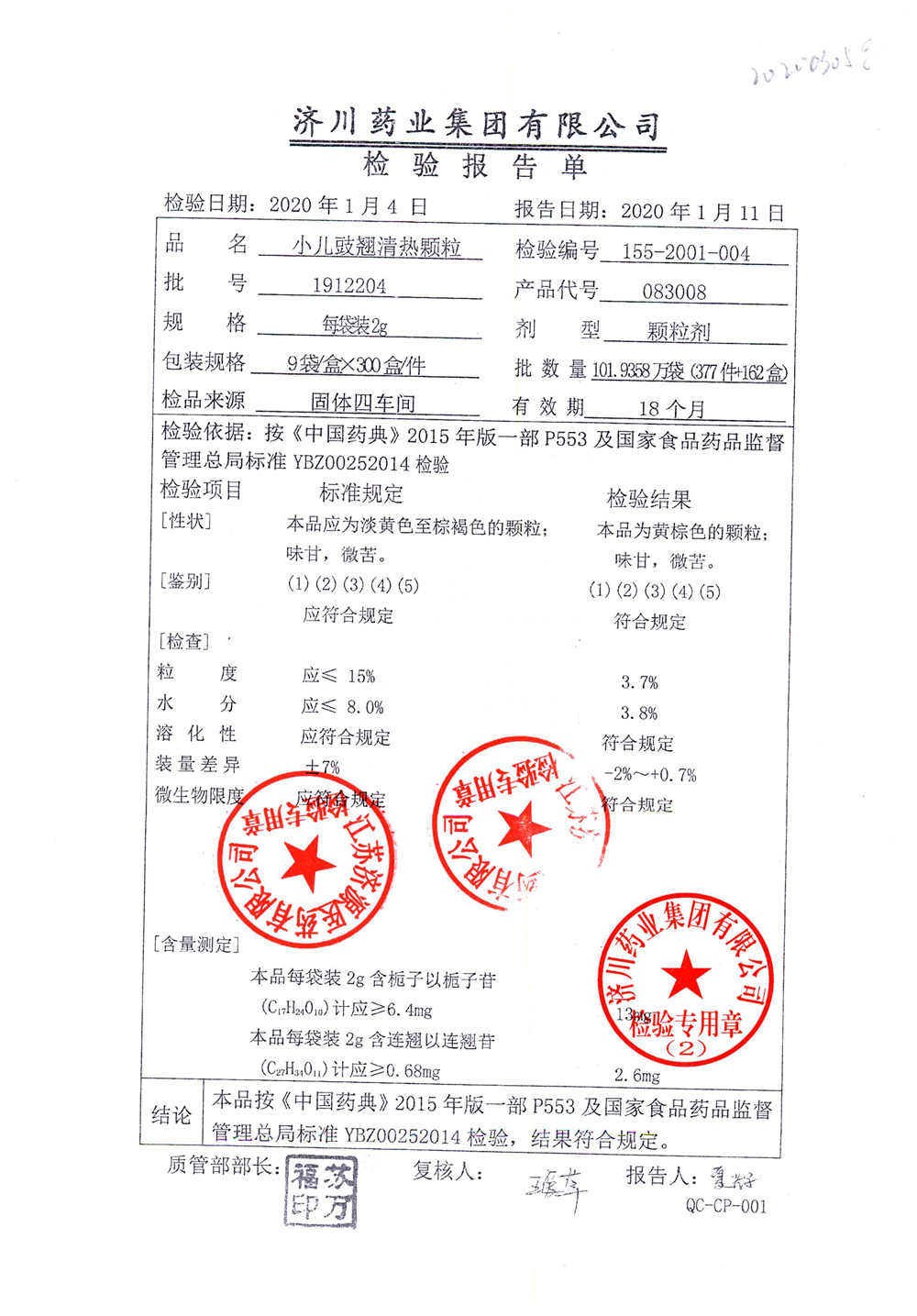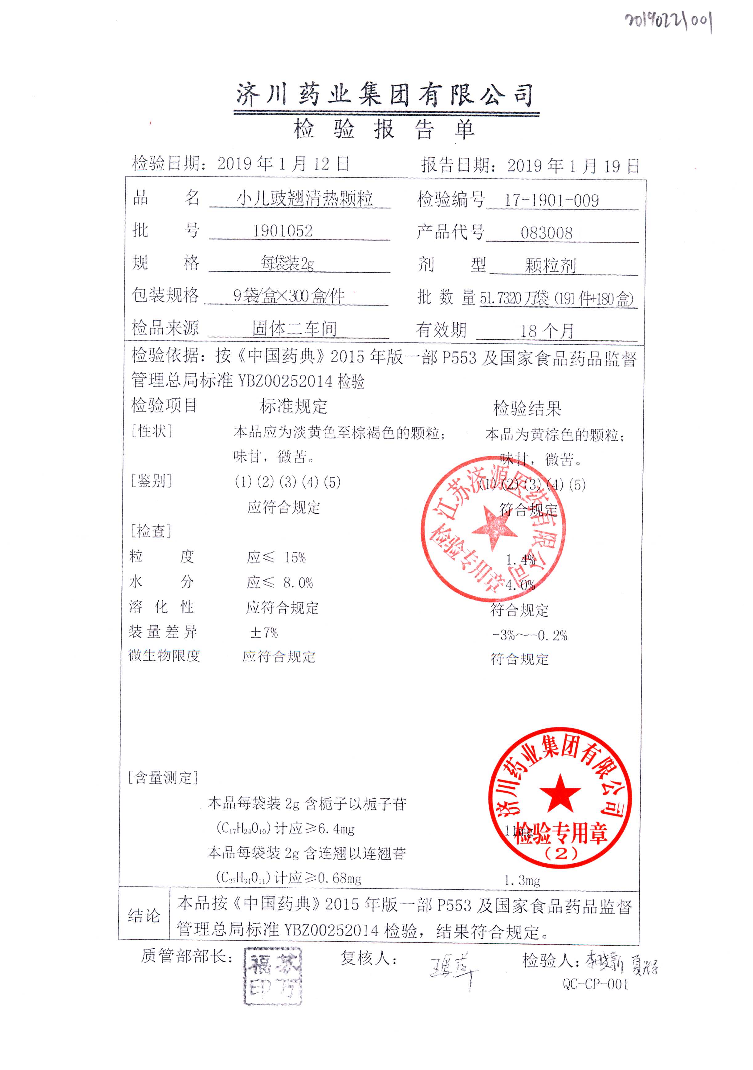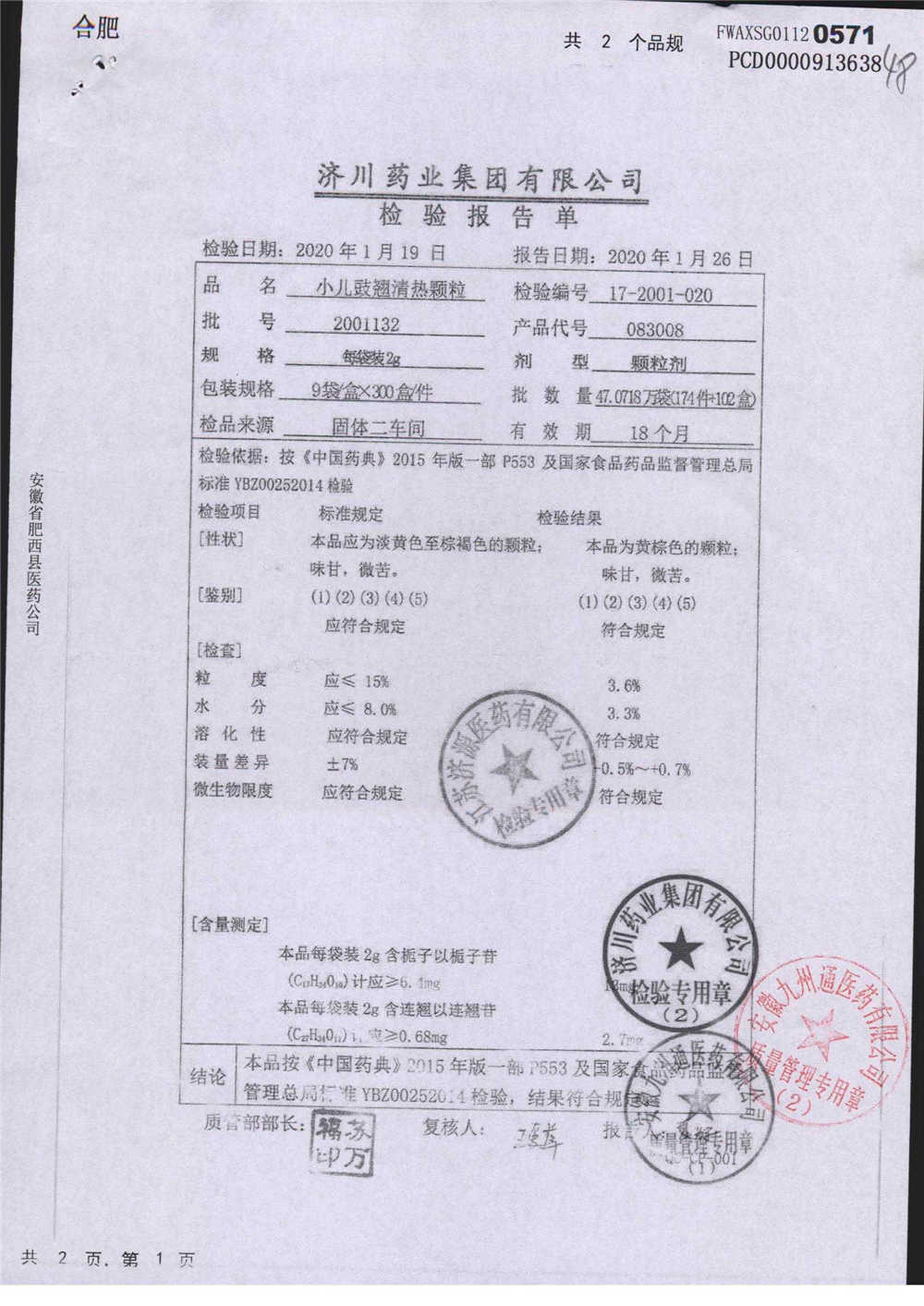 小儿豉翘清热颗粒 | 2g*9袋 | 2001132 | 查看详情 |
