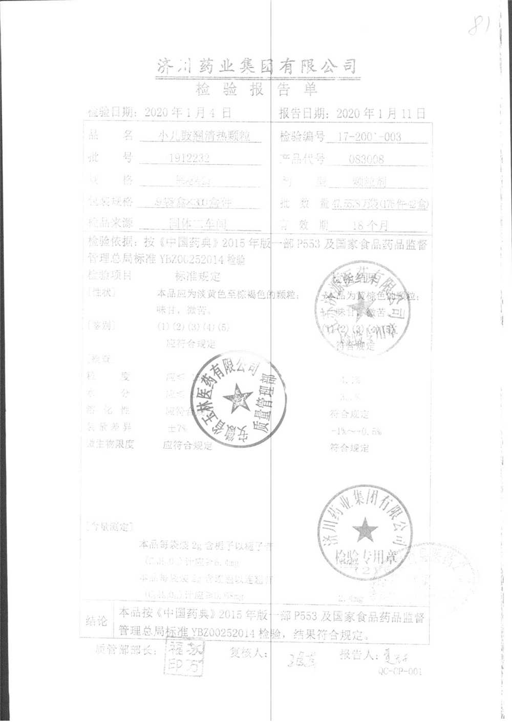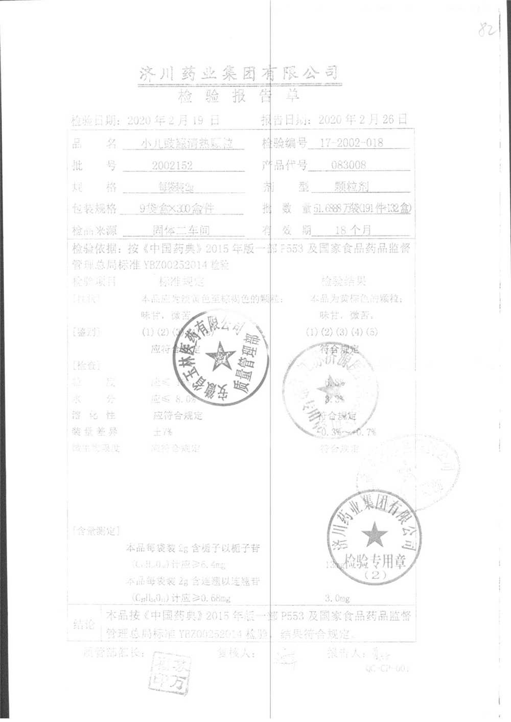 小儿豉翘清热颗粒 | 2g*9袋 | 1912012 | 查看详情 |