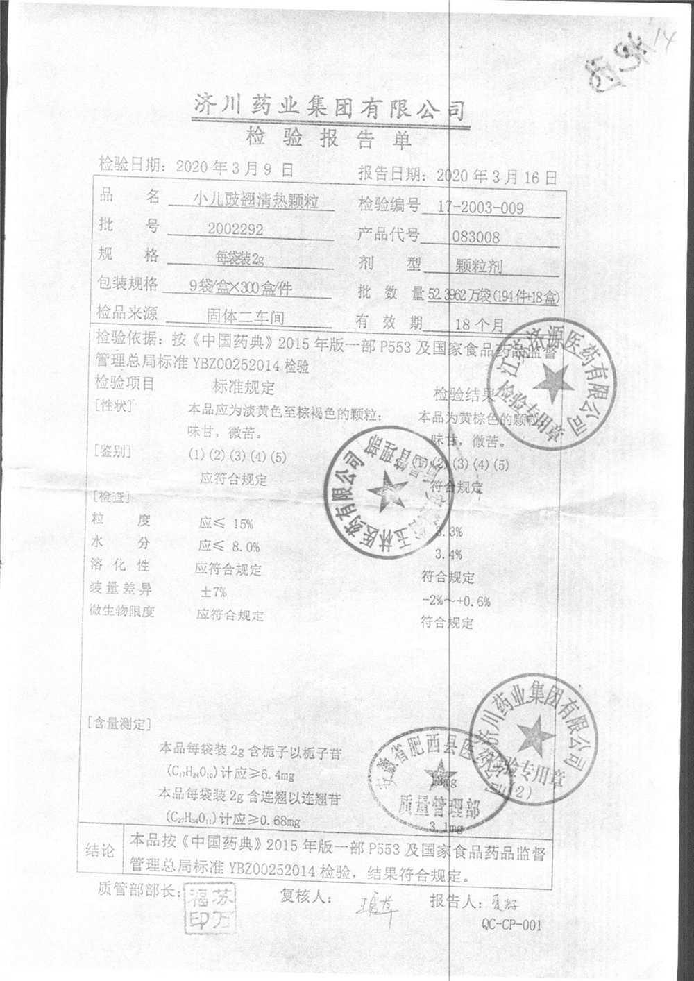 小儿豉翘清热颗粒 | 2g*9袋 | 2002292 | 查看详情 |