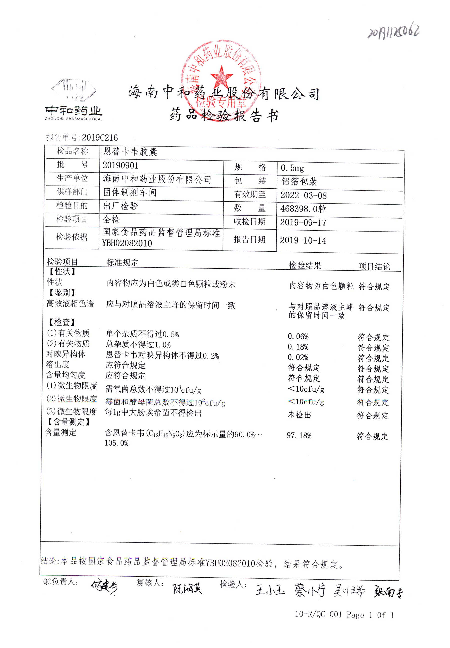 恩替卡韦胶囊 | 0.5mg | 20190901(2/3) | 查看详情 |