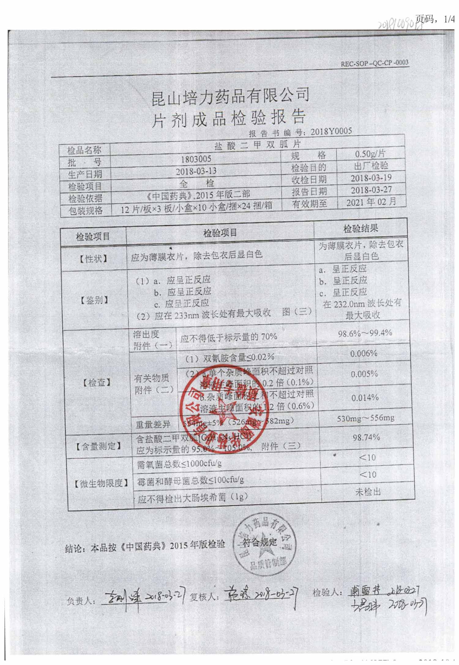 盐酸二甲双胍片 | 0.5g*36片 | 1805031 | 查看详情 |