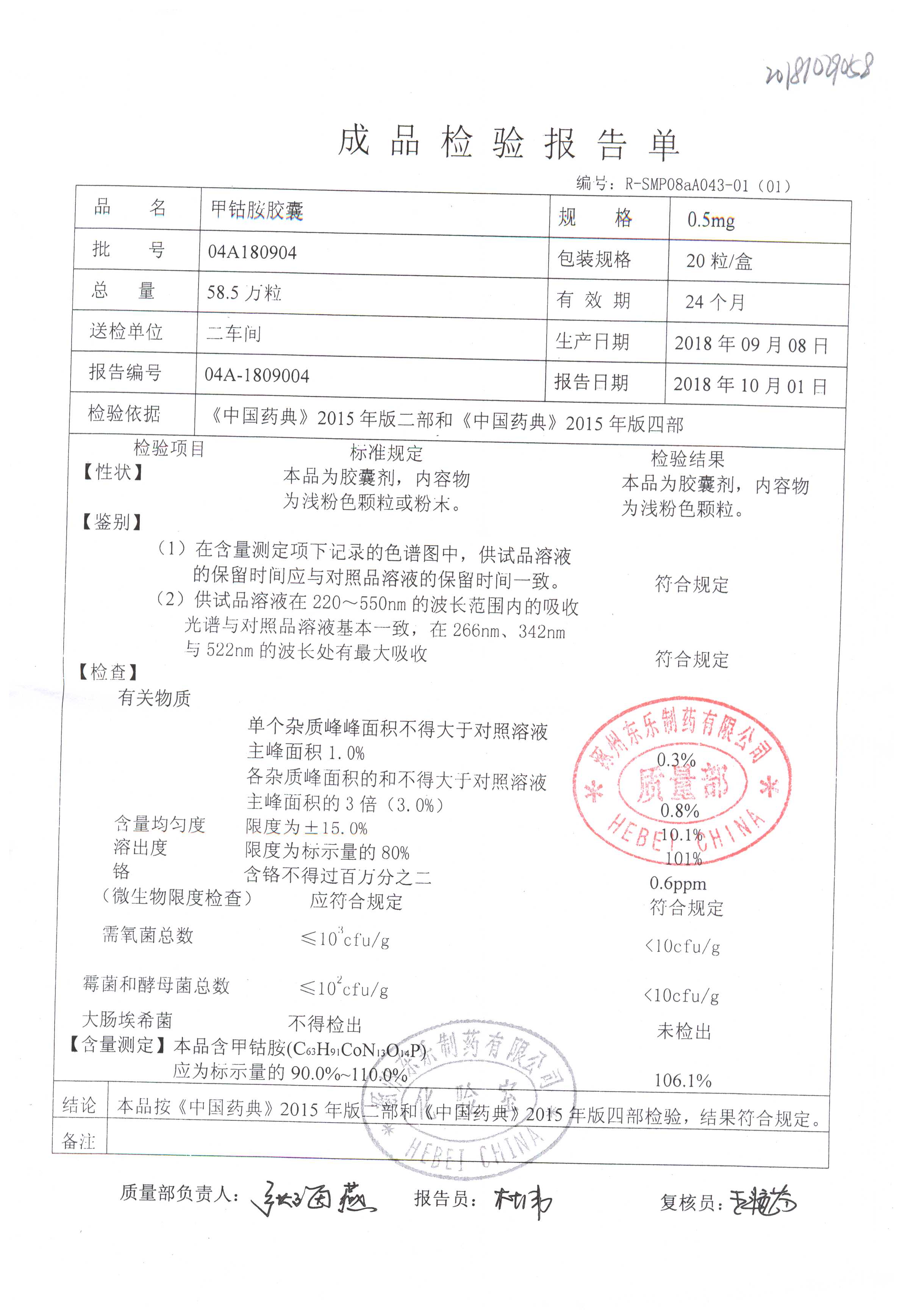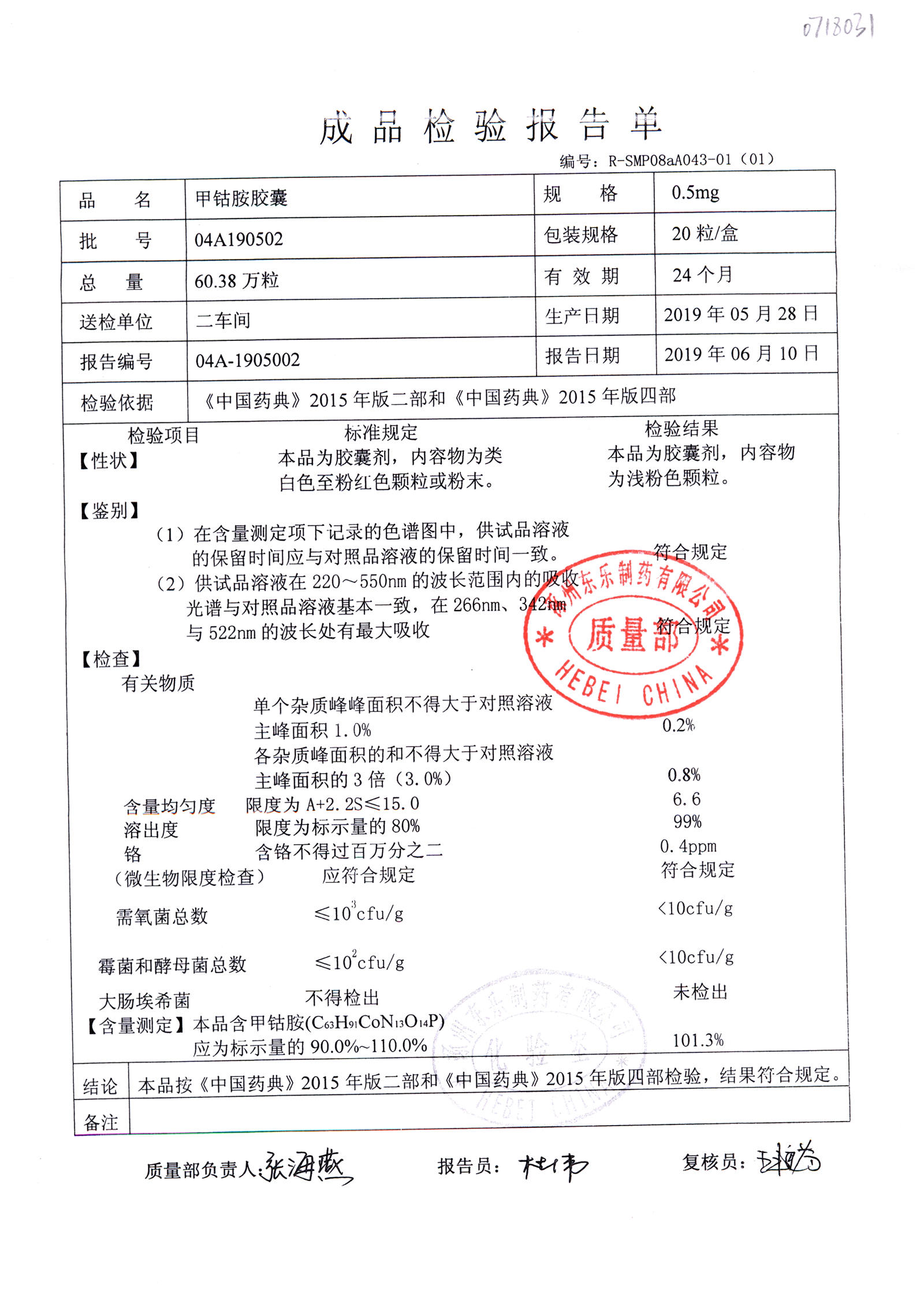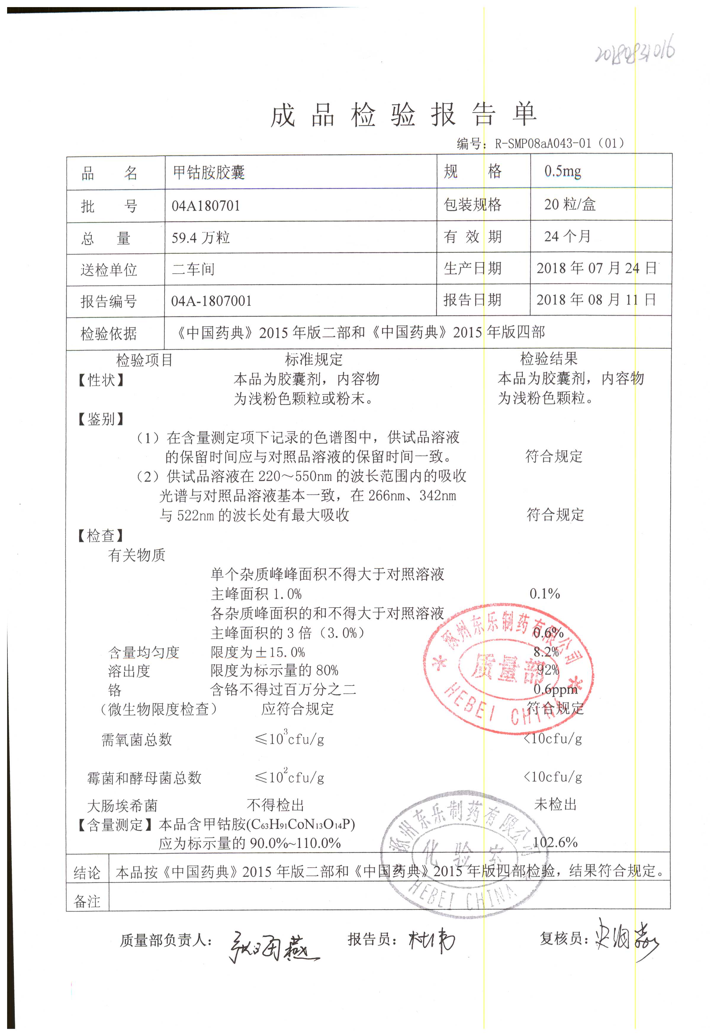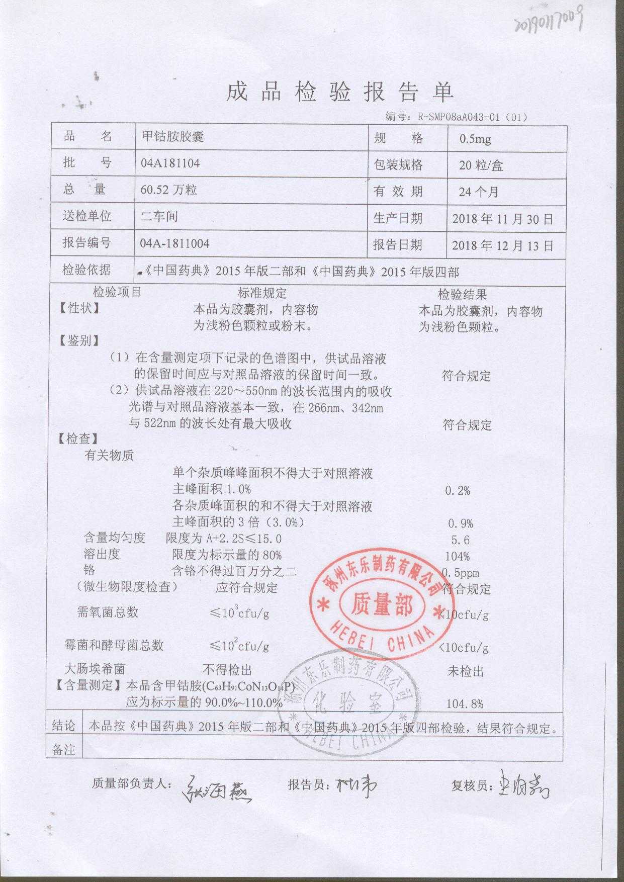 甲钴胺胶囊 | 0.5mg*20粒 | 04A180701 | 查看详情 |