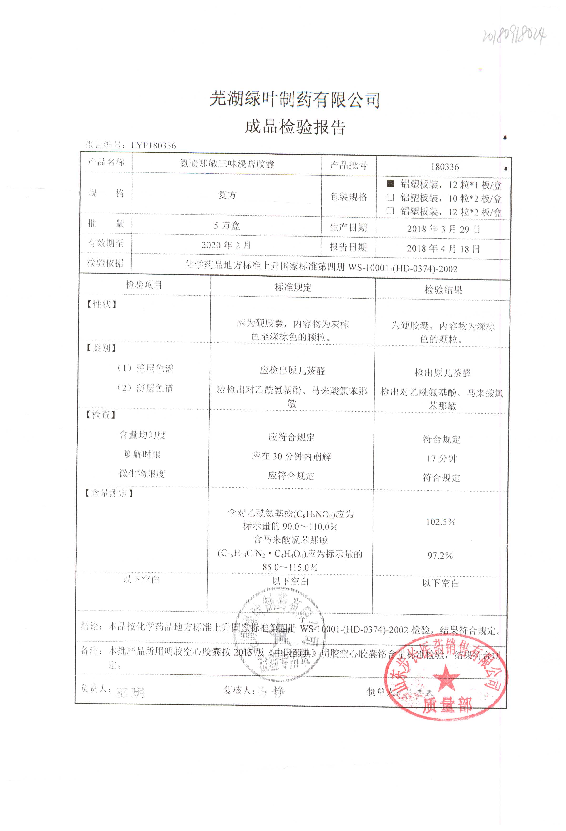 氨酚那敏三味浸膏胶囊 | 复方 | 180336 | 查看详情 |