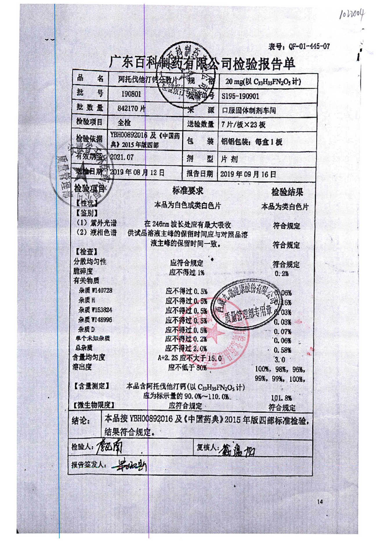 药检报告