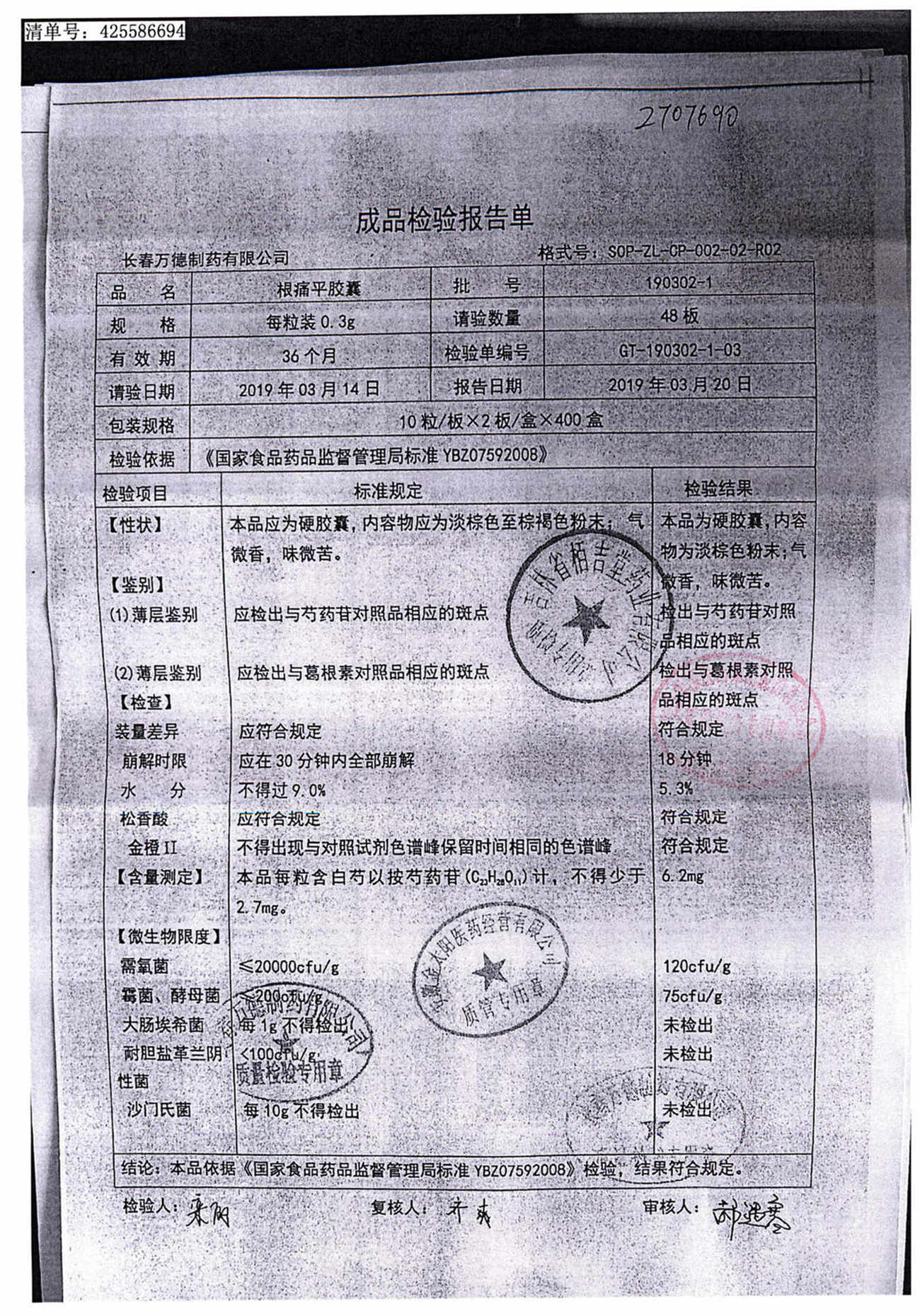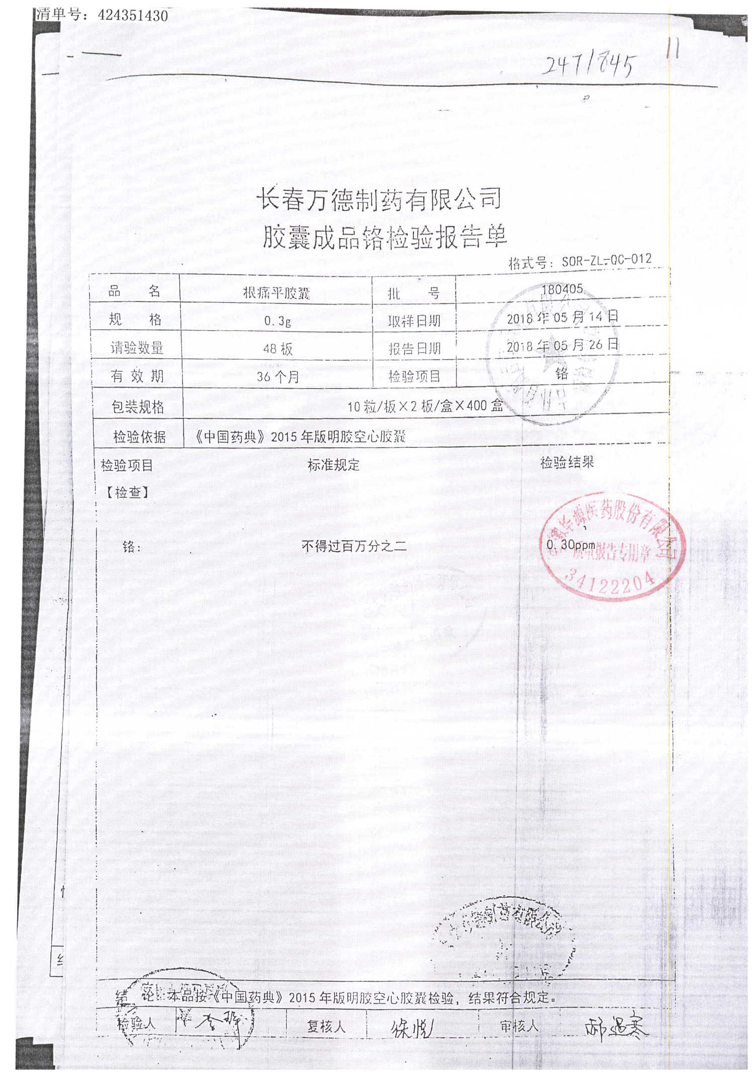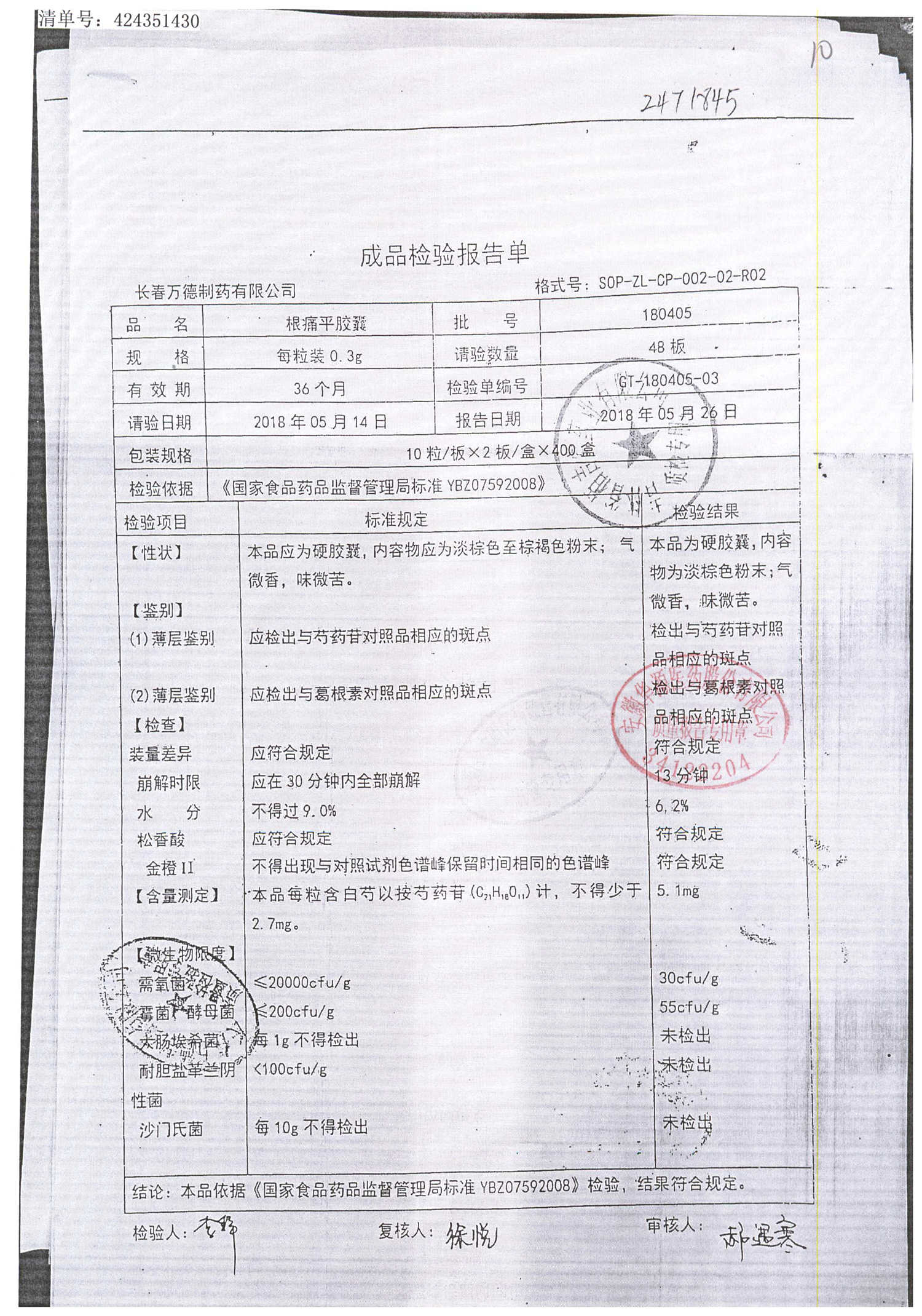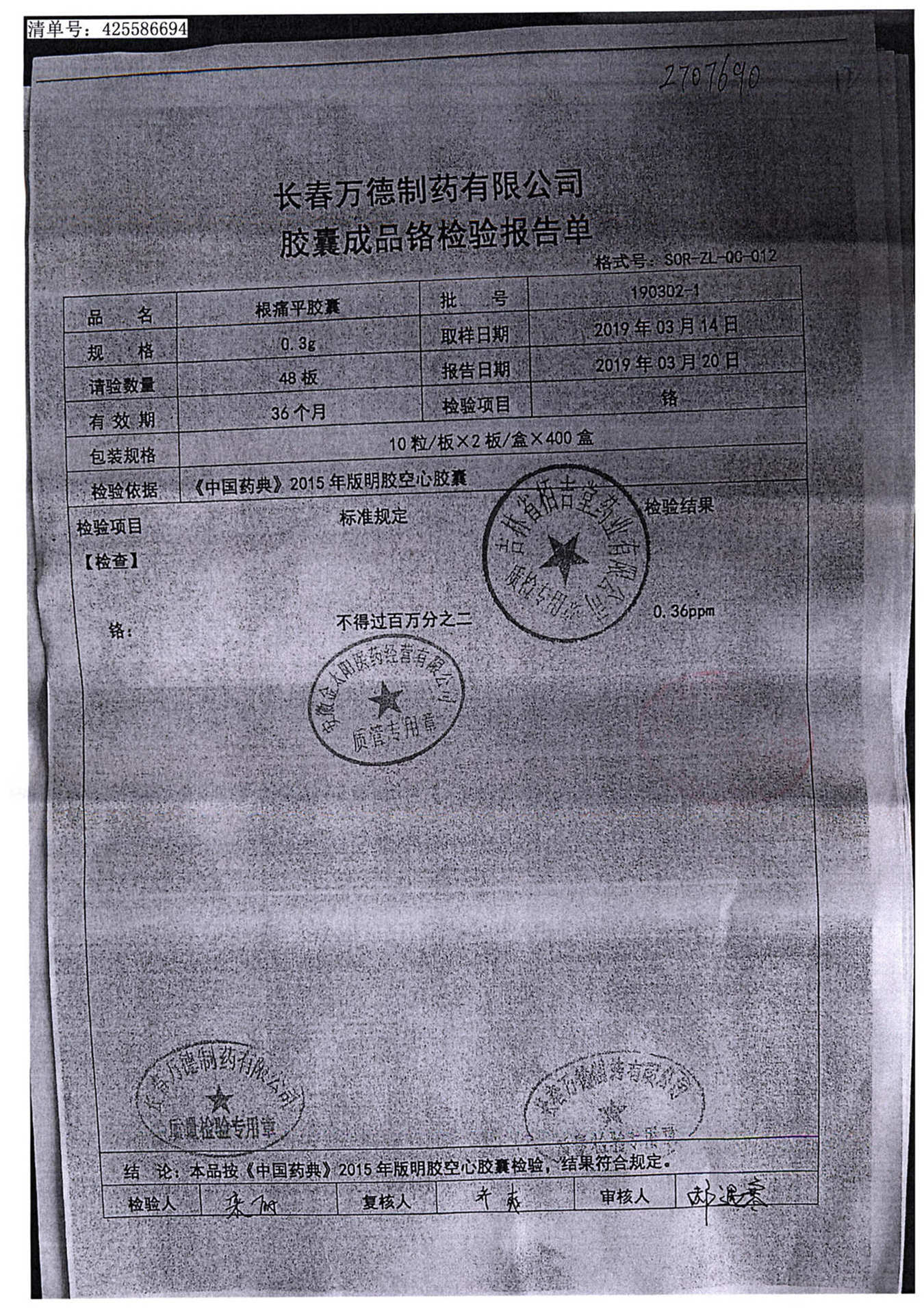 根痛平胶囊 | 0.3g*20粒 | 180405(铬) | 查看详情 |