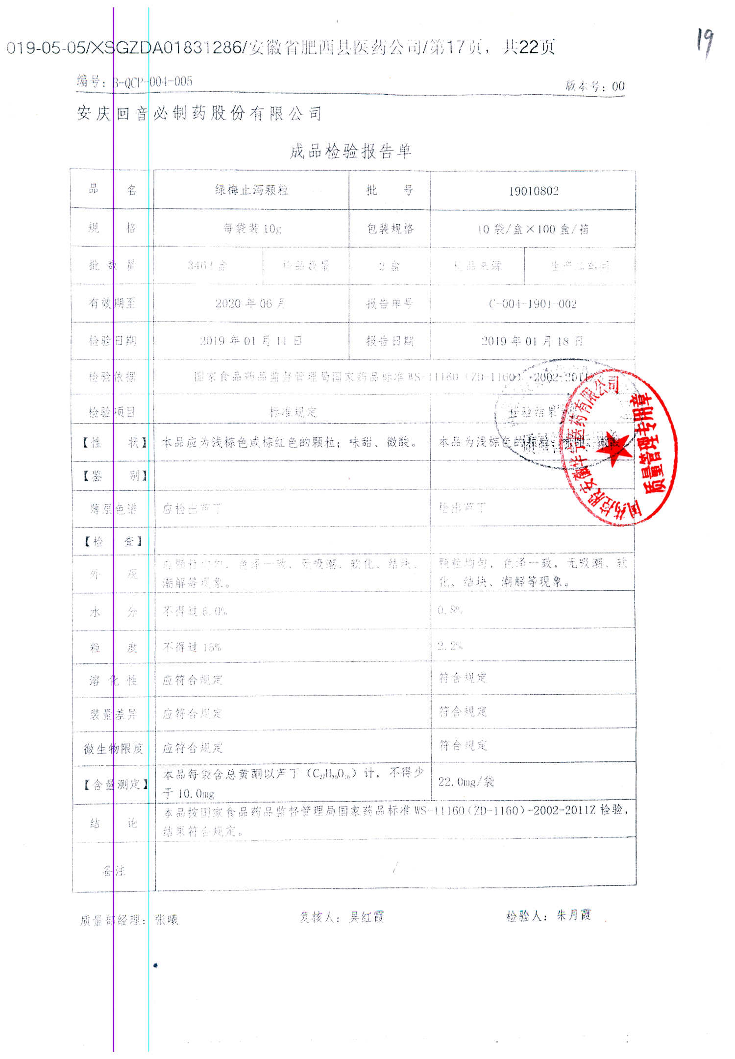 绿梅止泻颗粒 | 10g*10袋 | 19010802 | 查看详情 |