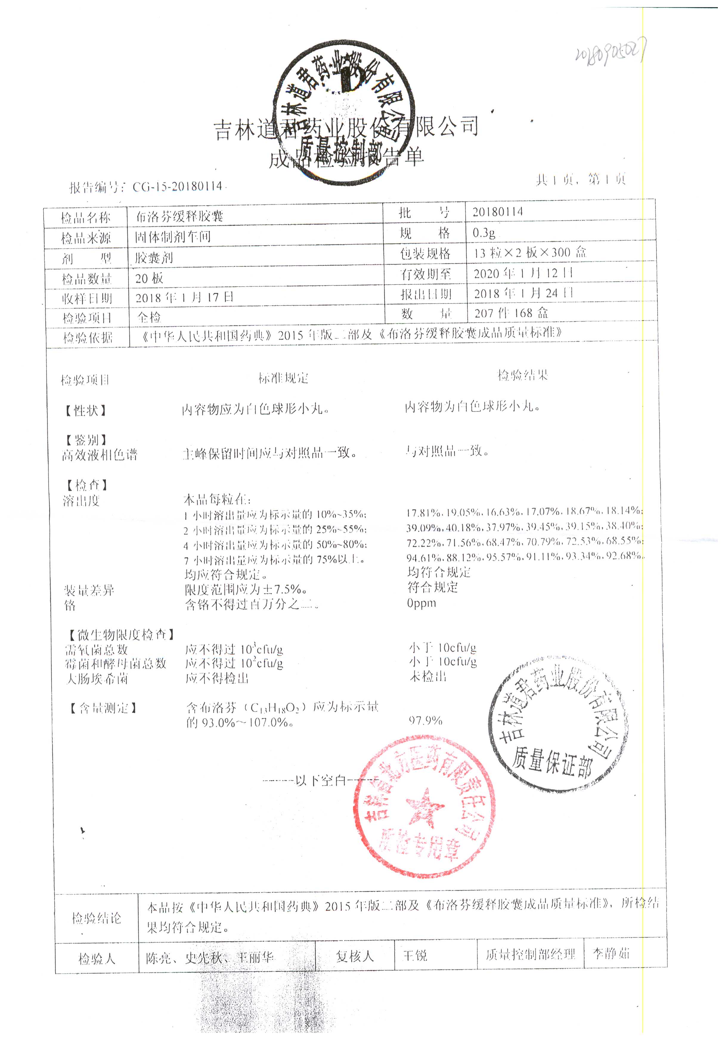 布洛芬缓释胶囊 | 0.3g*26粒 | 20180114 | 查看详情 |