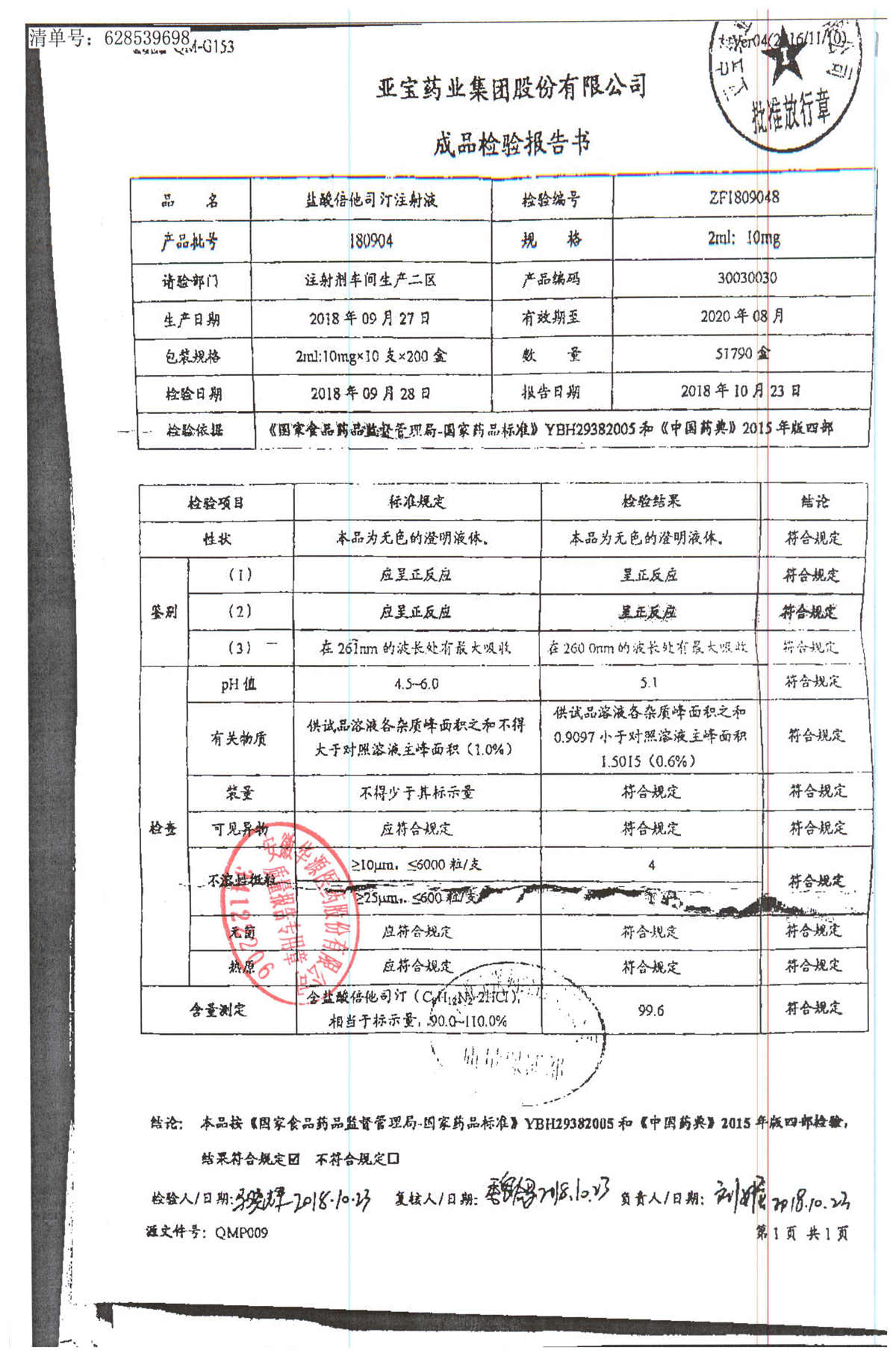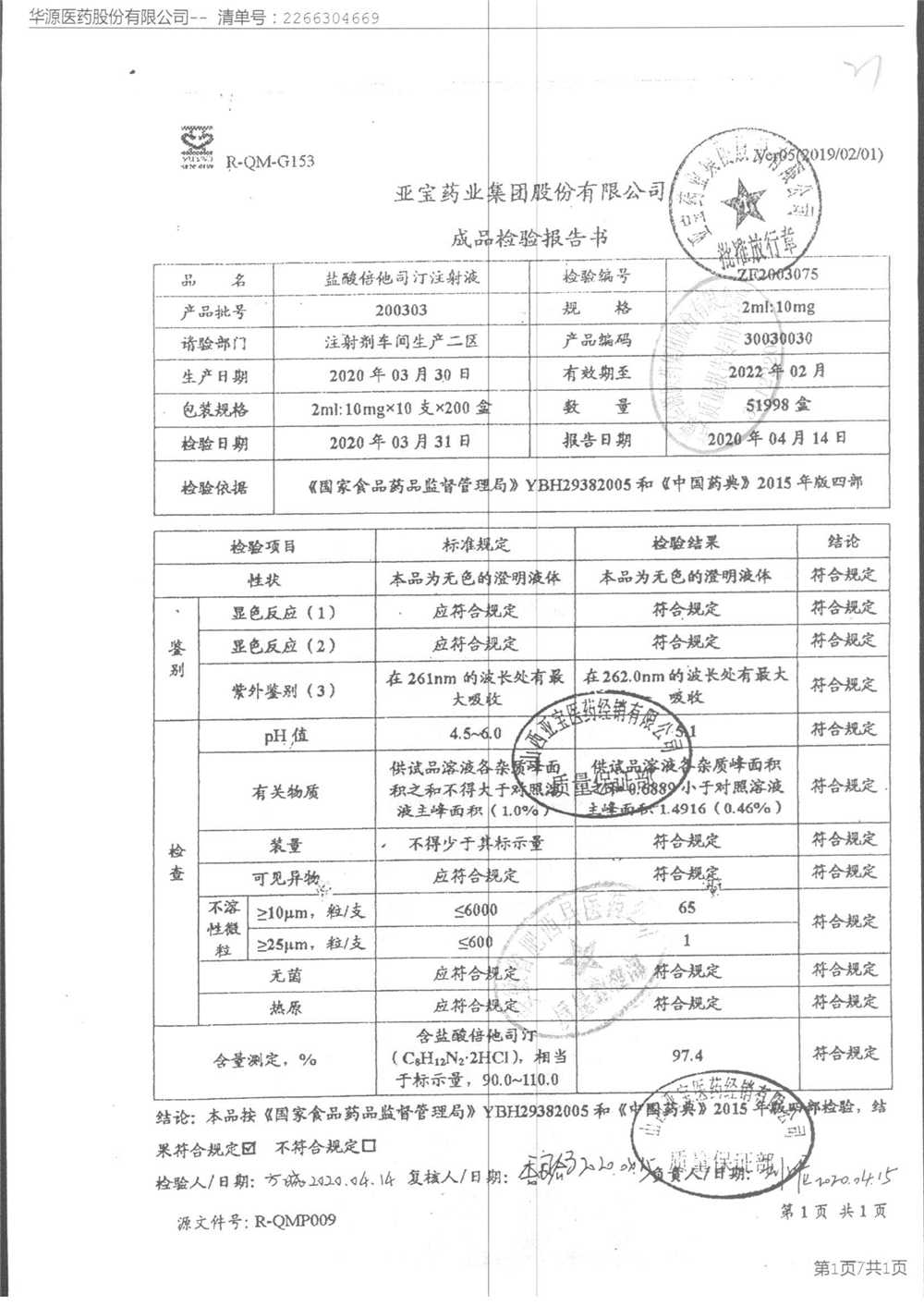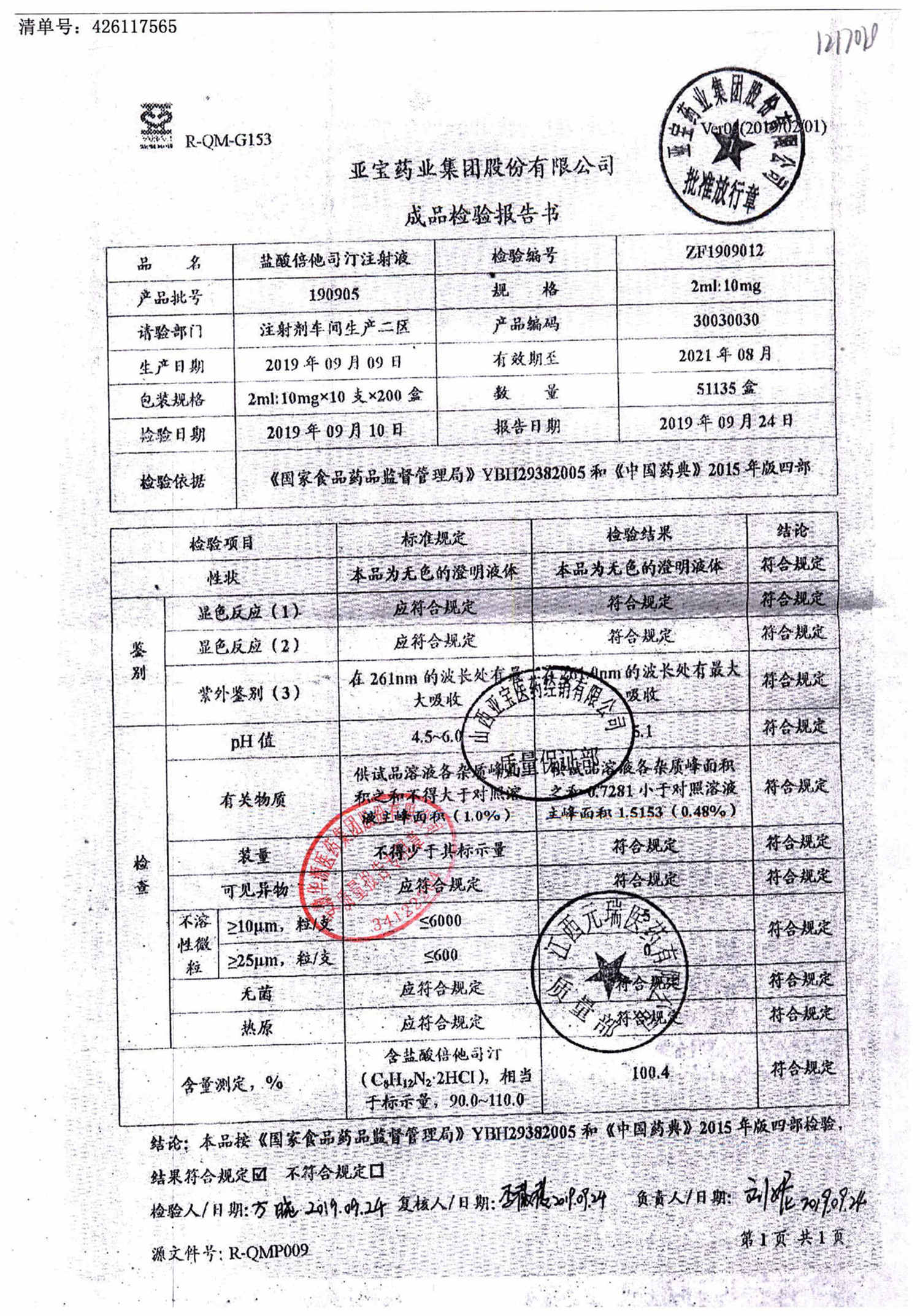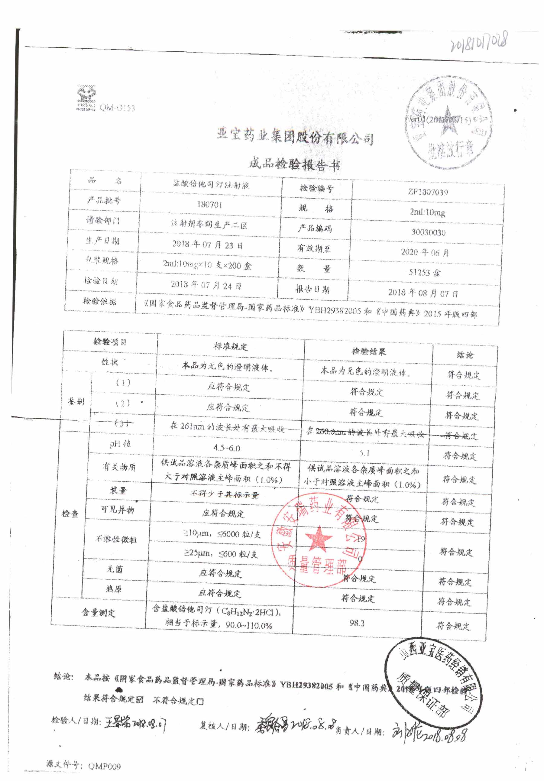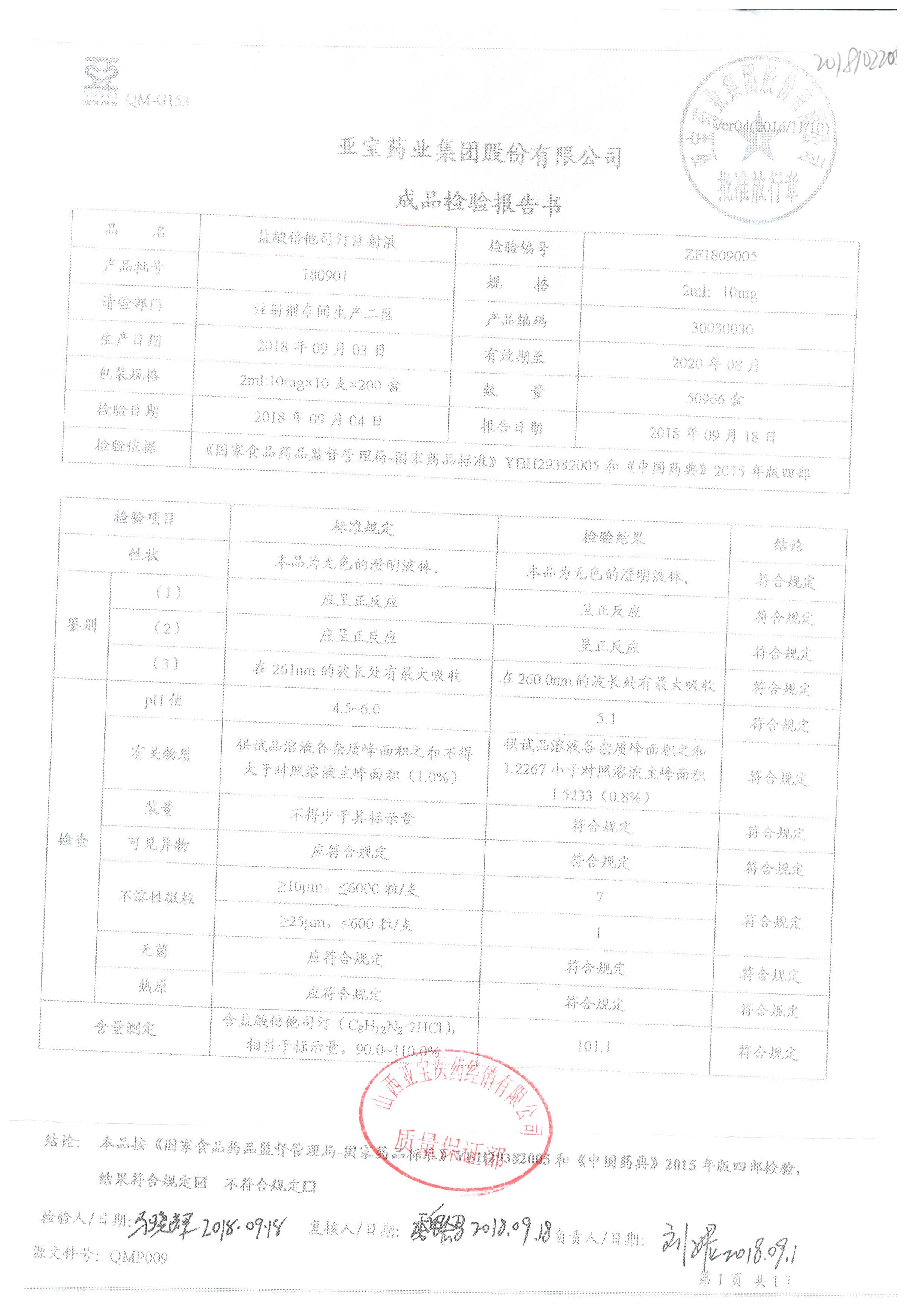 盐酸倍他司汀注射液 | 2ml:10,mg | 180904 | 查看详情 |