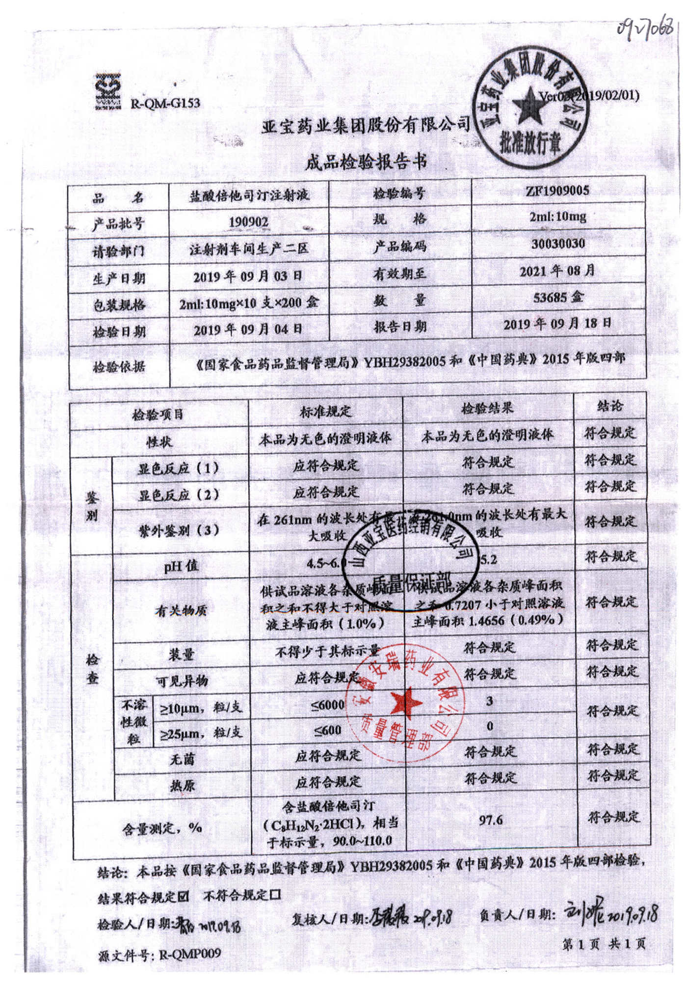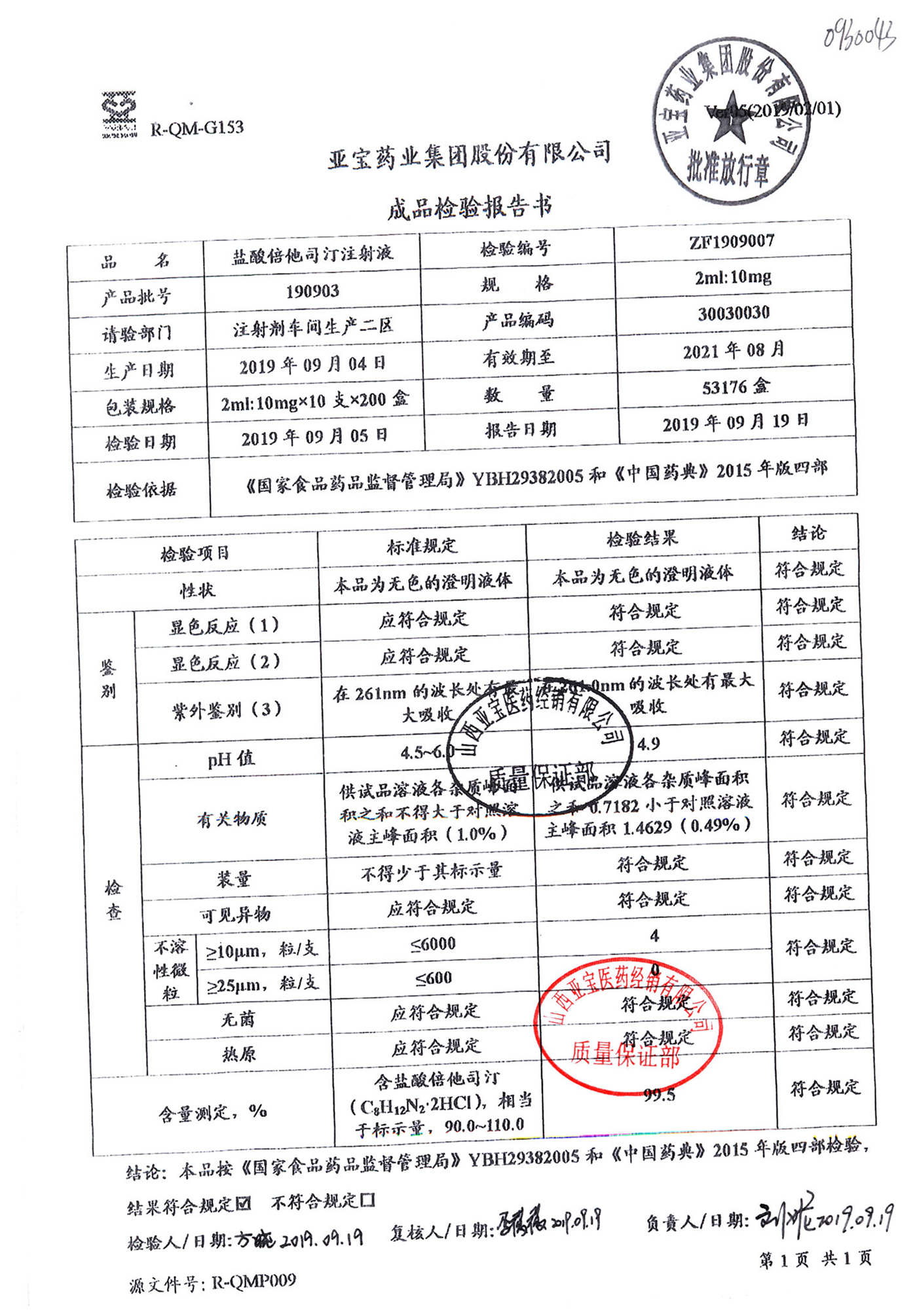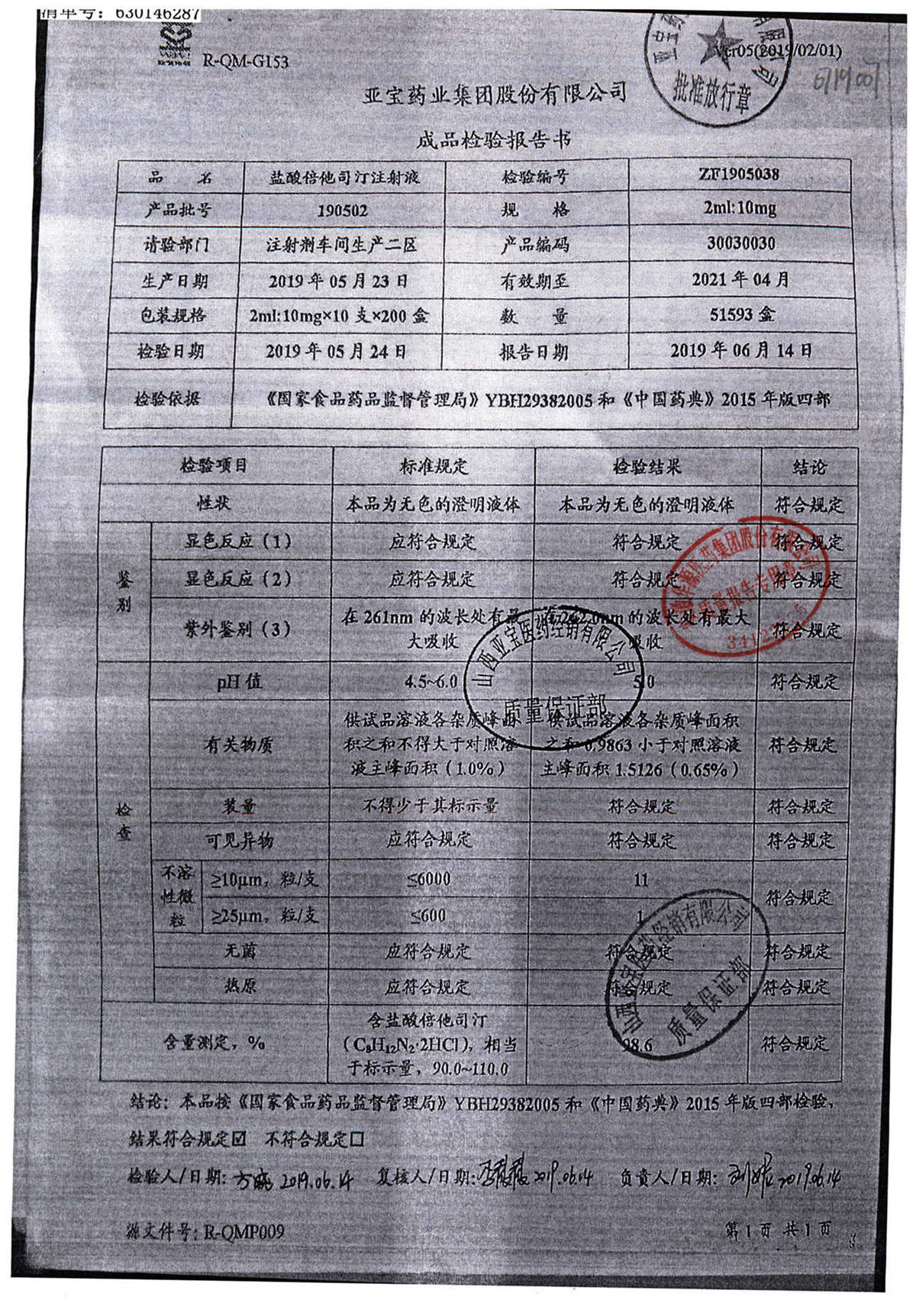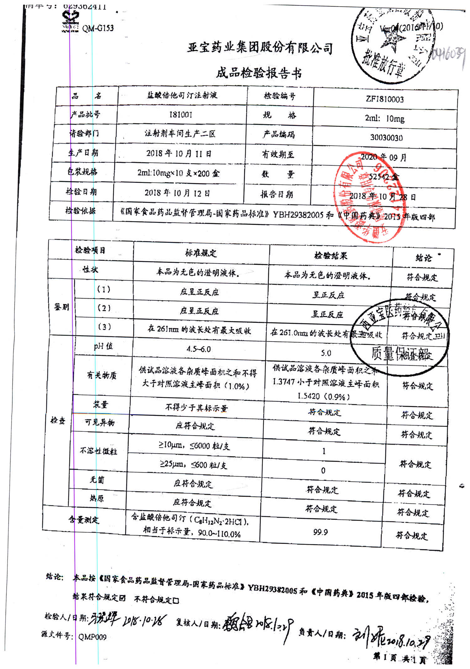 名称 | 规格 | 批号 | 药检报告 |
