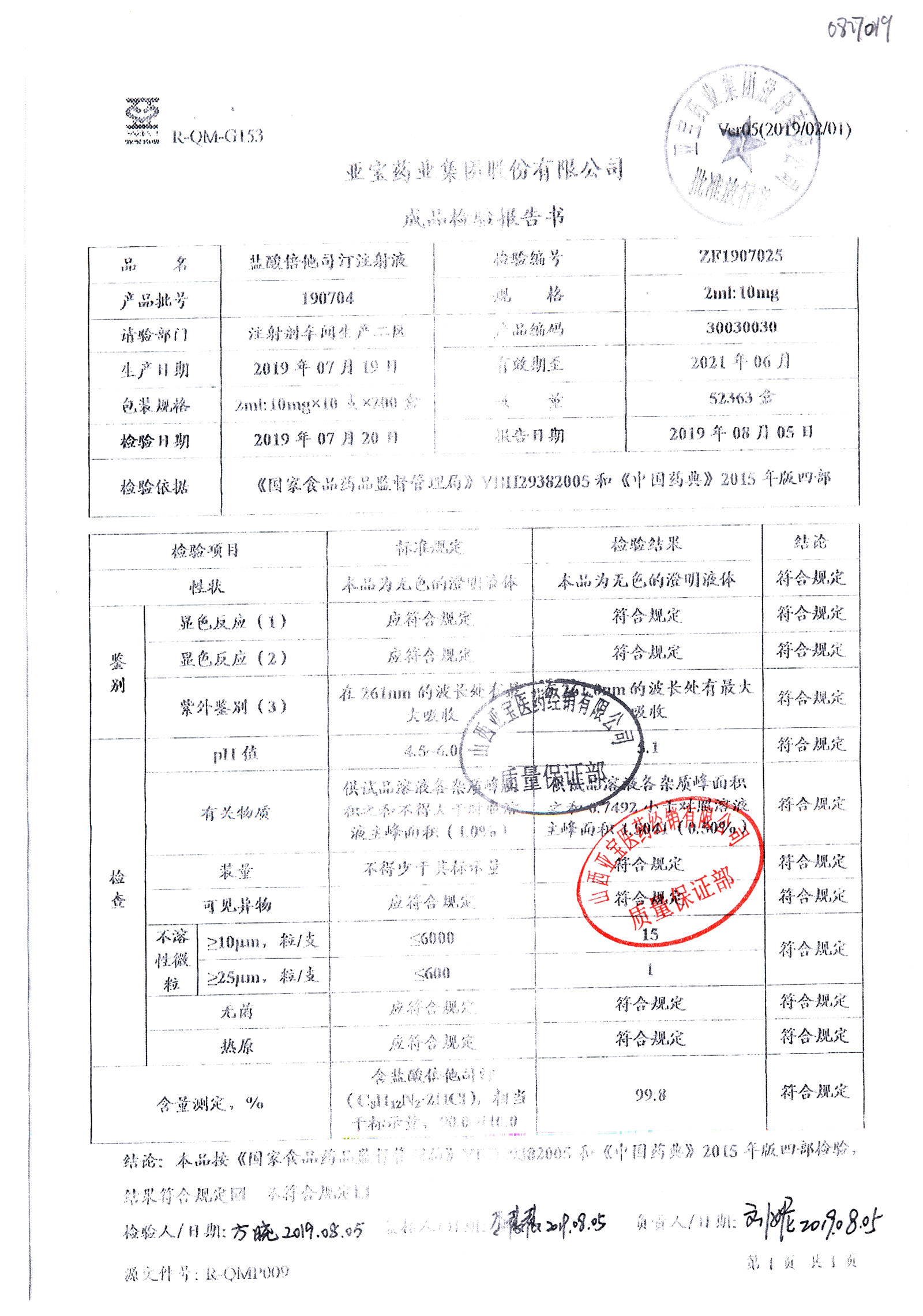 盐酸倍他司汀注射液 | 2ml:10,mg | 190905 | 查看详情 |