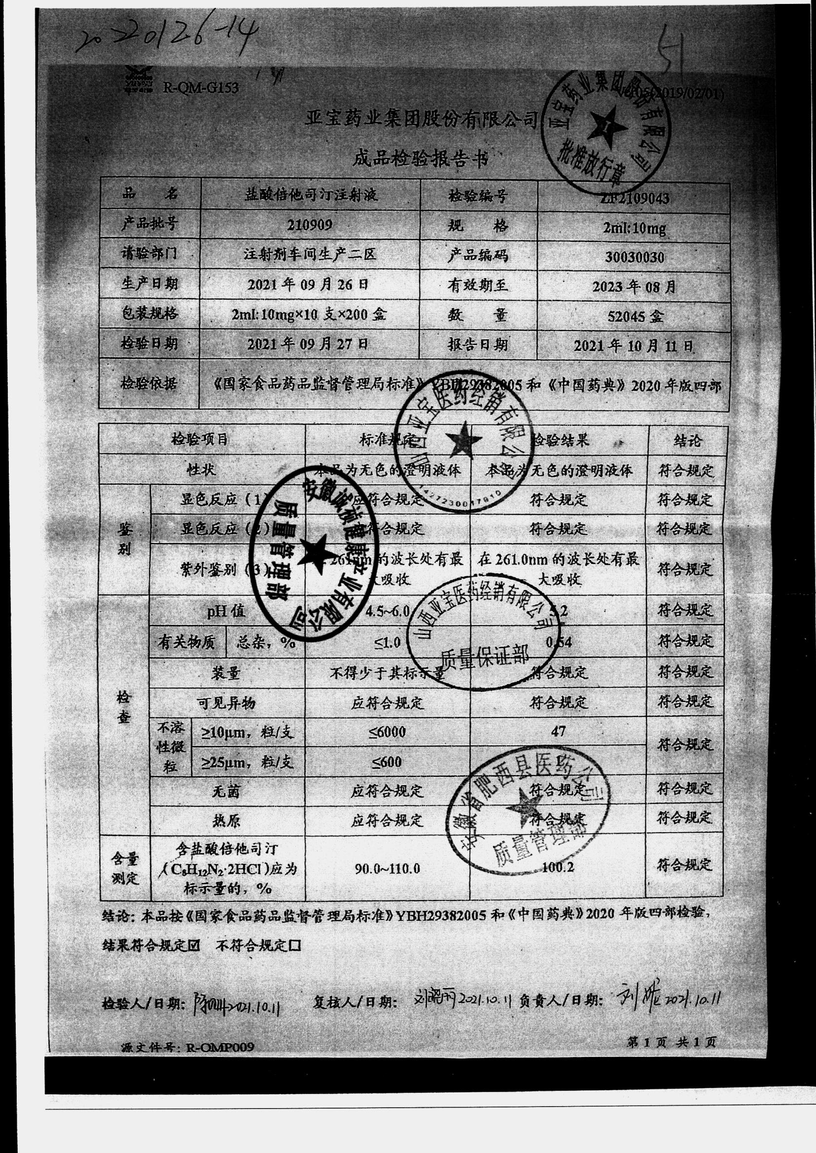 盐酸倍他司汀注射液 | 2ml:10,mg | 210909 | 查看详情 |
