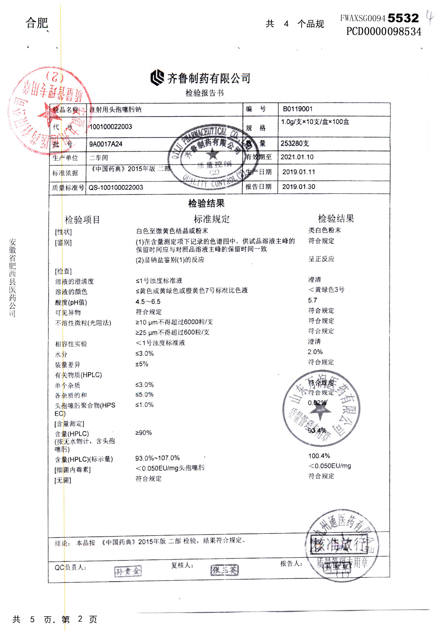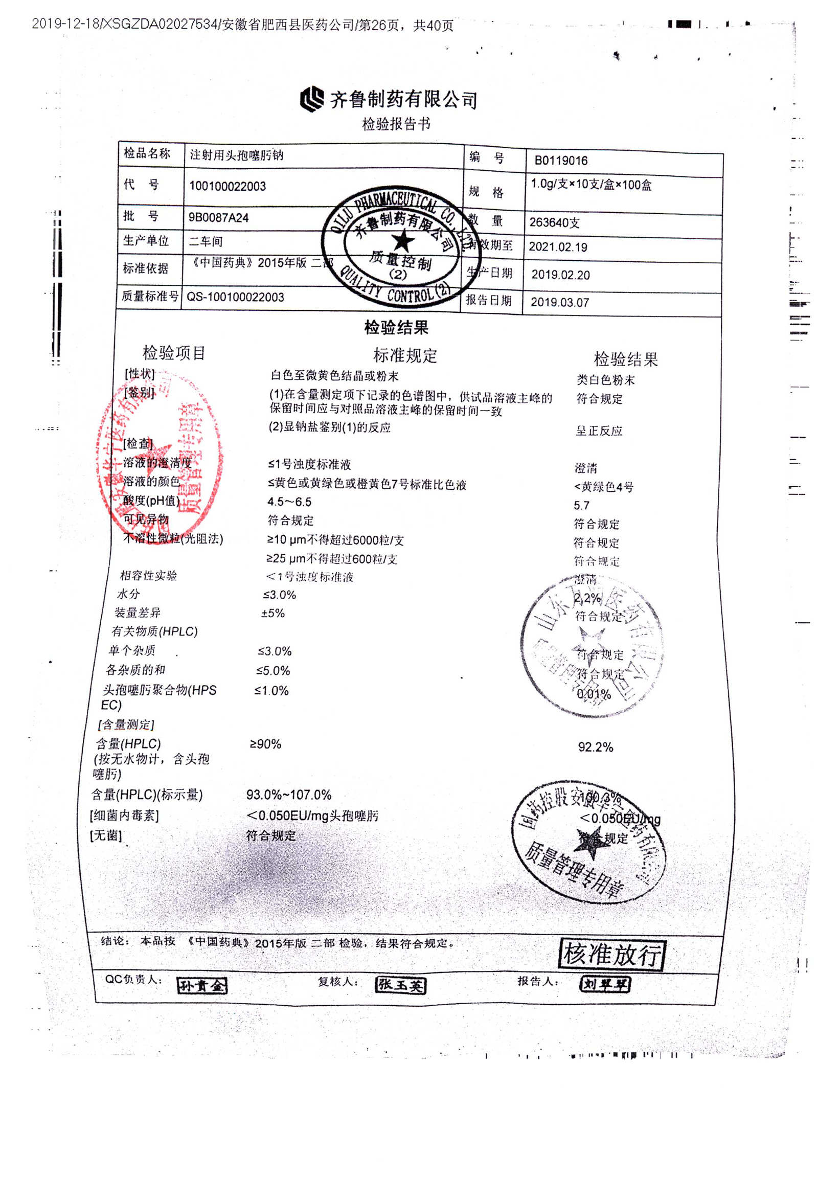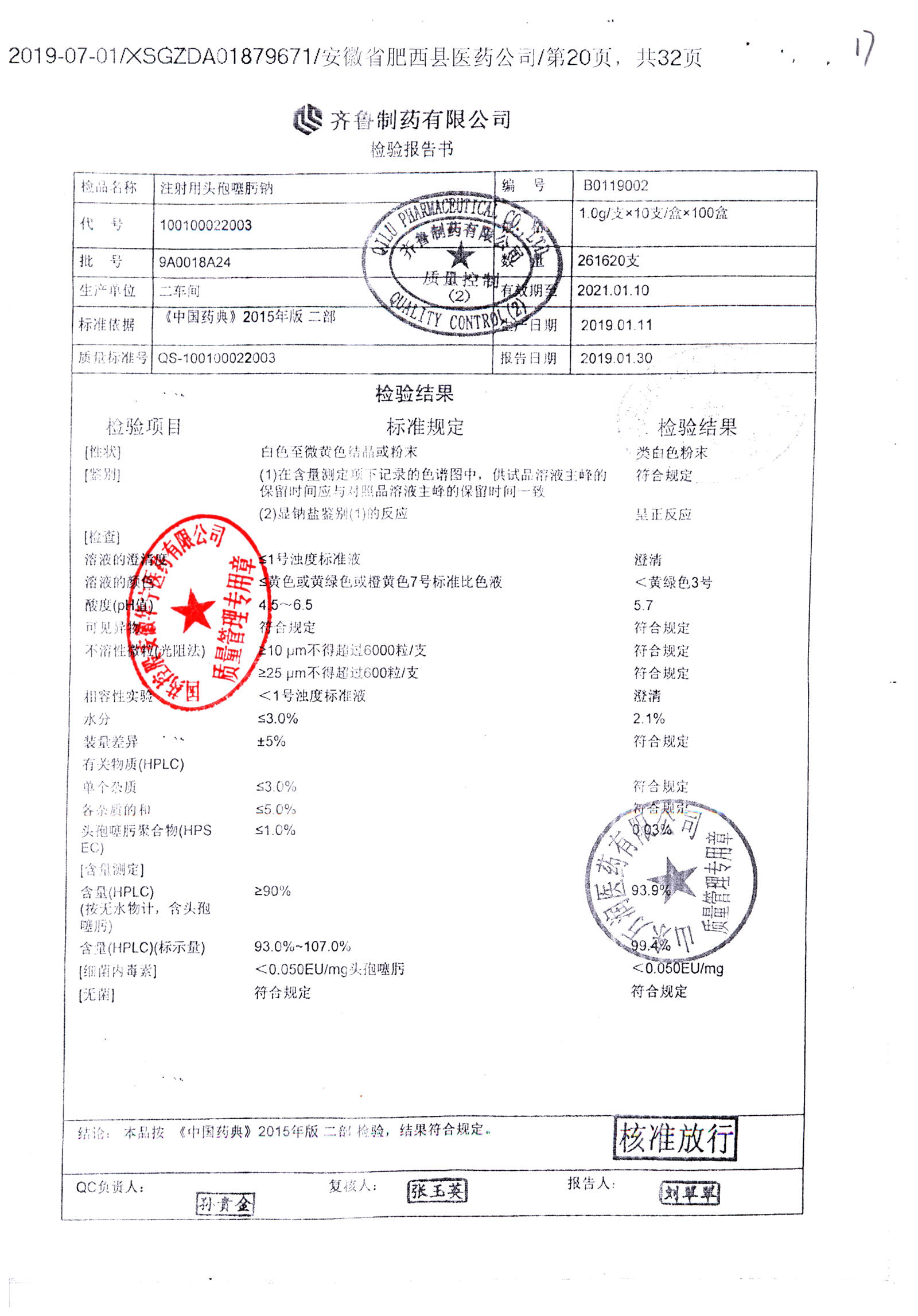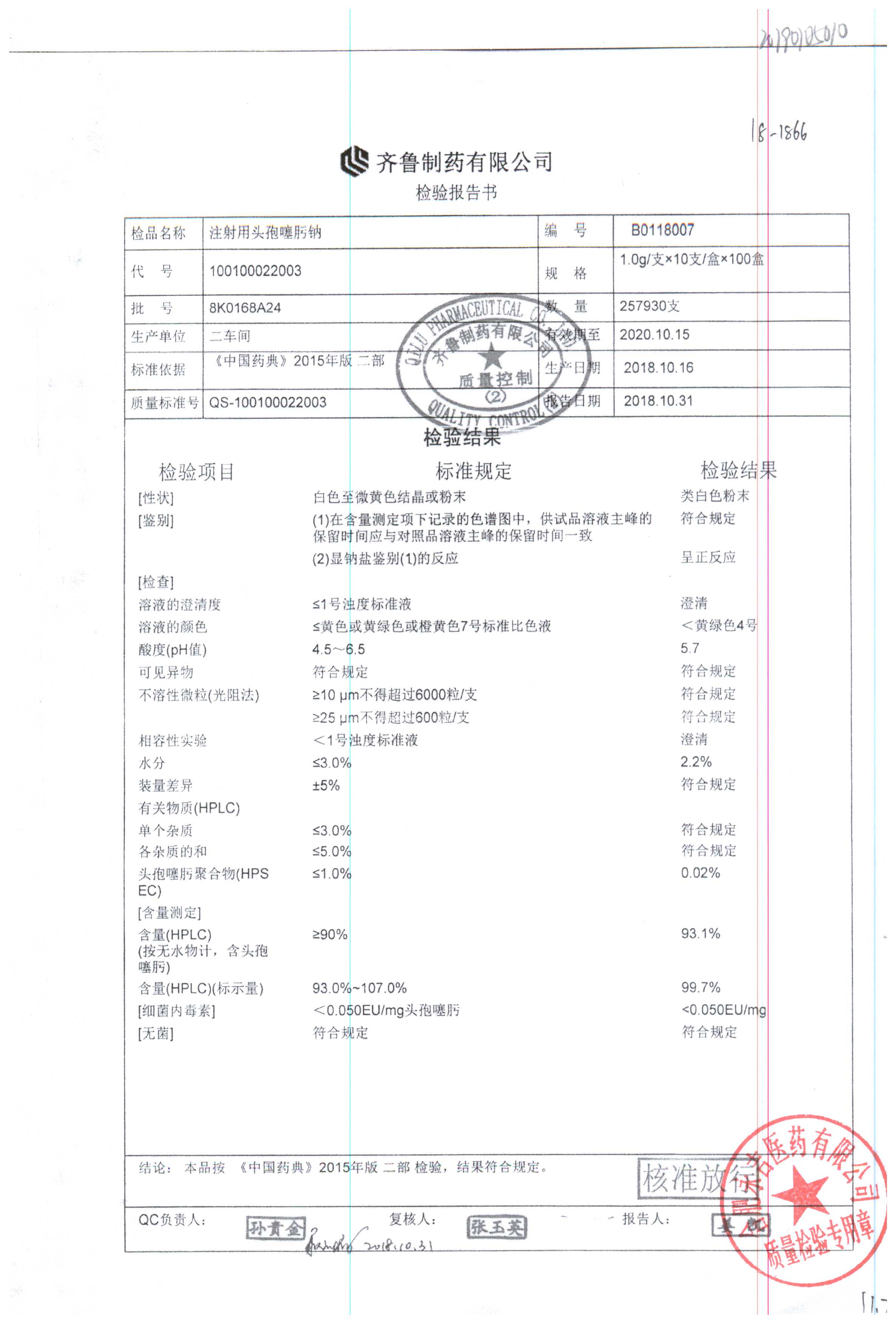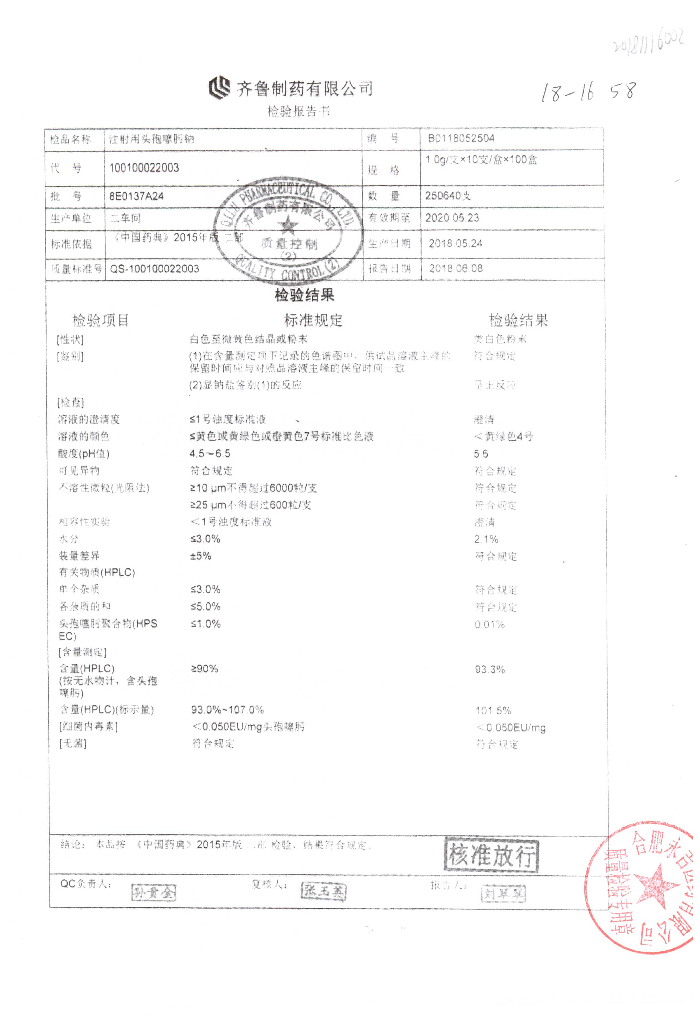 注射用头孢噻肟钠 | 1.0g | 9A0017A24 | 查看详情 |