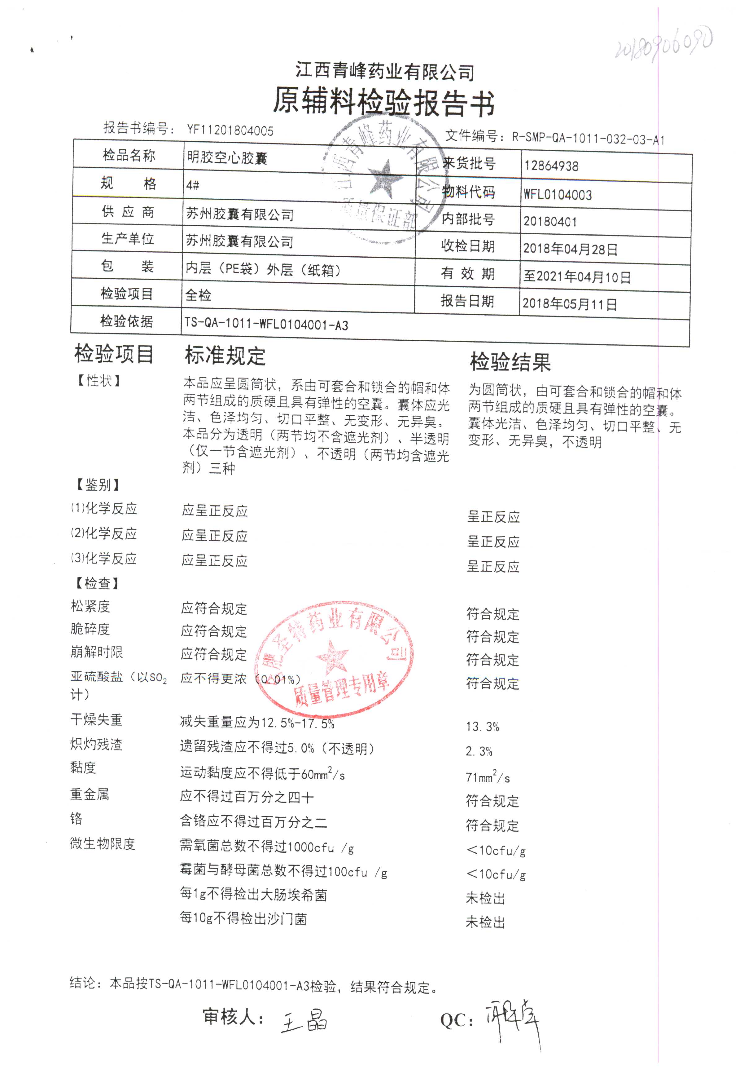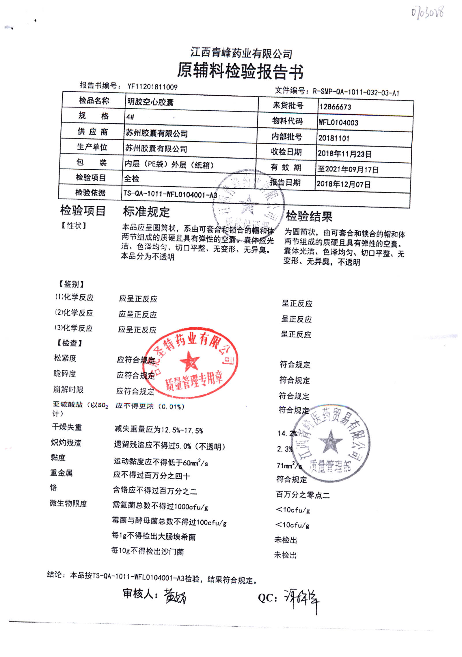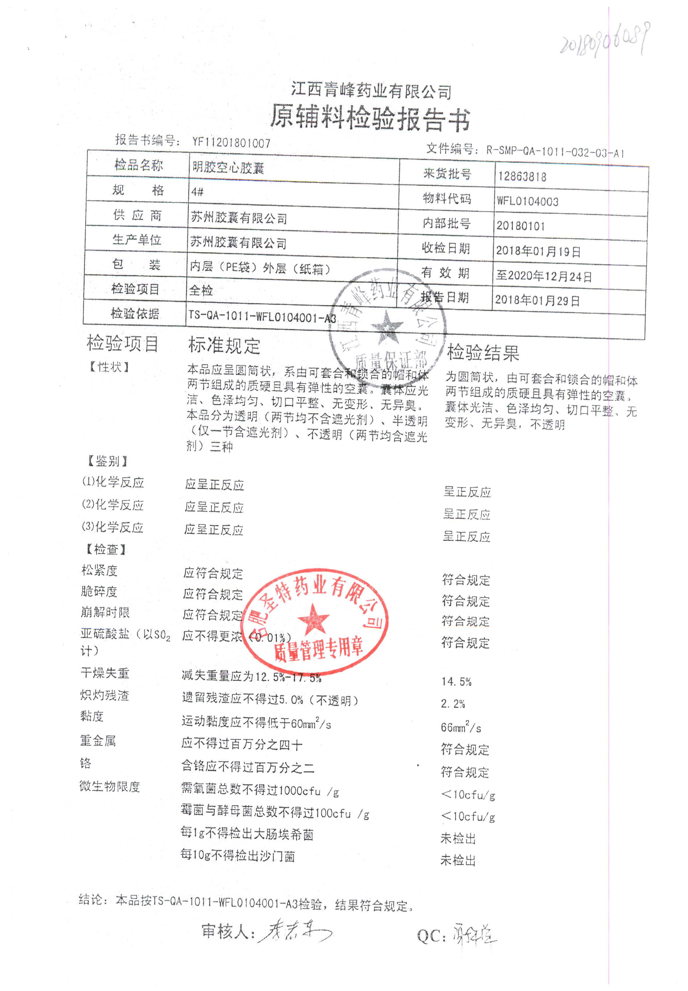 名称 | 规格 | 批号 | 药检报告 |