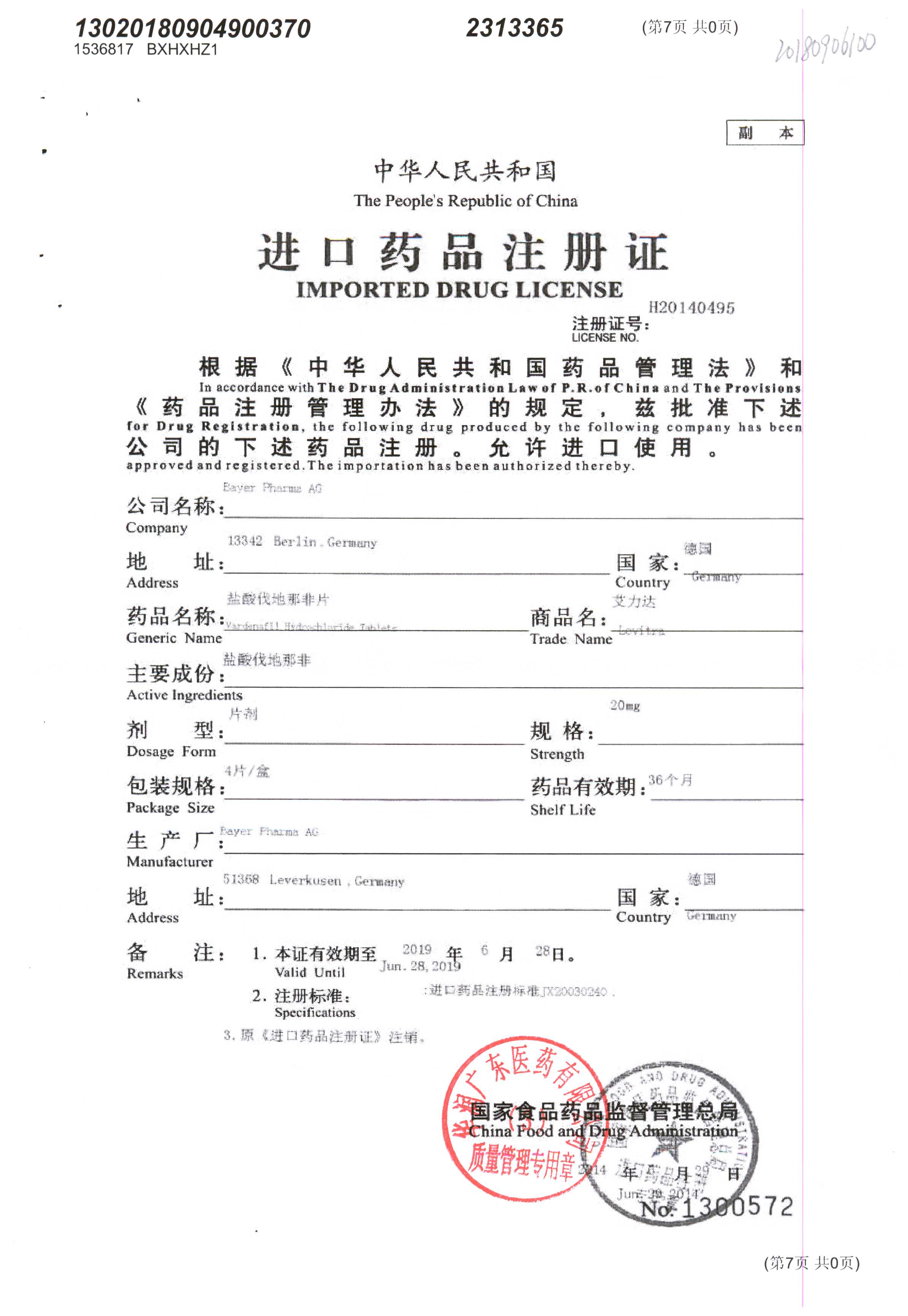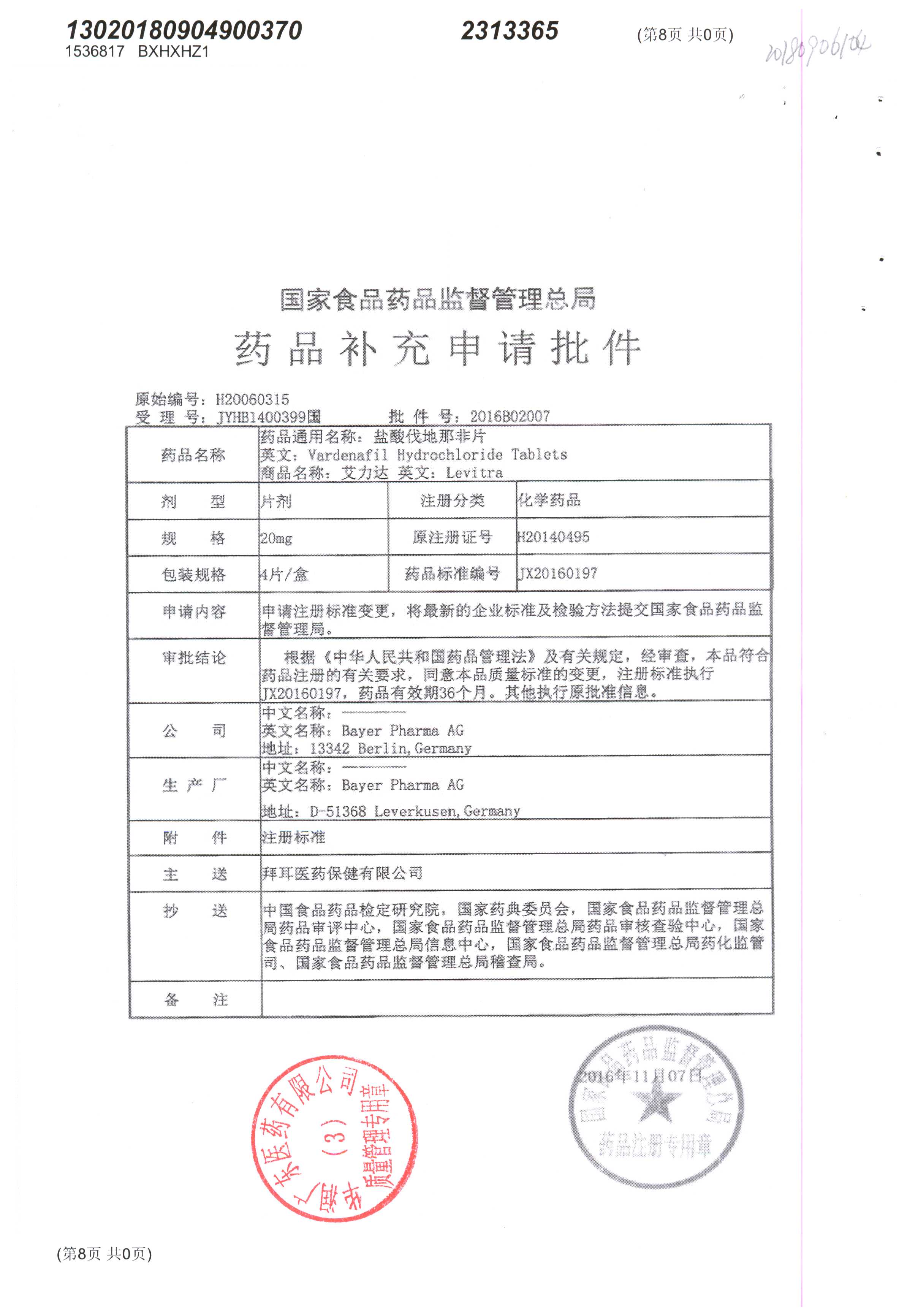 盐酸伐地那非片 | 20mg*4片 | BXHXHZ1(3/11) | 查看详情 |