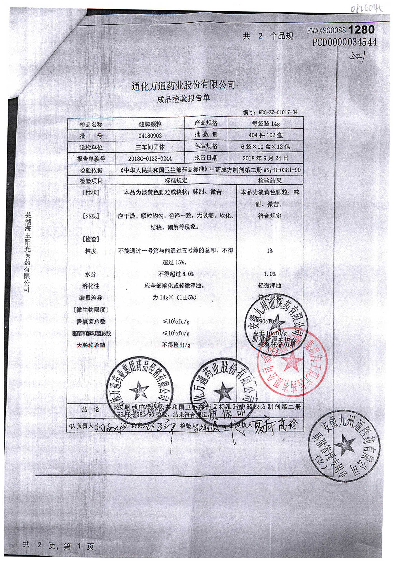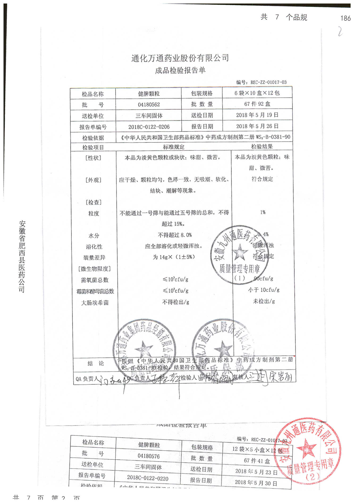 药检报告