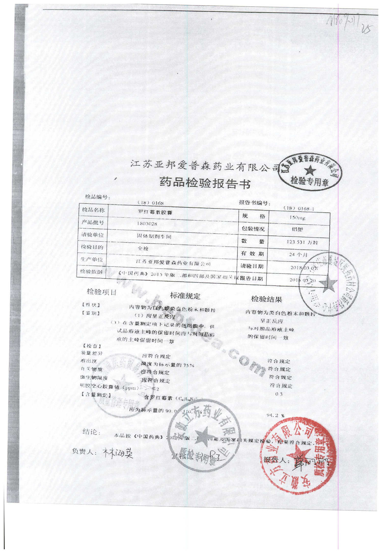 罗红霉素胶囊 | 150mg | 1803028 | 查看详情 |