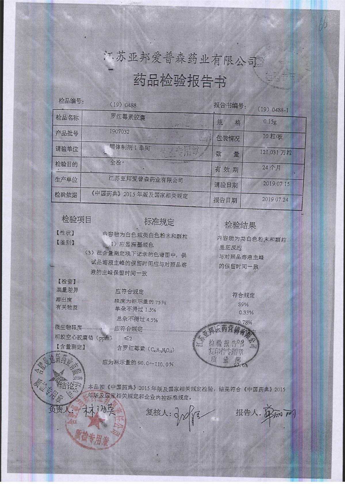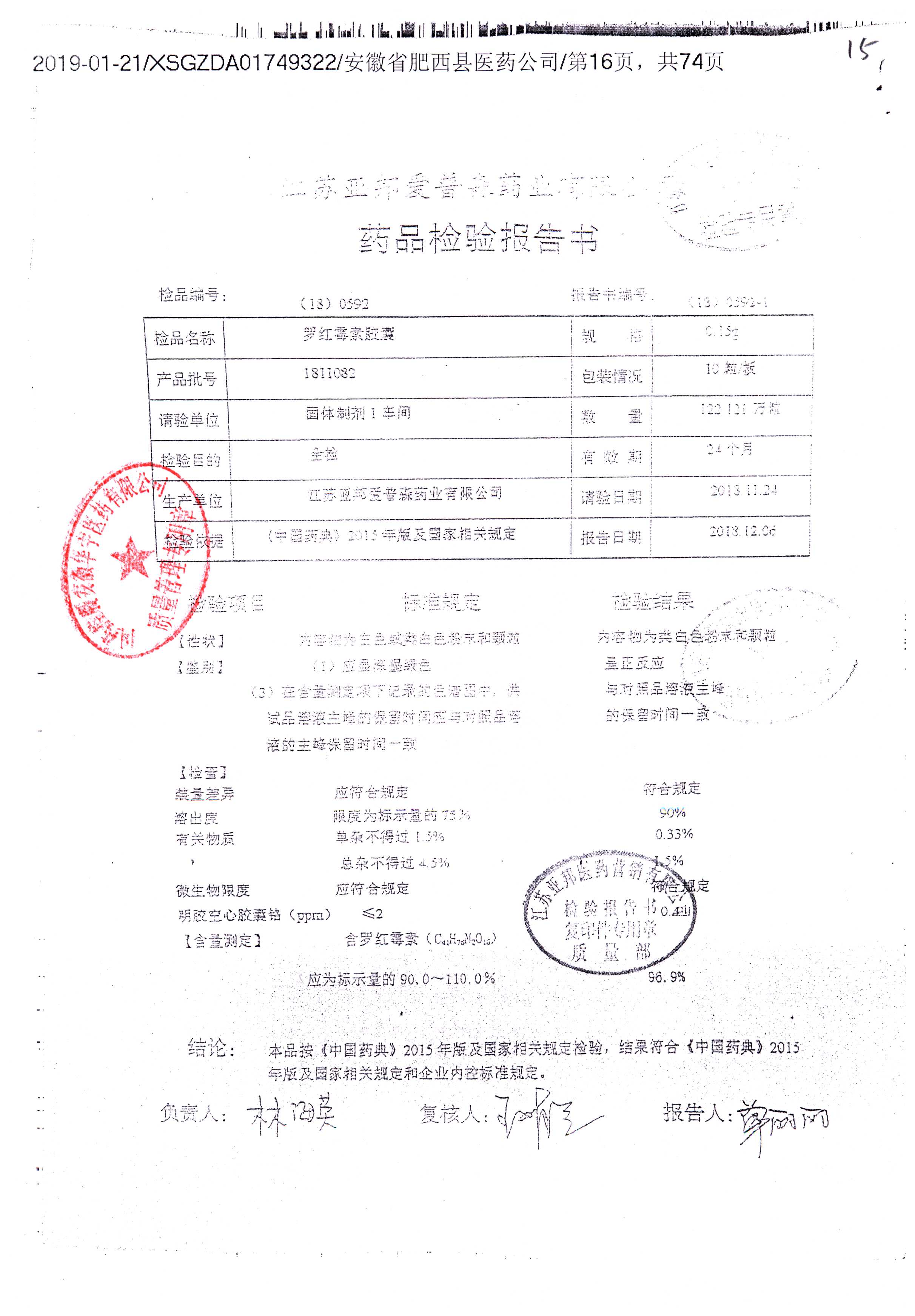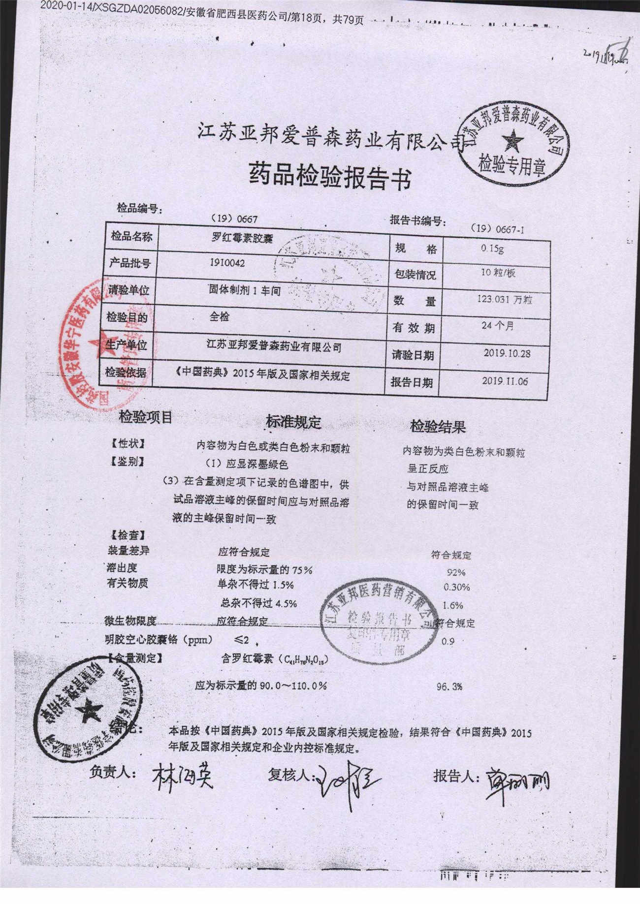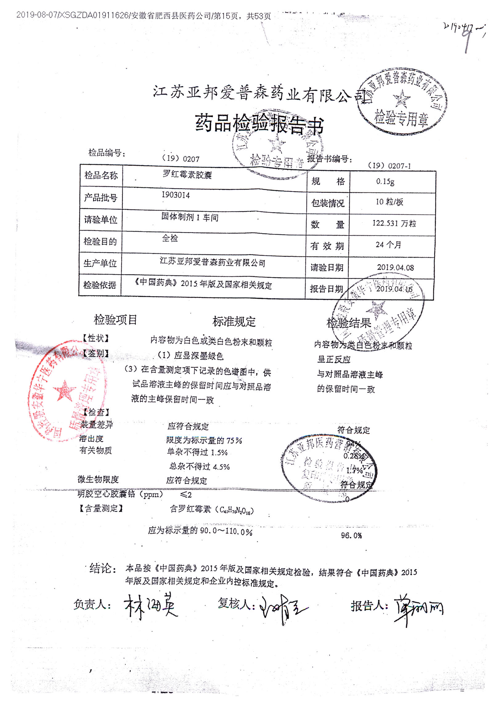 罗红霉素胶囊 | 150mg | 1907032 | 查看详情 |