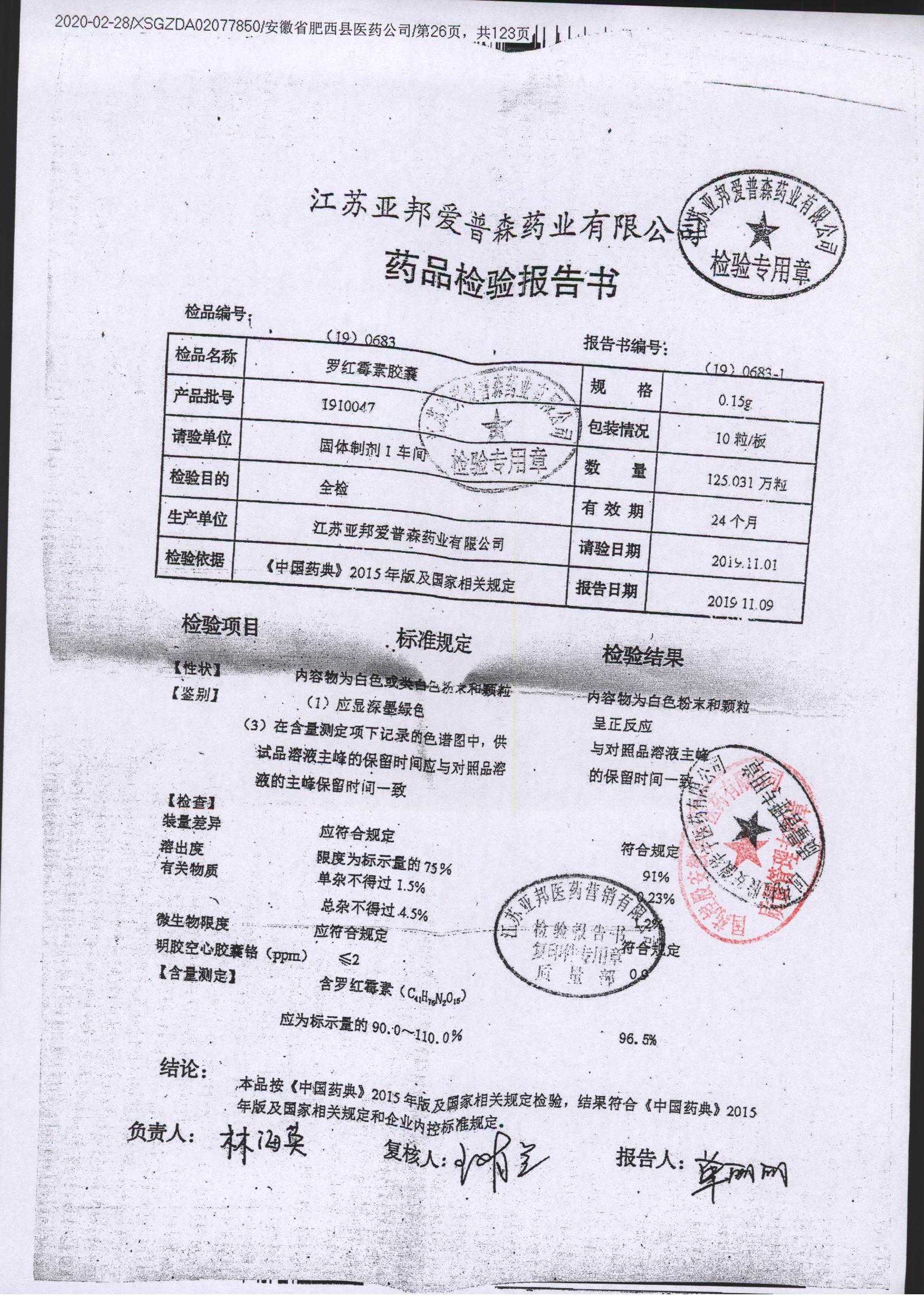 罗红霉素胶囊 | 150mg | 1910047 | 查看详情 |