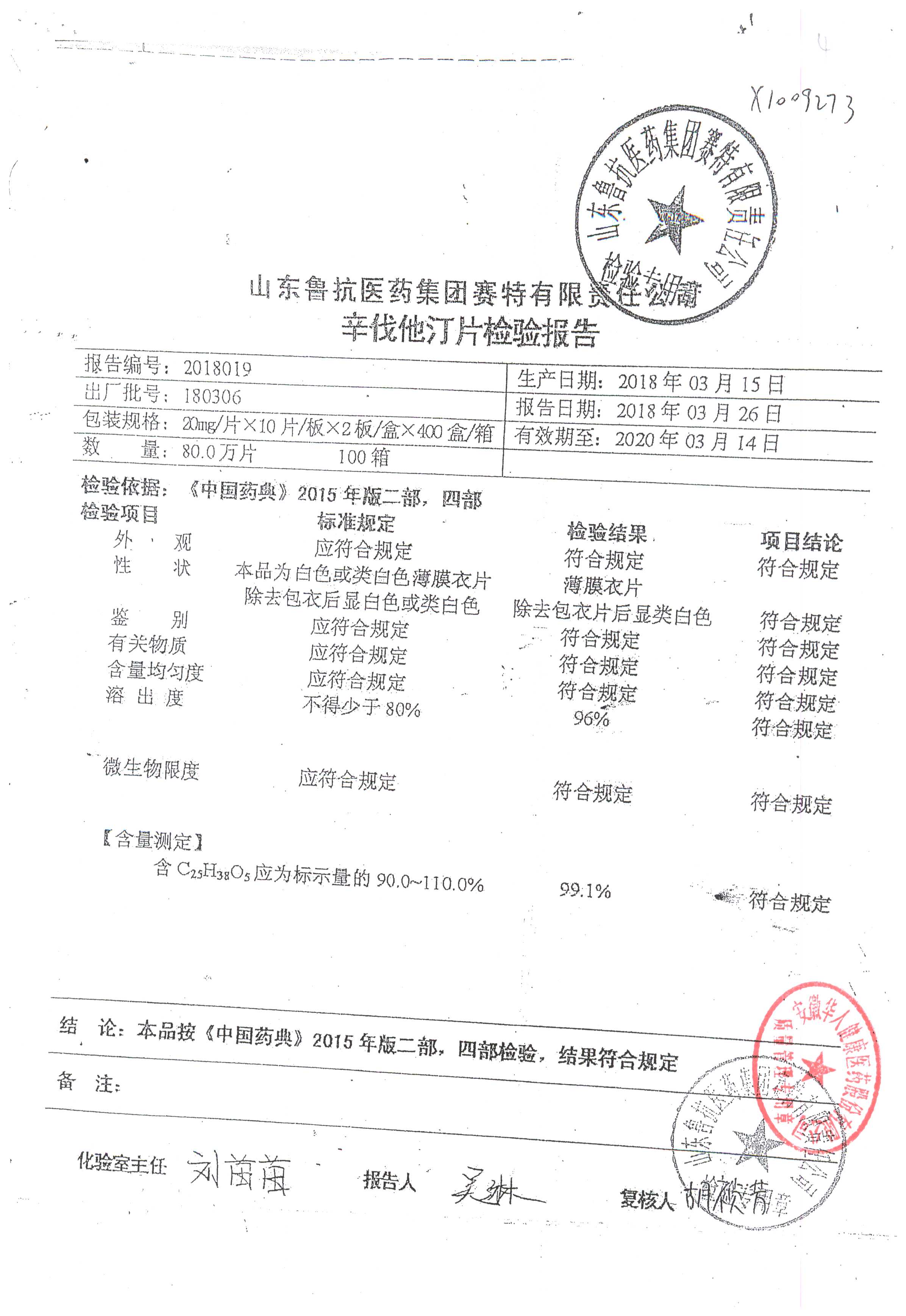 辛伐他汀片 | 20mg*20片 | 180306 | 查看详情 |