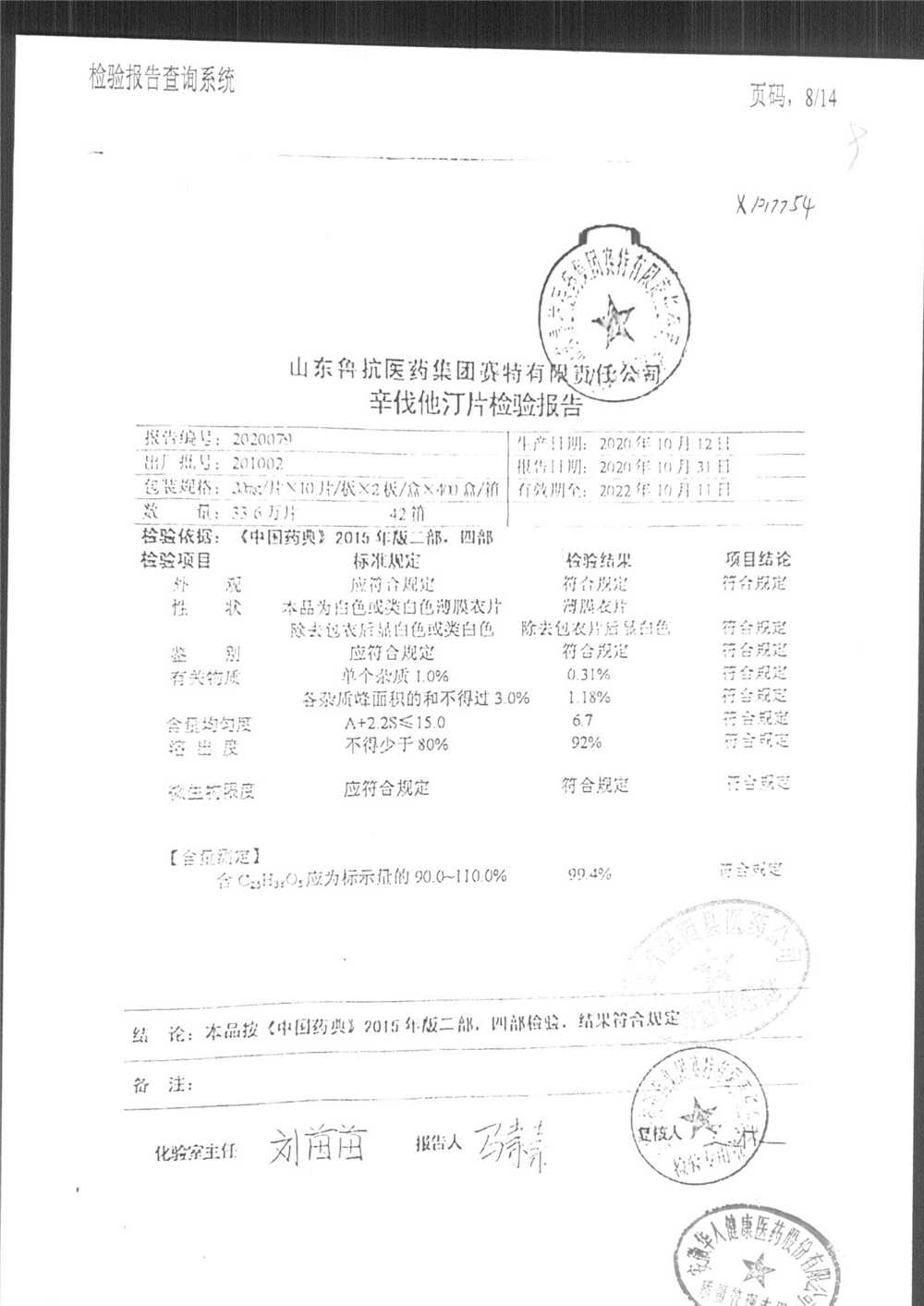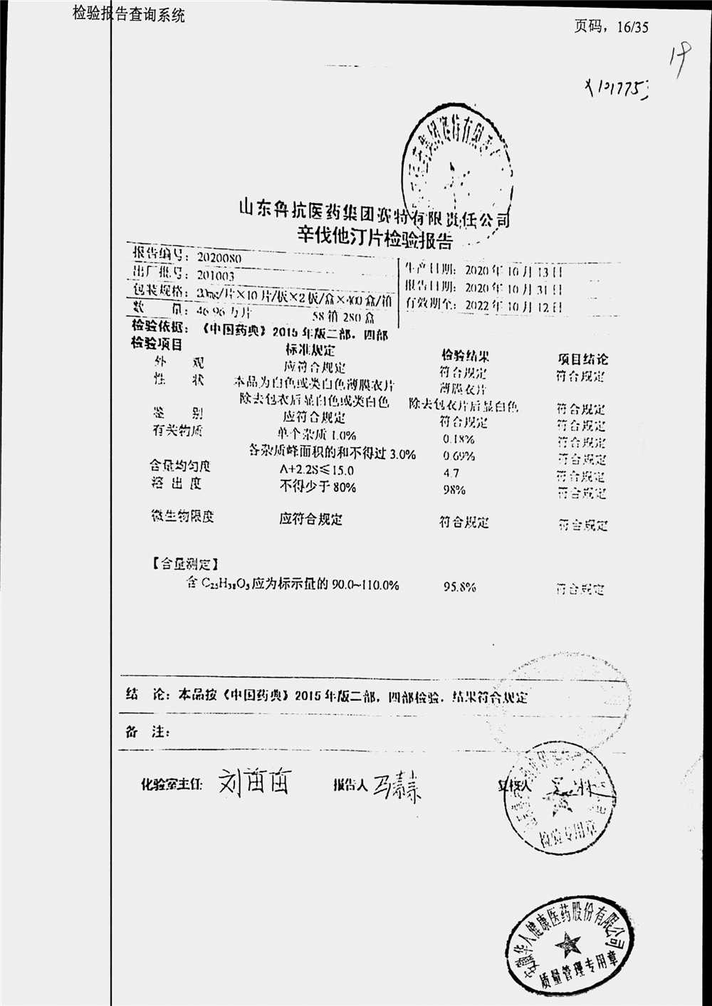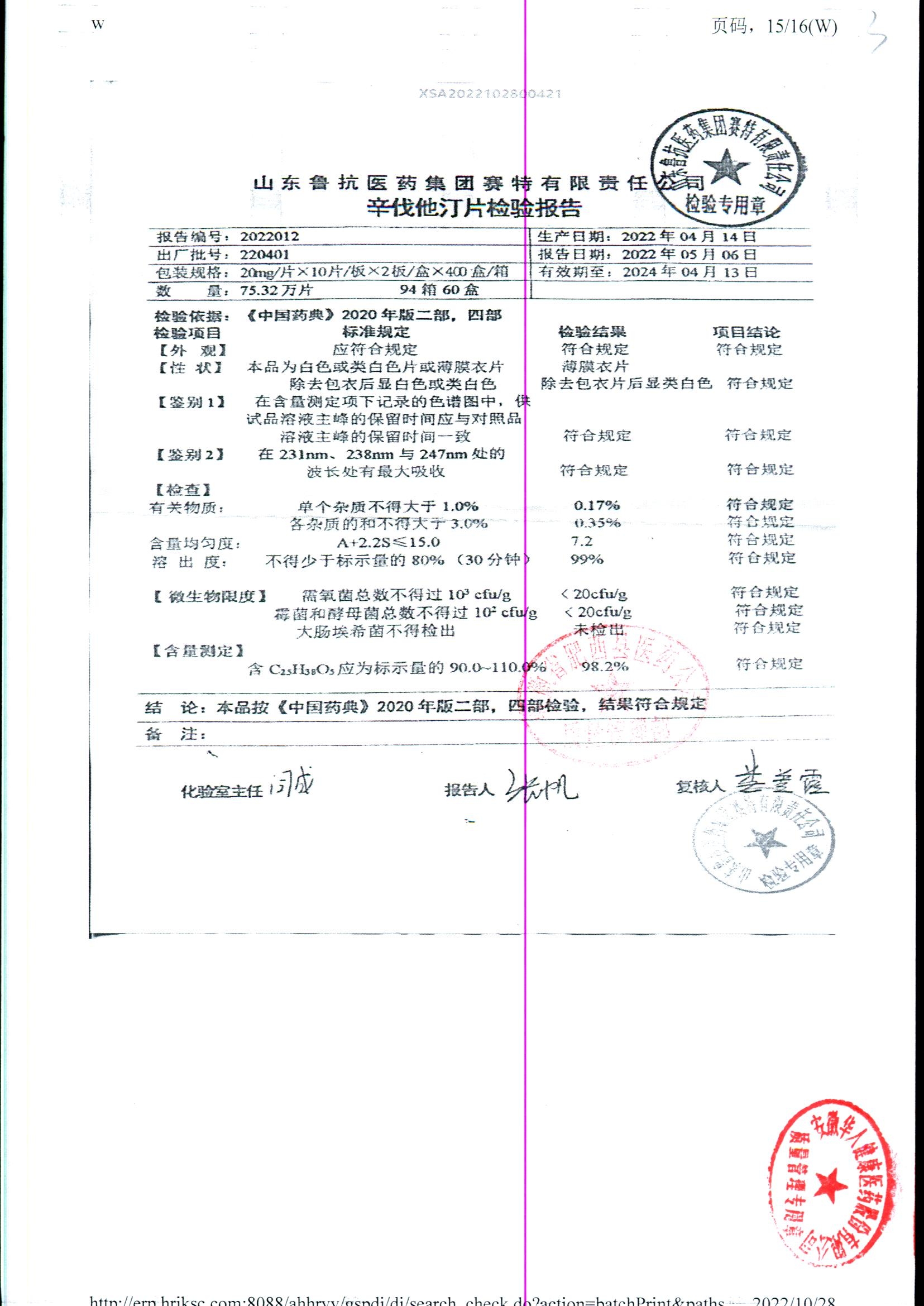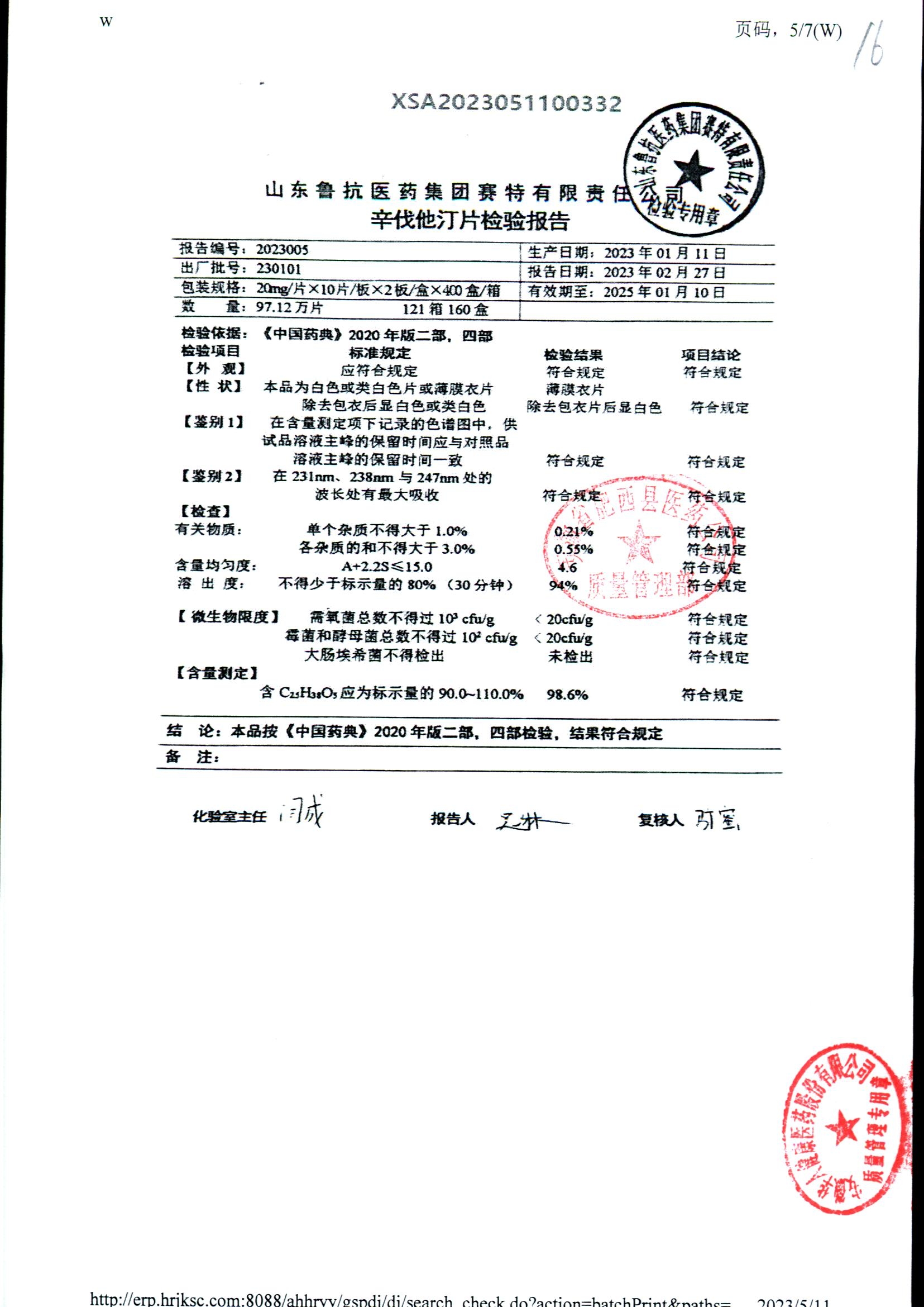 辛伐他汀片 | 20mg*20片 | 210801 | 查看详情 |
