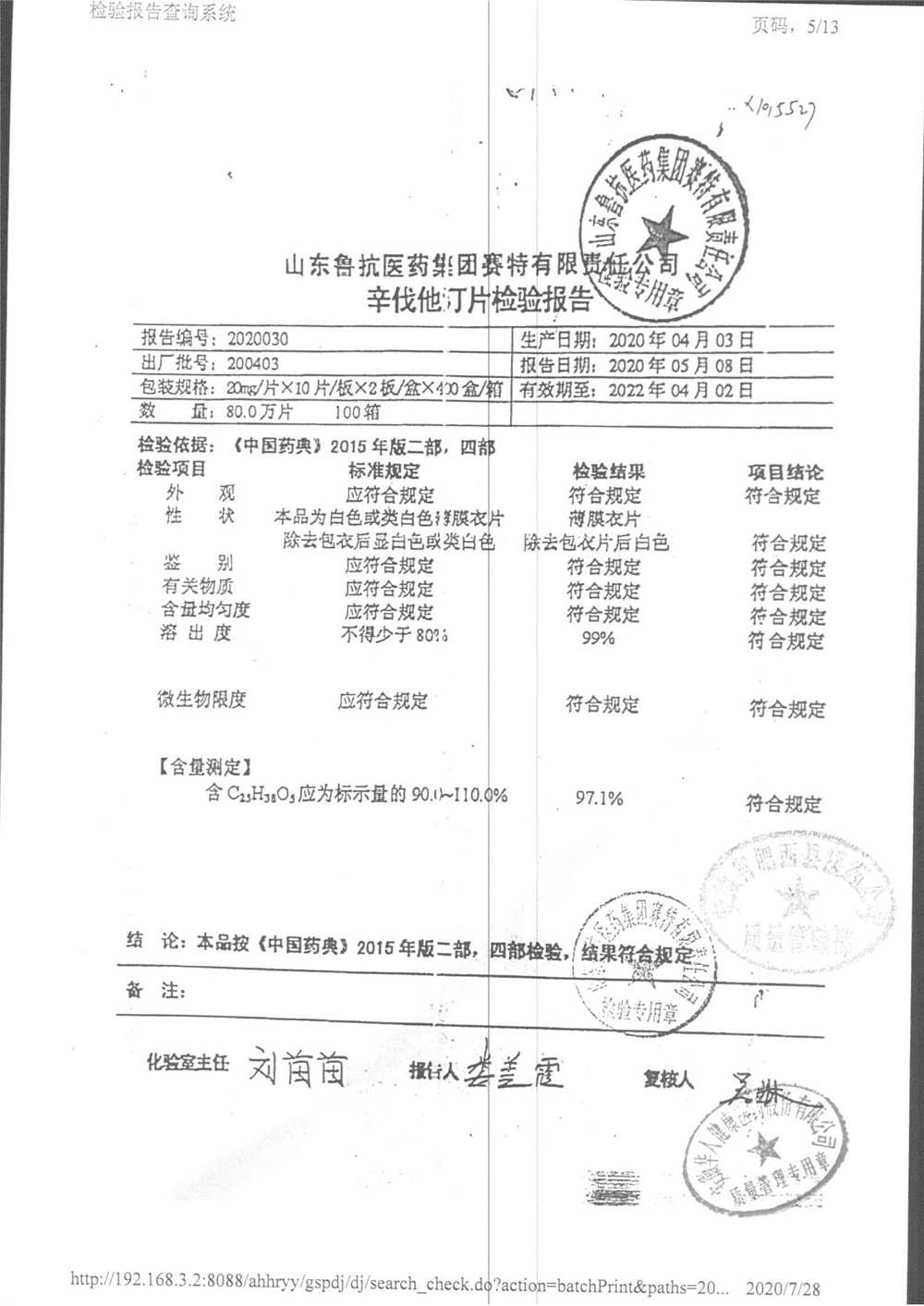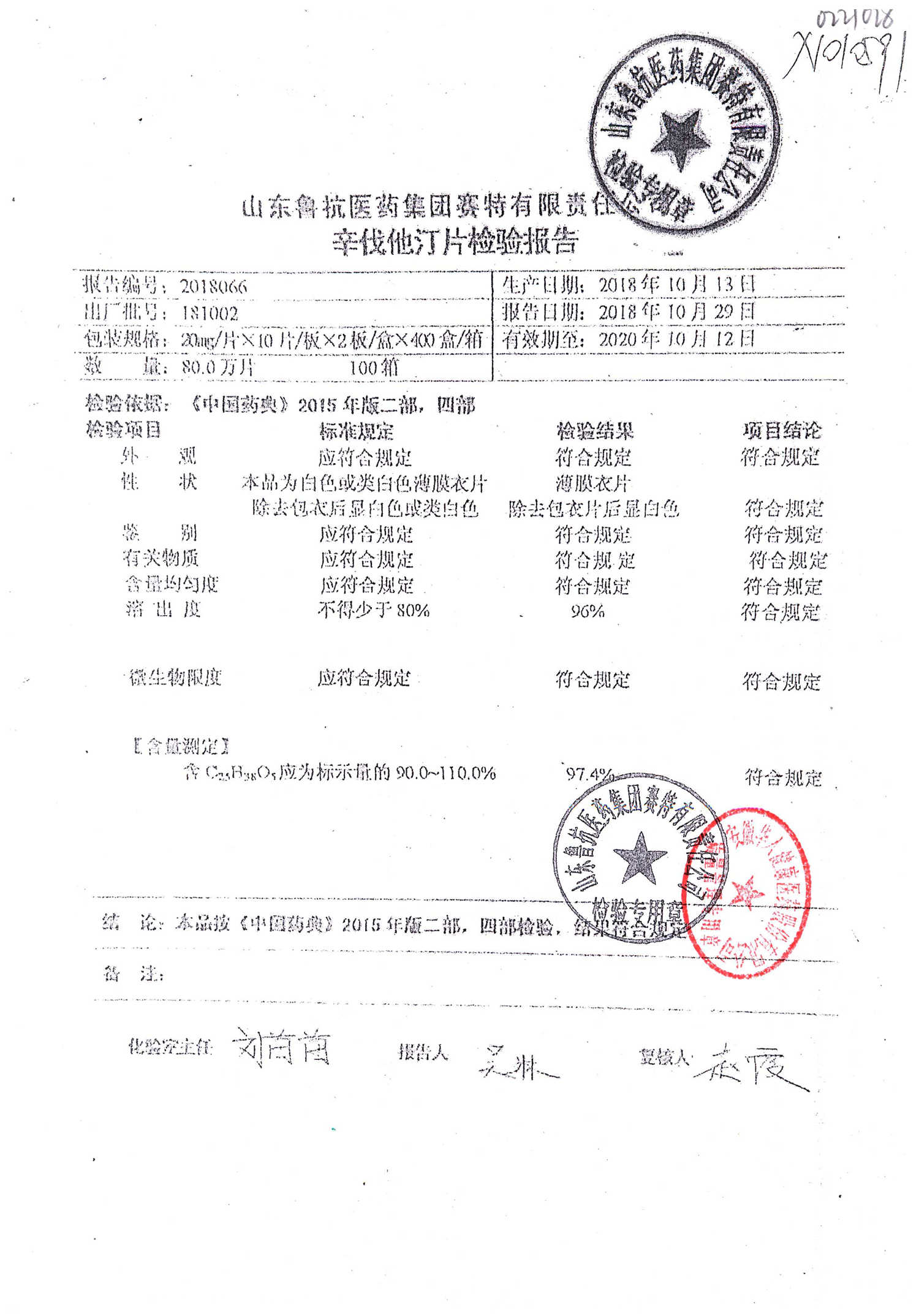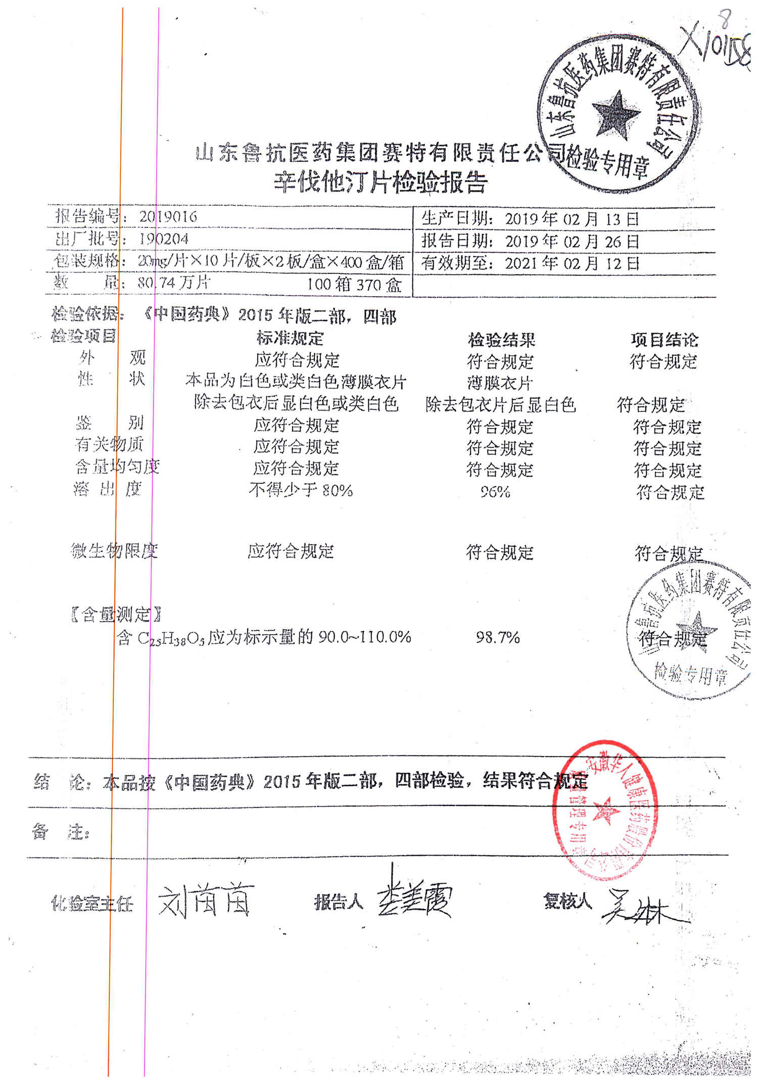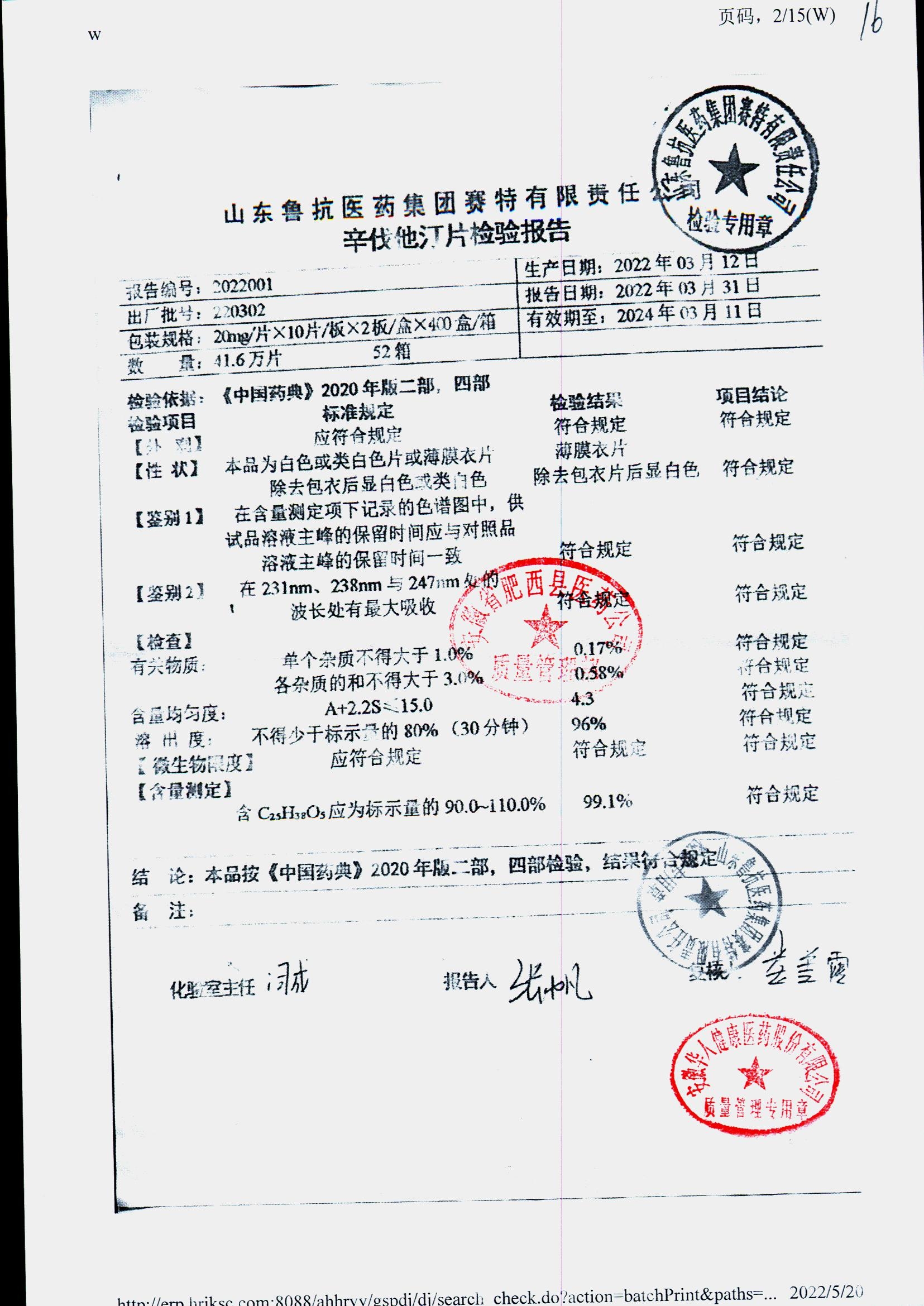 辛伐他汀片 | 20mg*20片 | 210801 | 查看详情 |