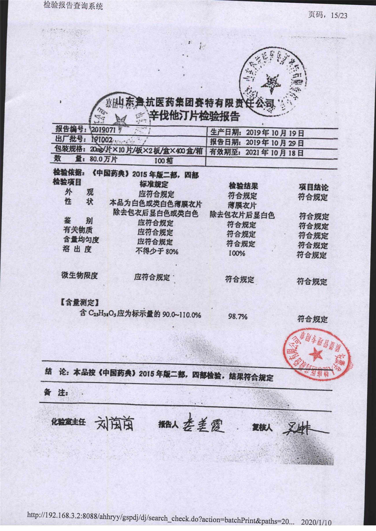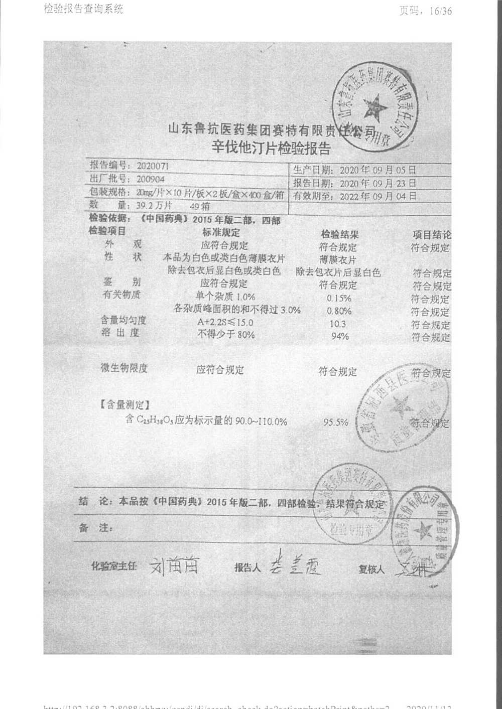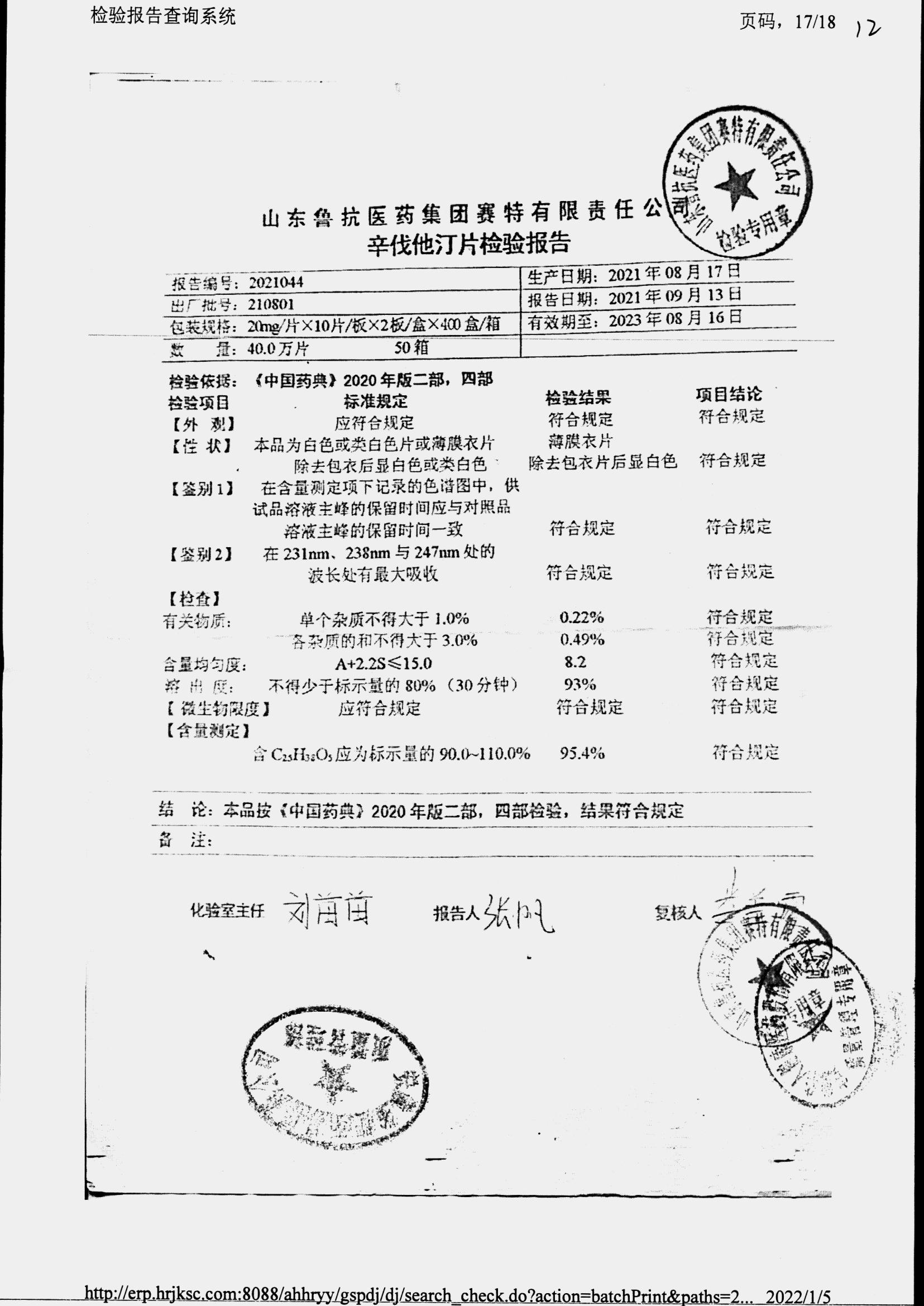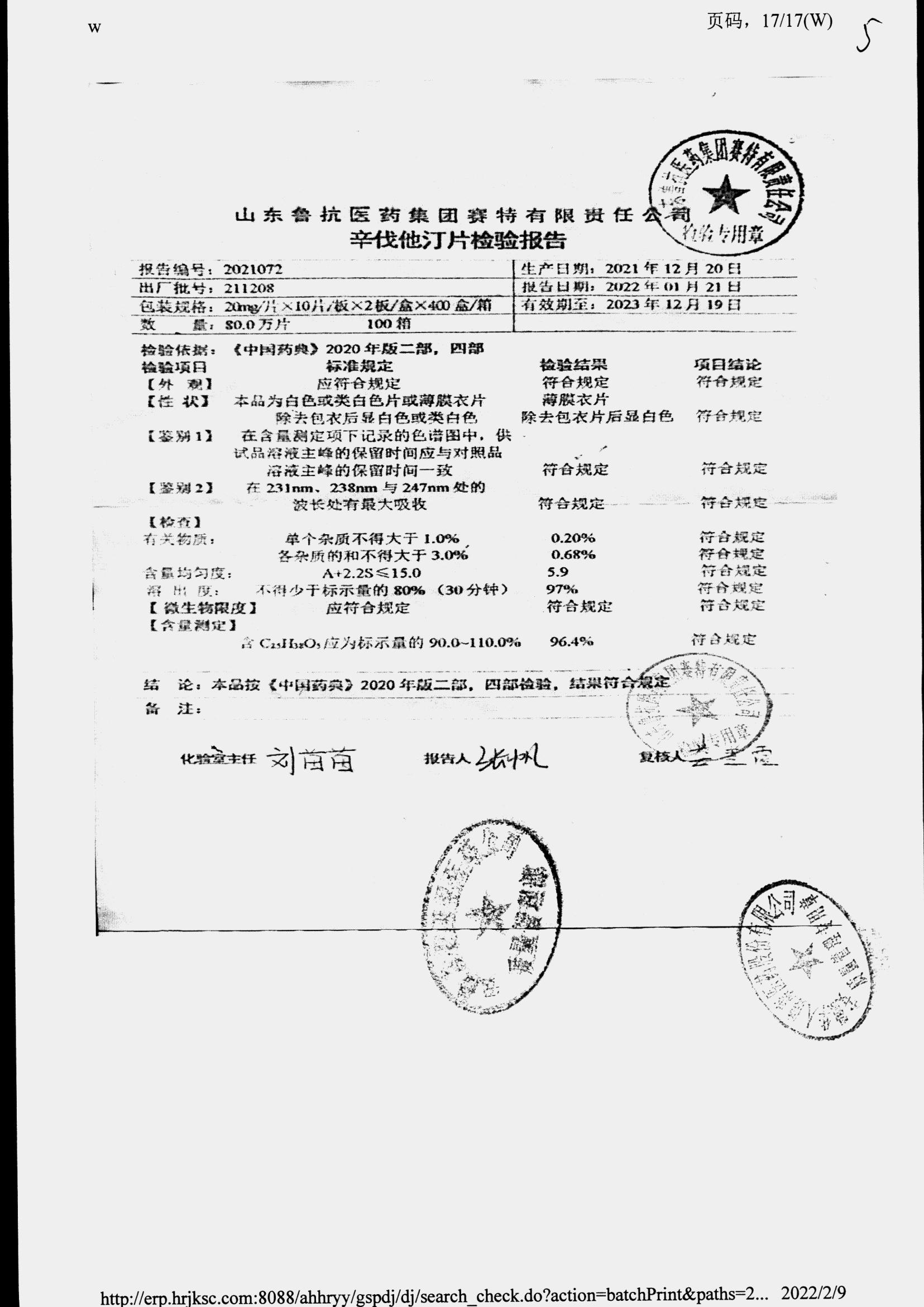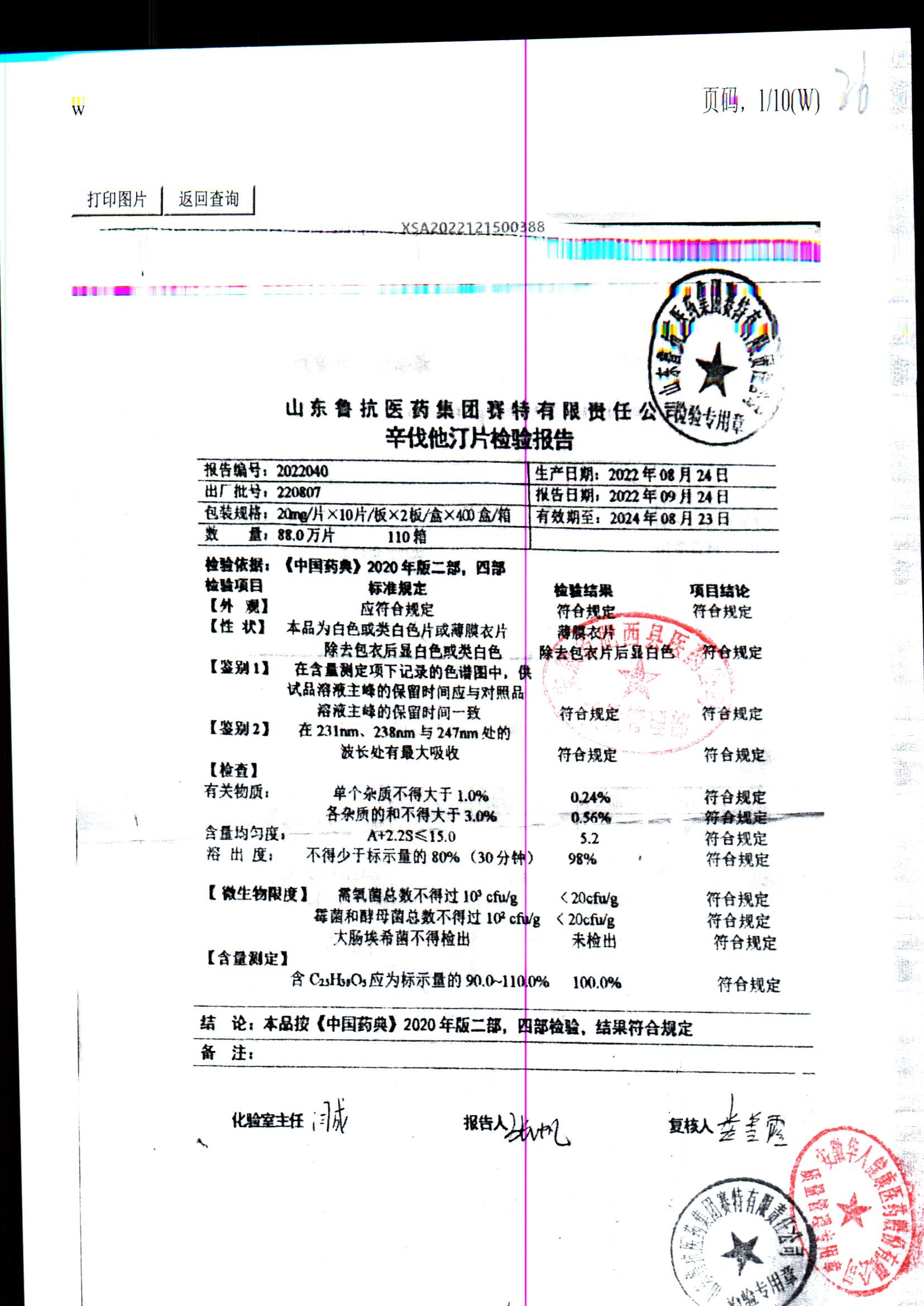 辛伐他汀片 | 20mg*20片 | 211208 | 查看详情 |