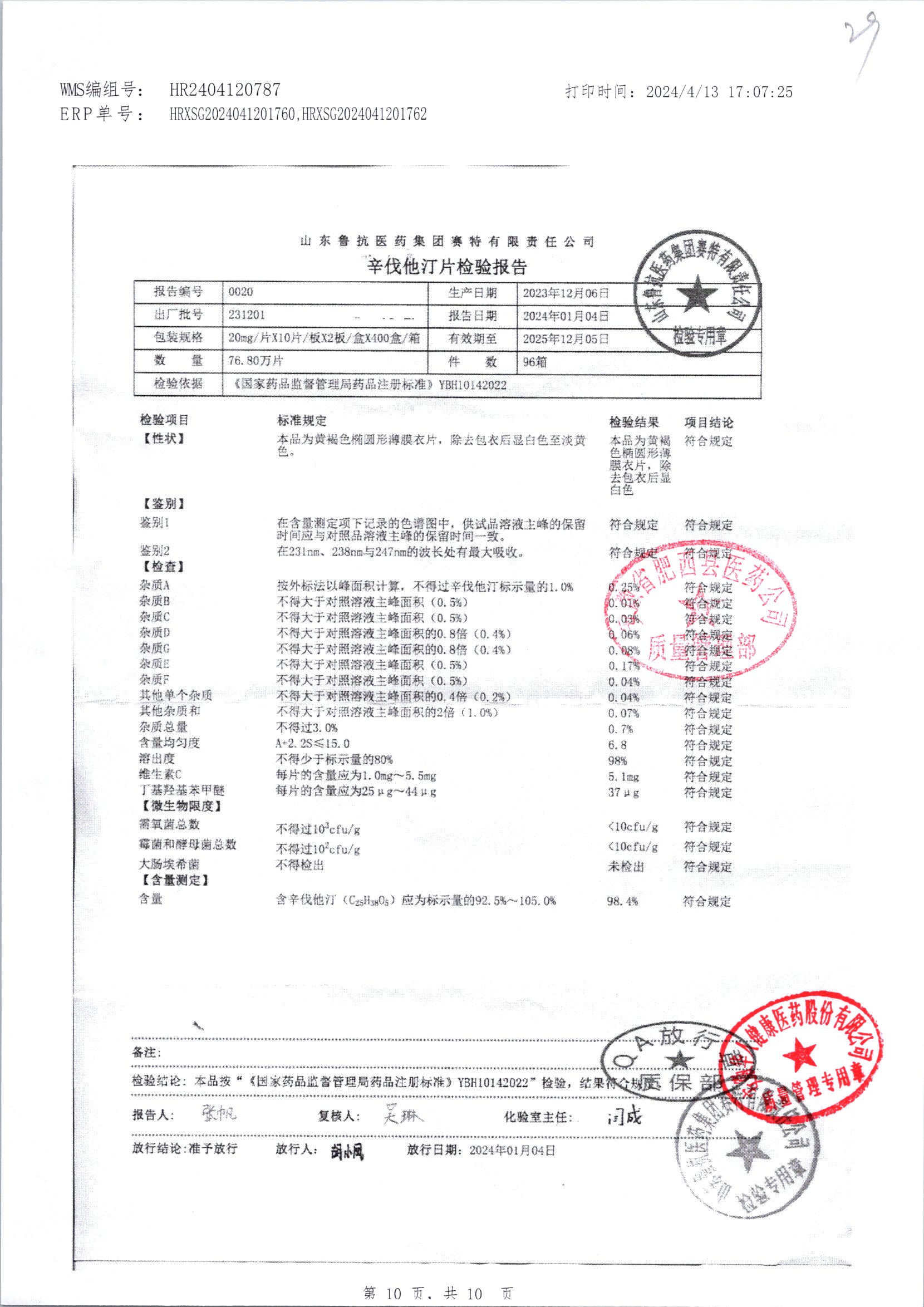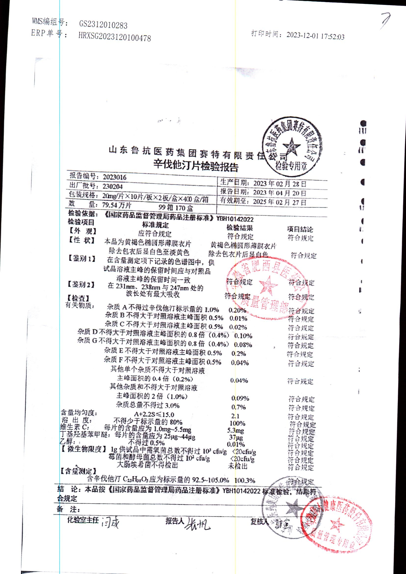 辛伐他汀片 | 20mg*20片 | 231201 | 查看详情 |