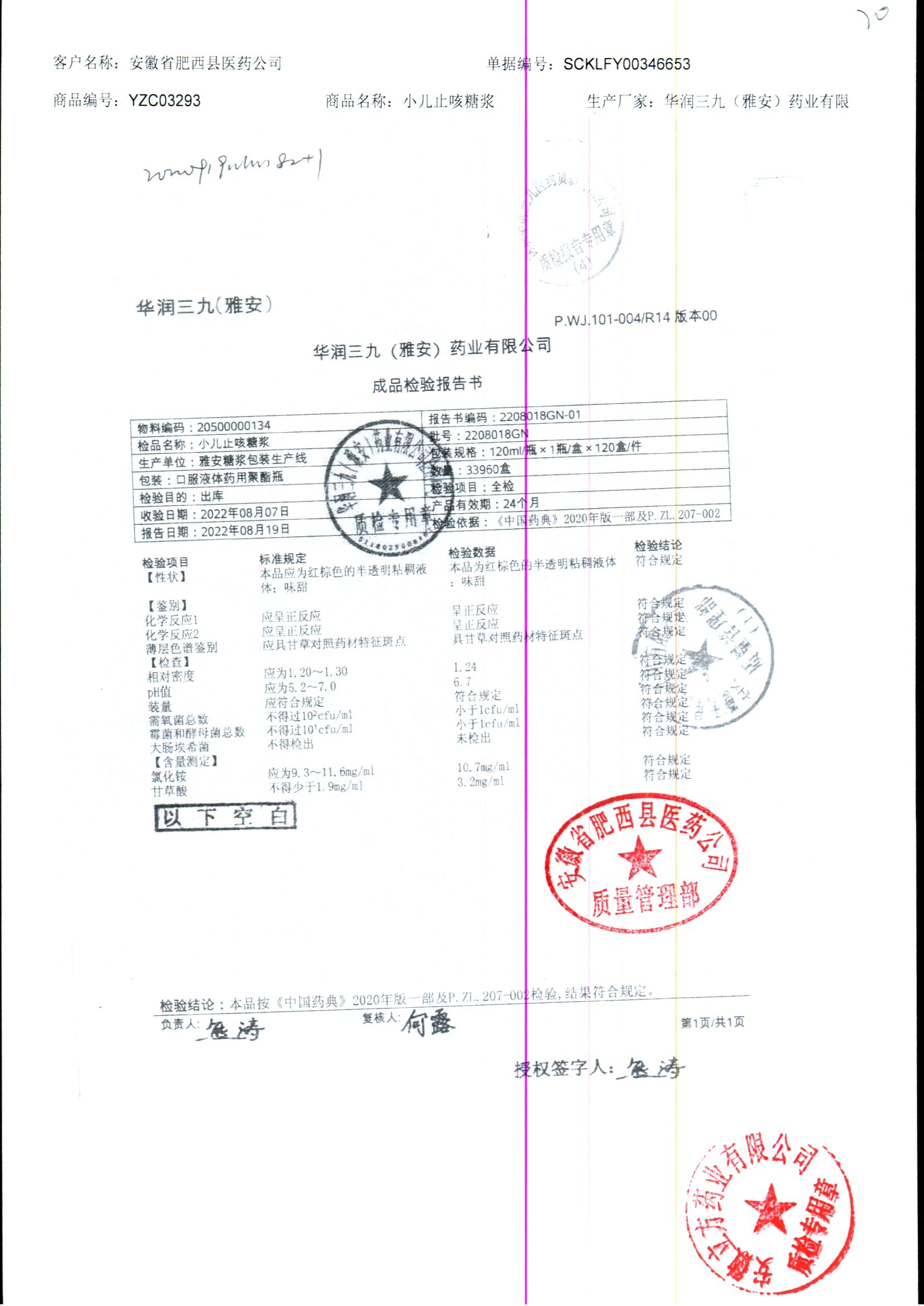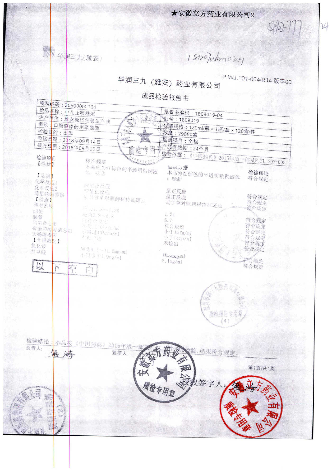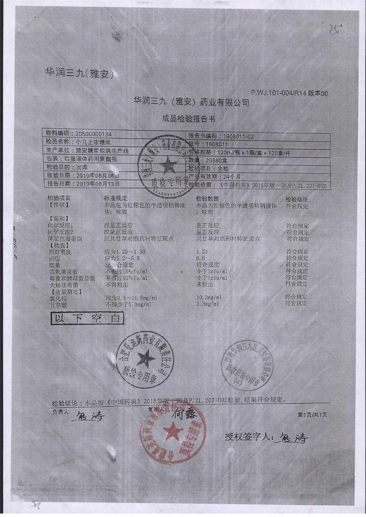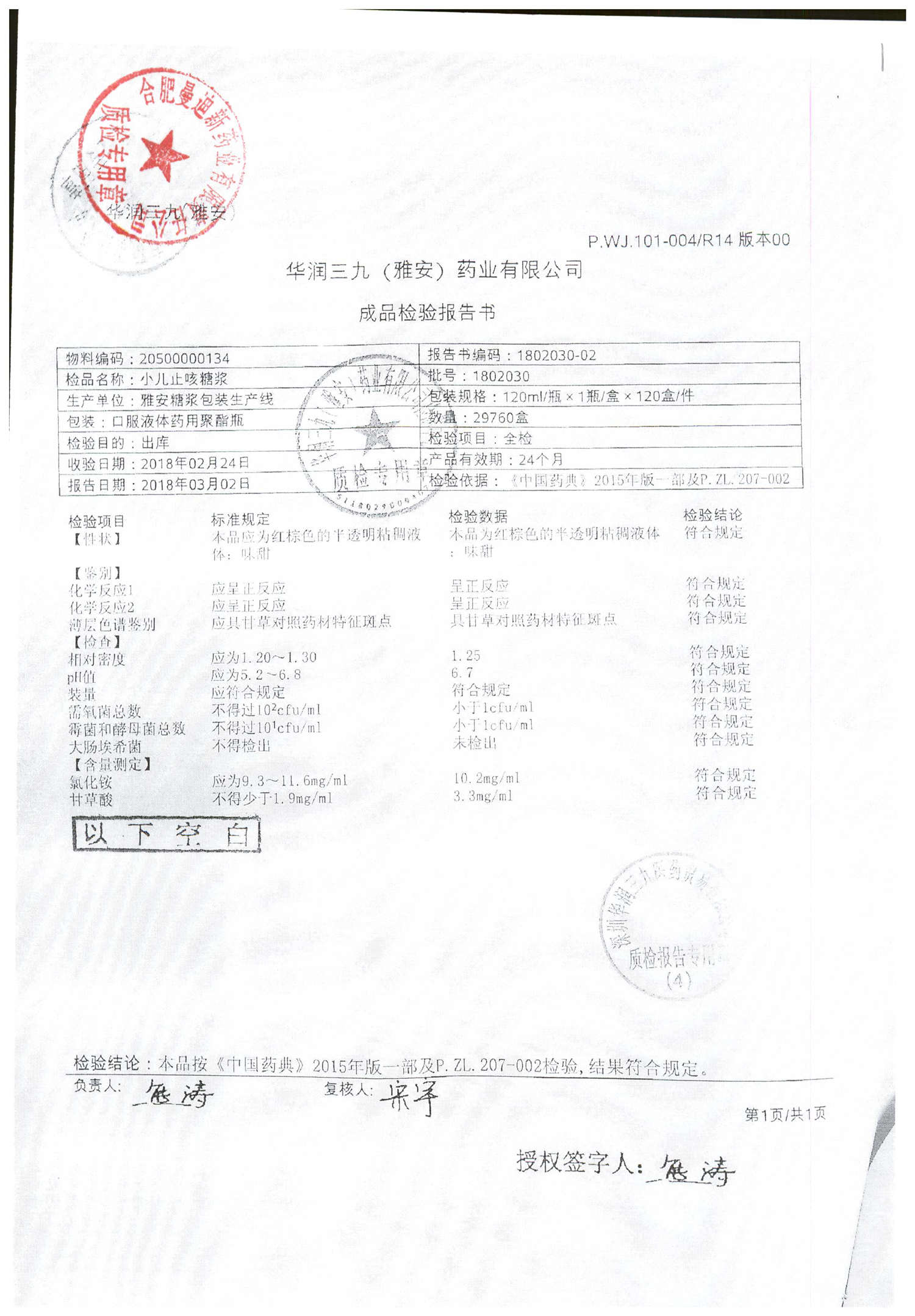 小儿止咳糖浆 | 120ml | 1911027 | 查看详情 |