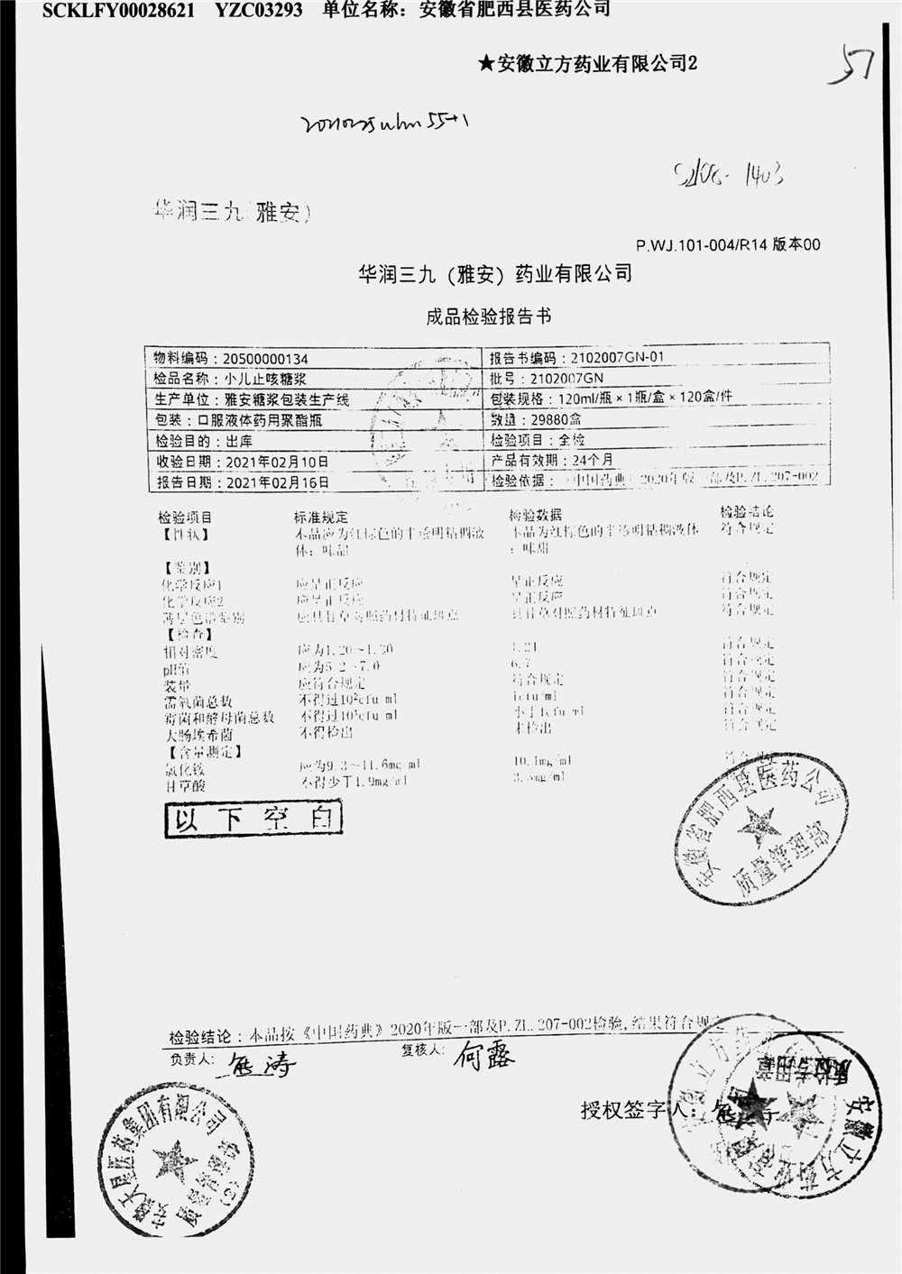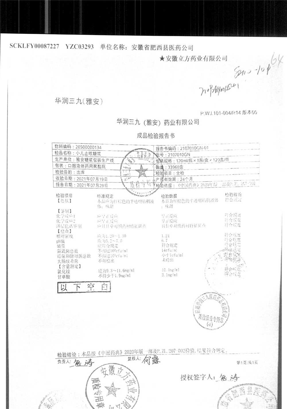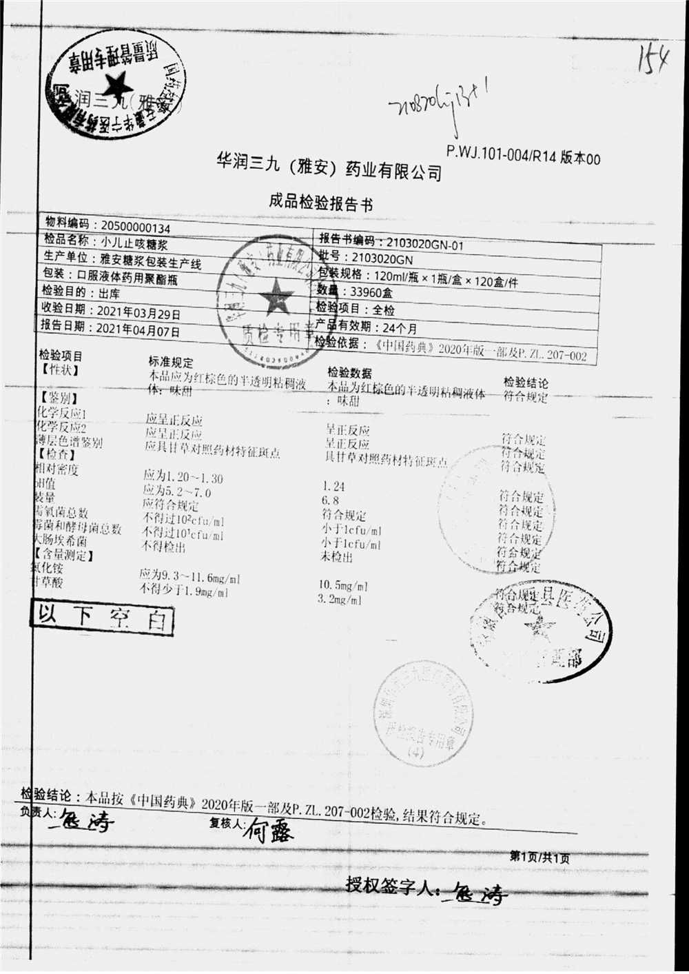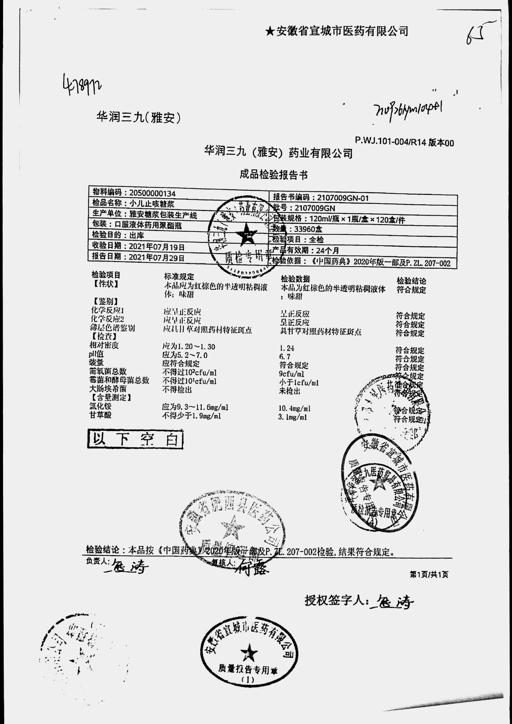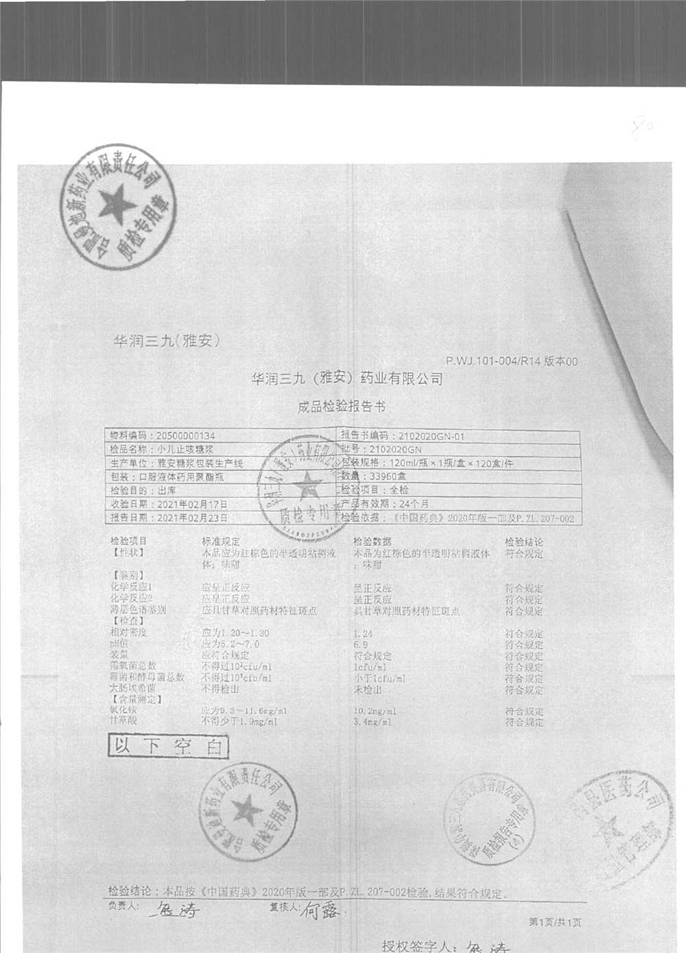 小儿止咳糖浆 | 120ml | 2102020GN | 查看详情 |