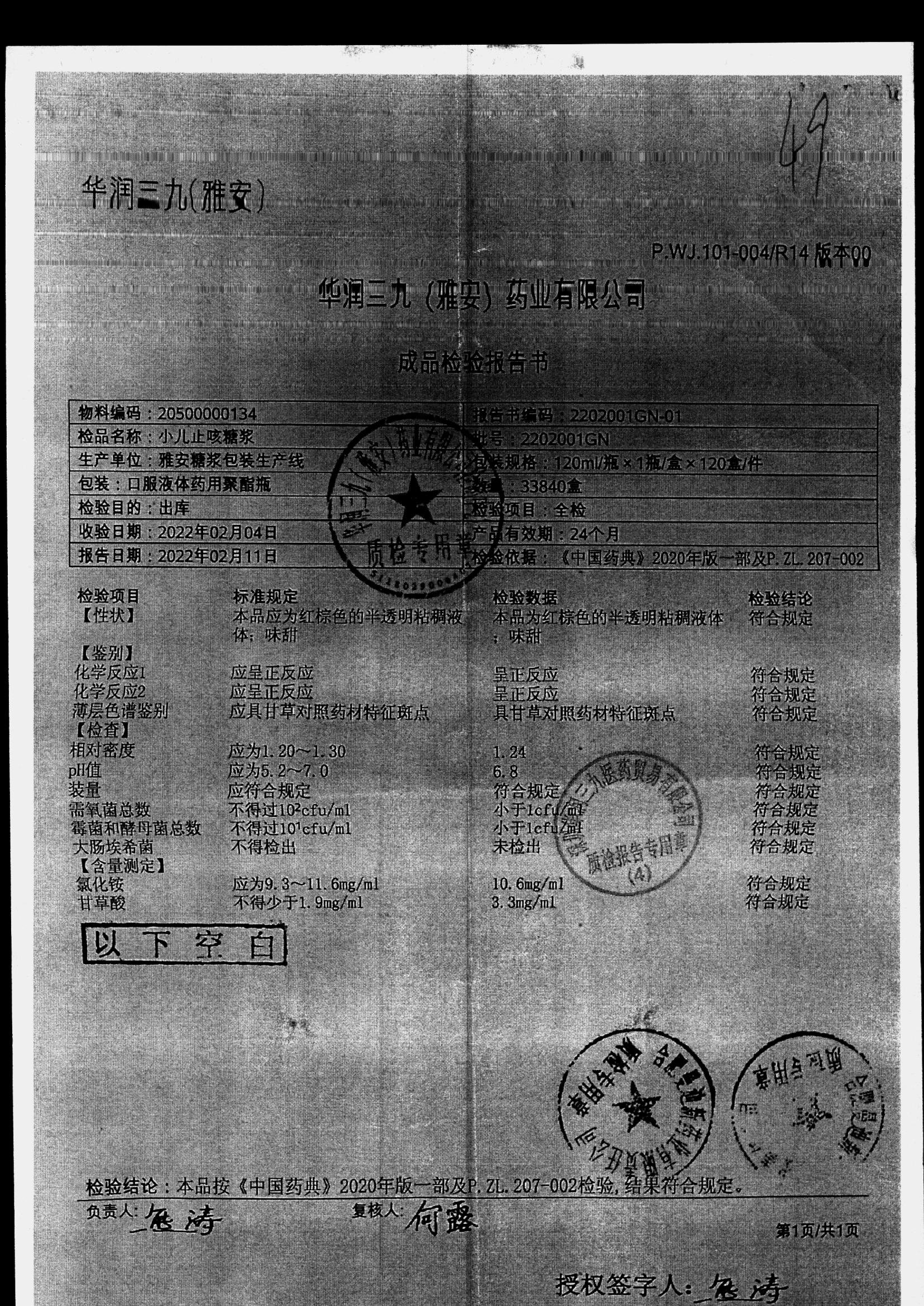 小儿止咳糖浆 | 120ml | 2202030GN | 查看详情 |