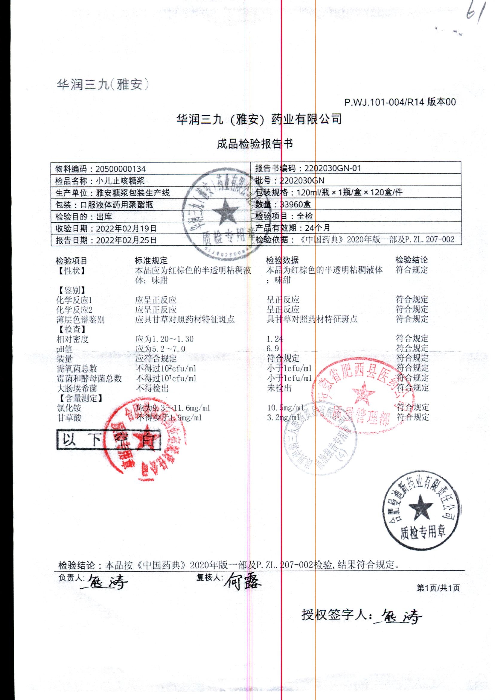 小儿止咳糖浆 | 120ml | 2202005GN | 查看详情 |