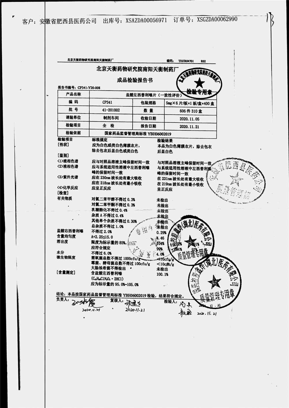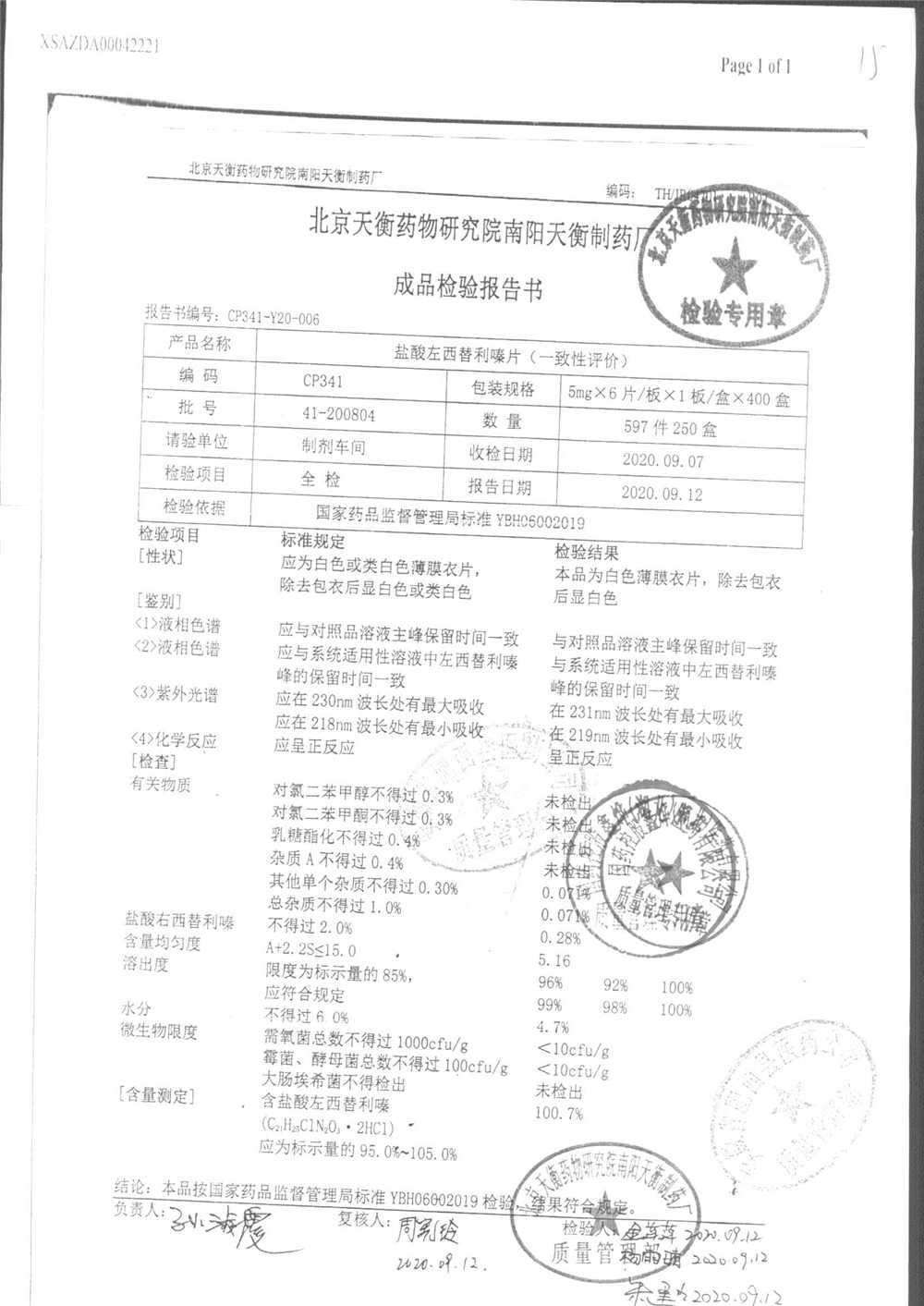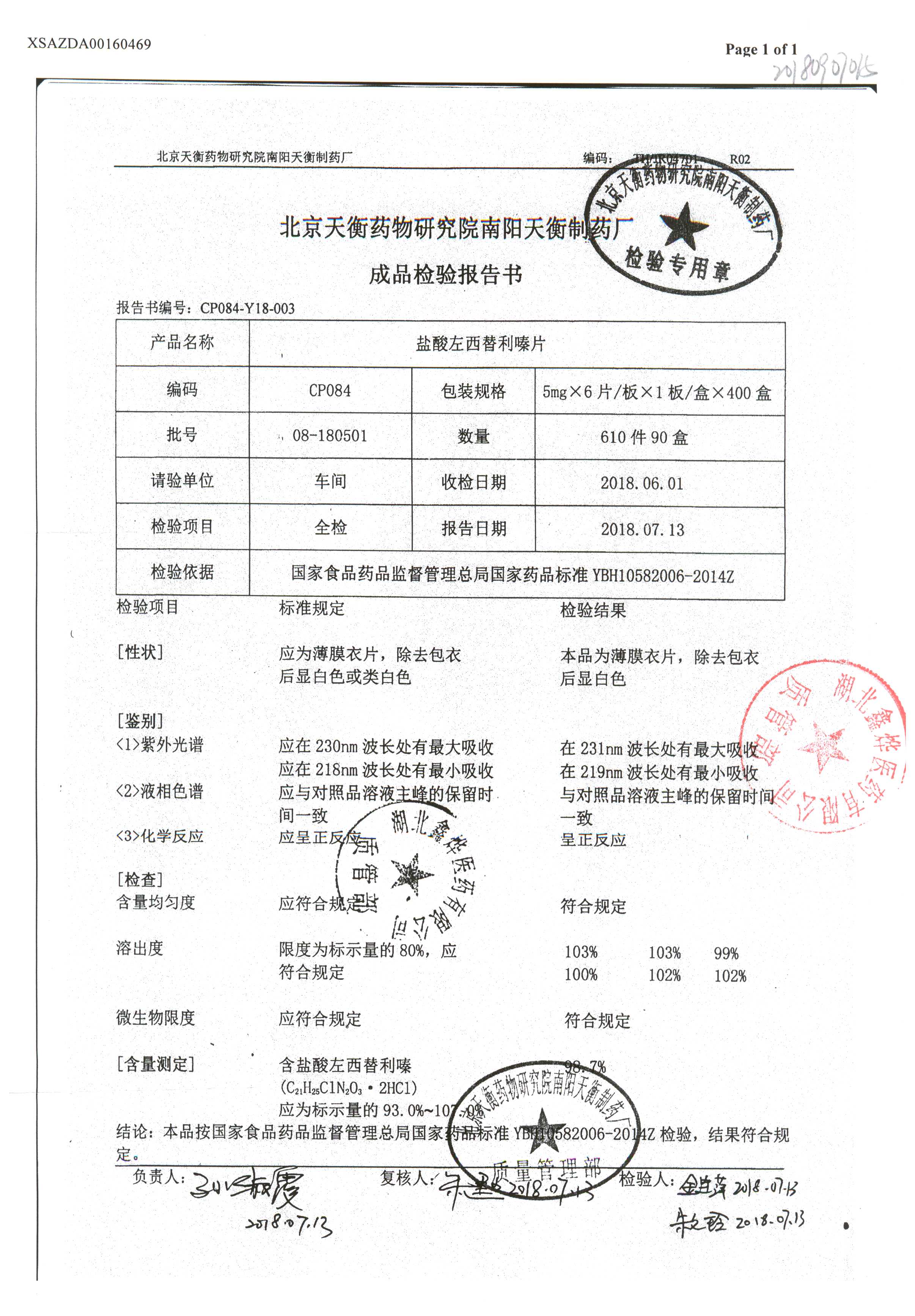 盐酸左西替利嗪片 | 5mg*6片 | 41-200804 | 查看详情 |