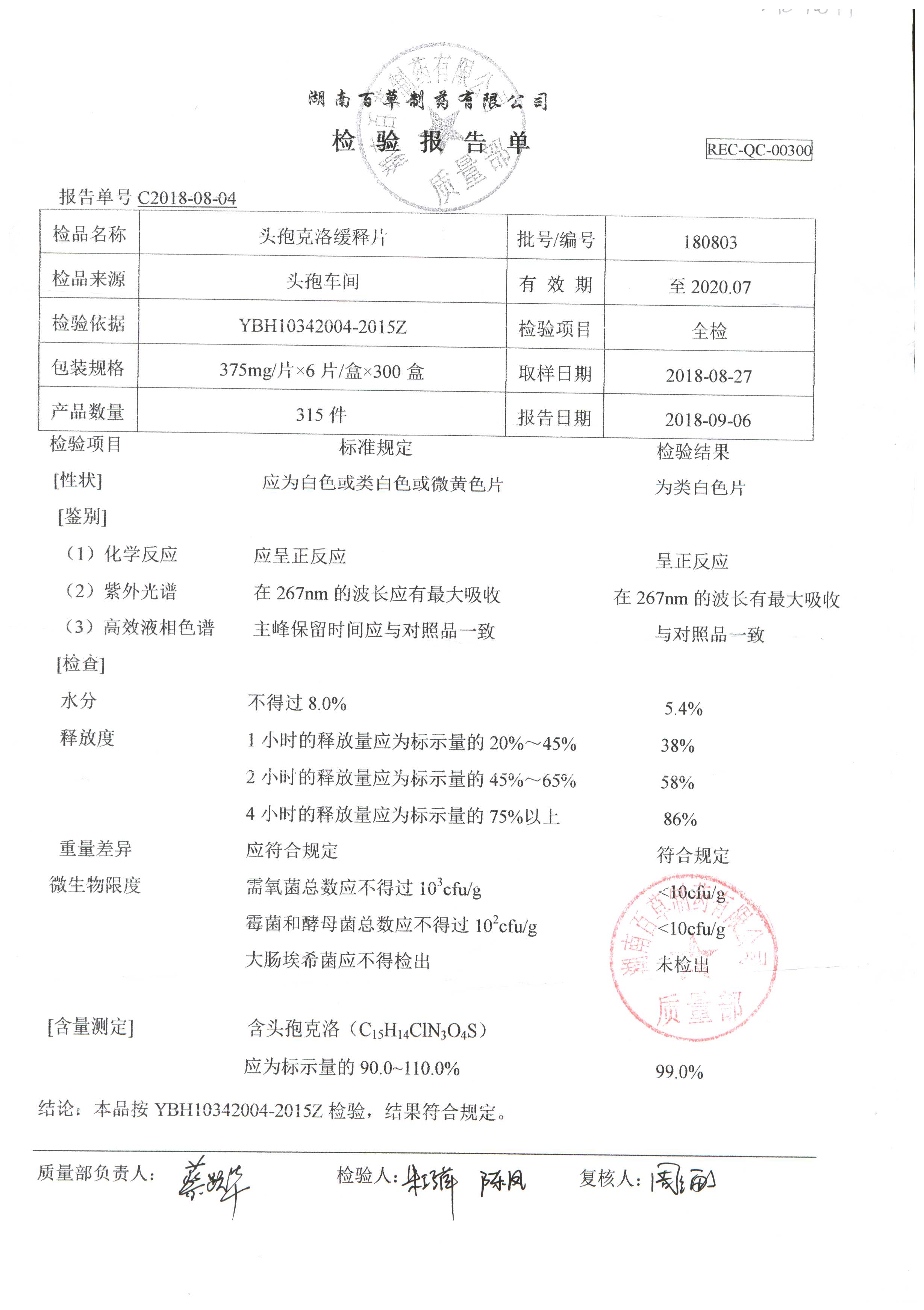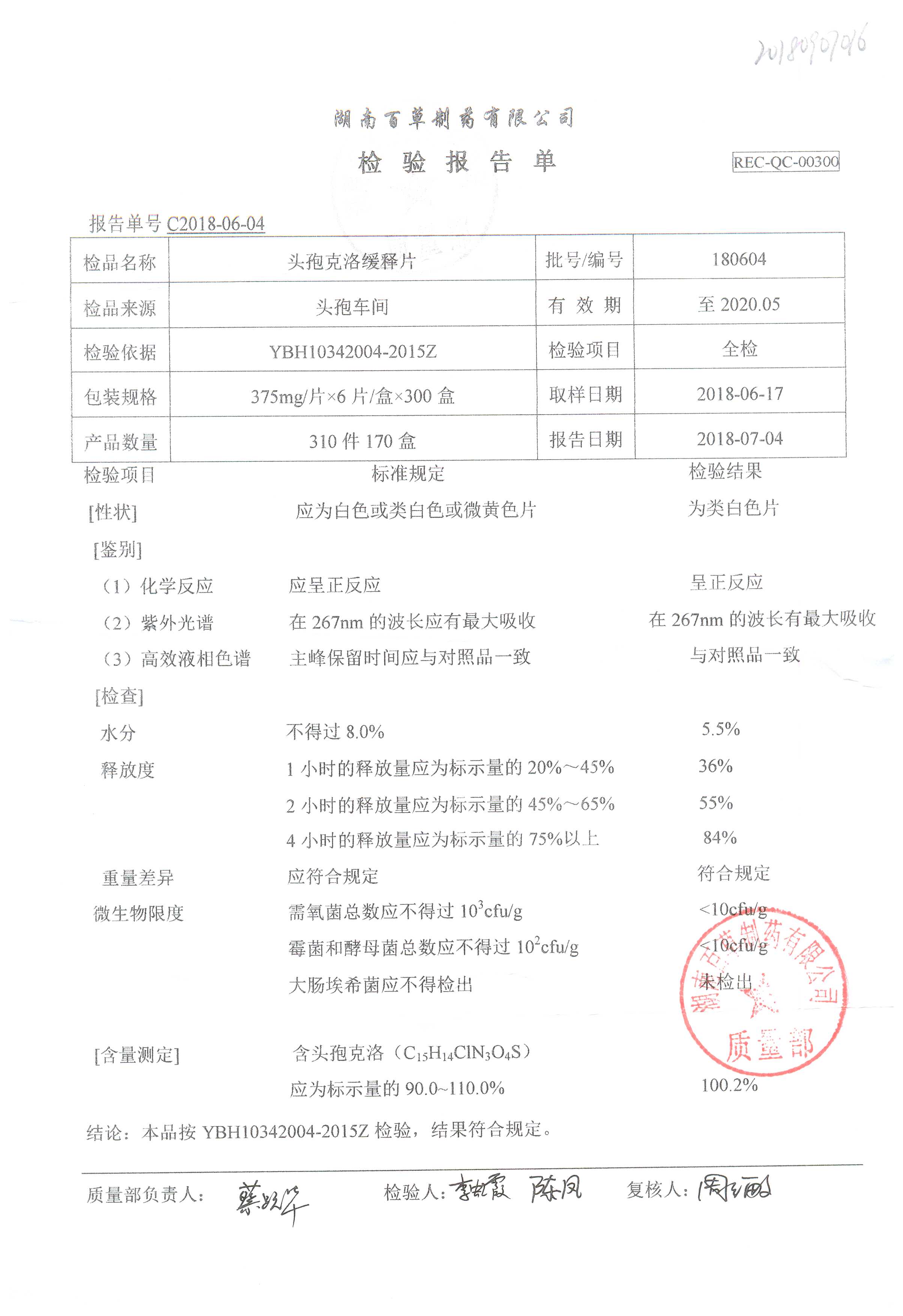 头孢克洛缓释片 | 375mg*6片 | 180604 | 查看详情 |