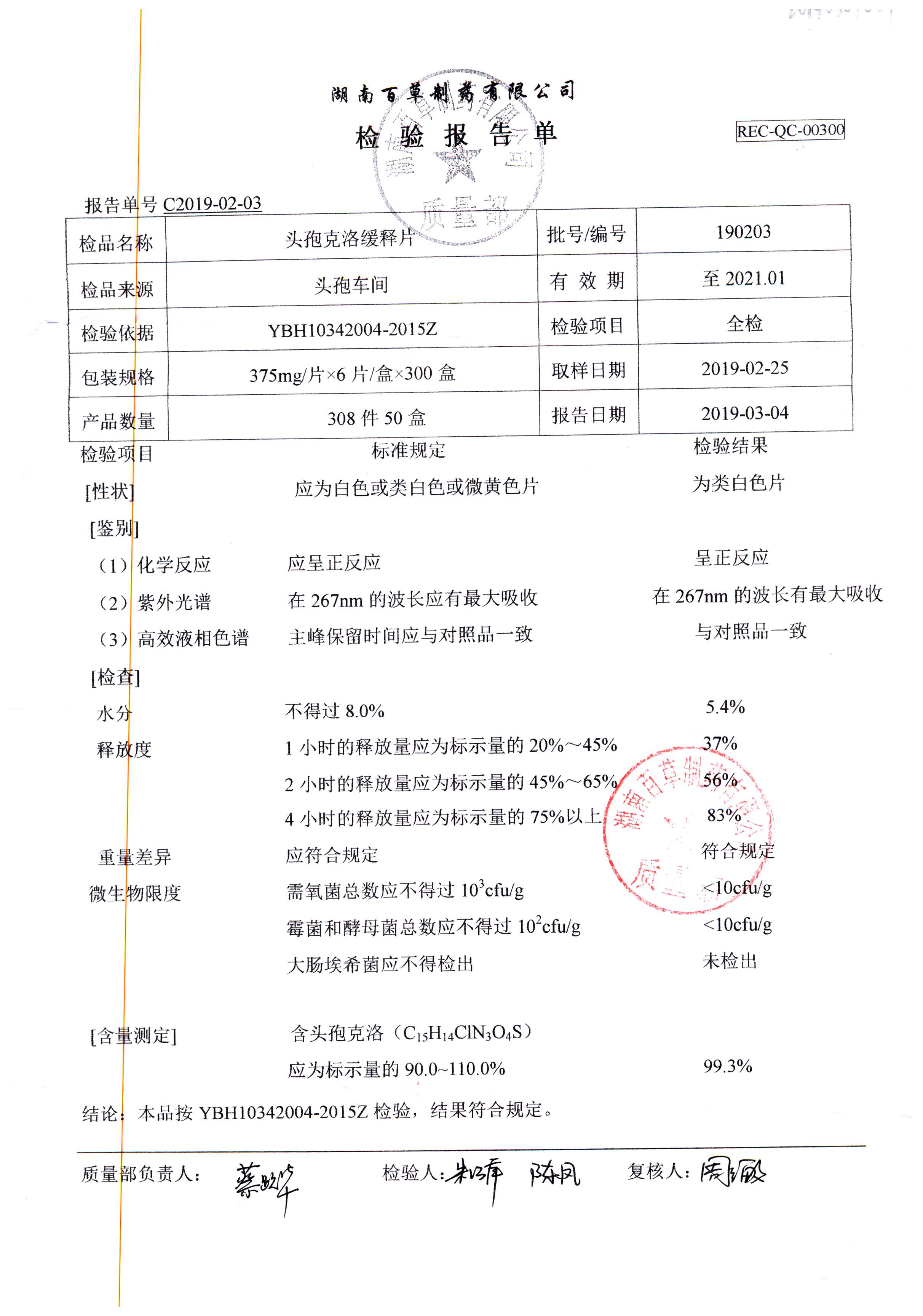 头孢克洛缓释片 | 375mg*6片 | 190203 | 查看详情 |